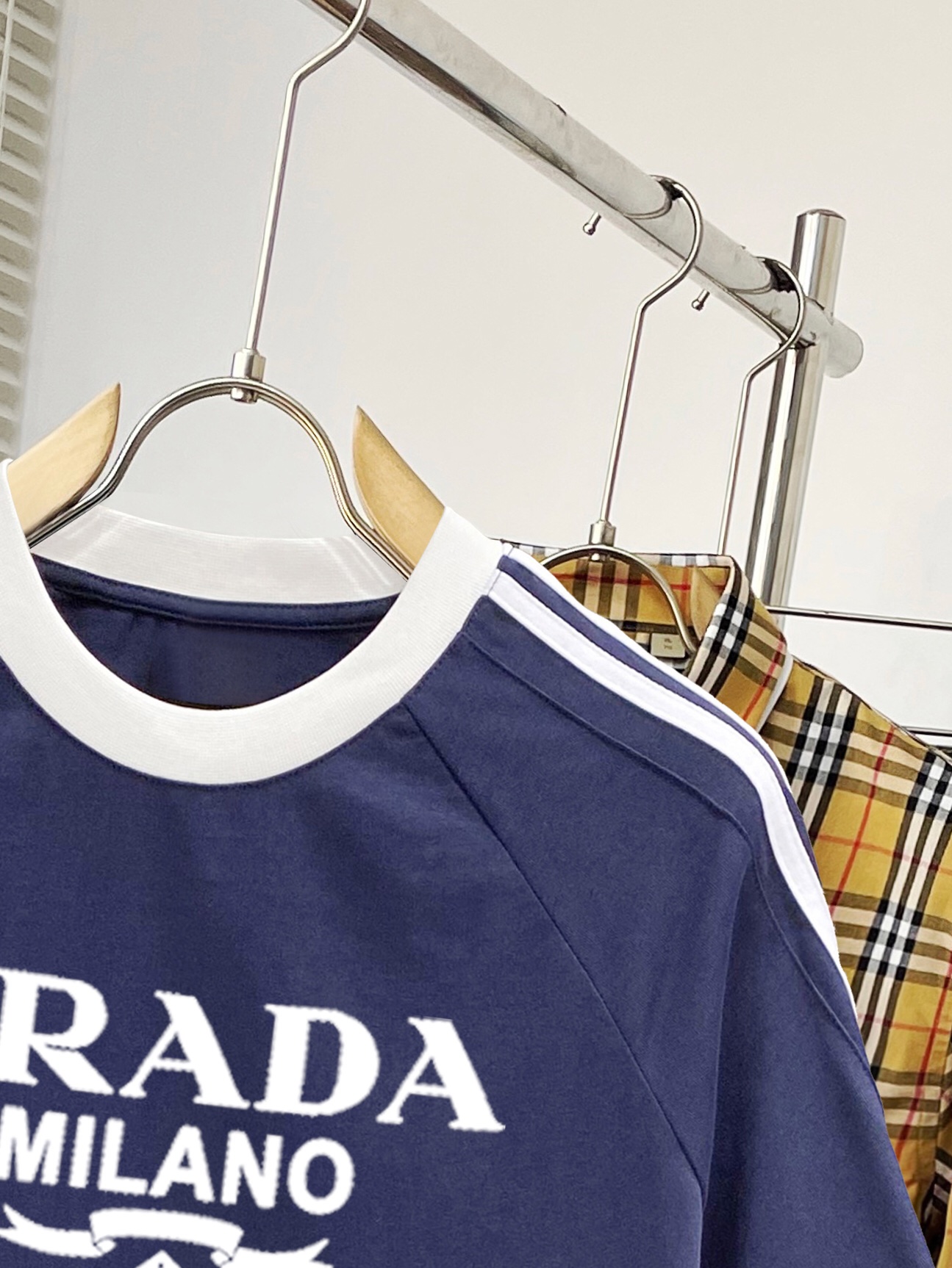 这款衣服是AAAAA 1:1 质量 (非常棒). 使用了和原版一模一样的材料. 商标部分也保持了和普拉达/Prada一样. 图片拍摄是实物衣服拍摄, 您所收到的实物保证和我们图片一模一样.
