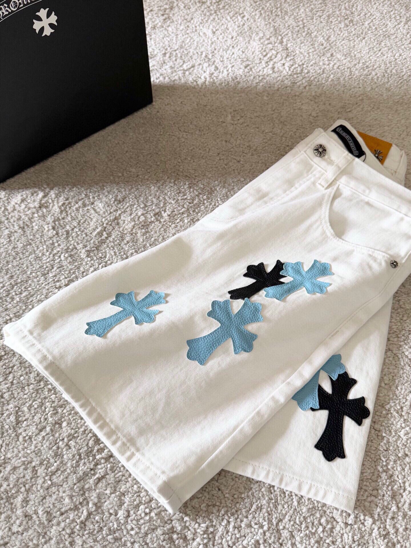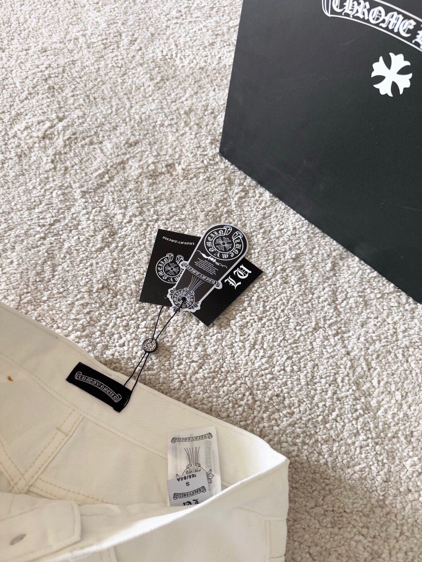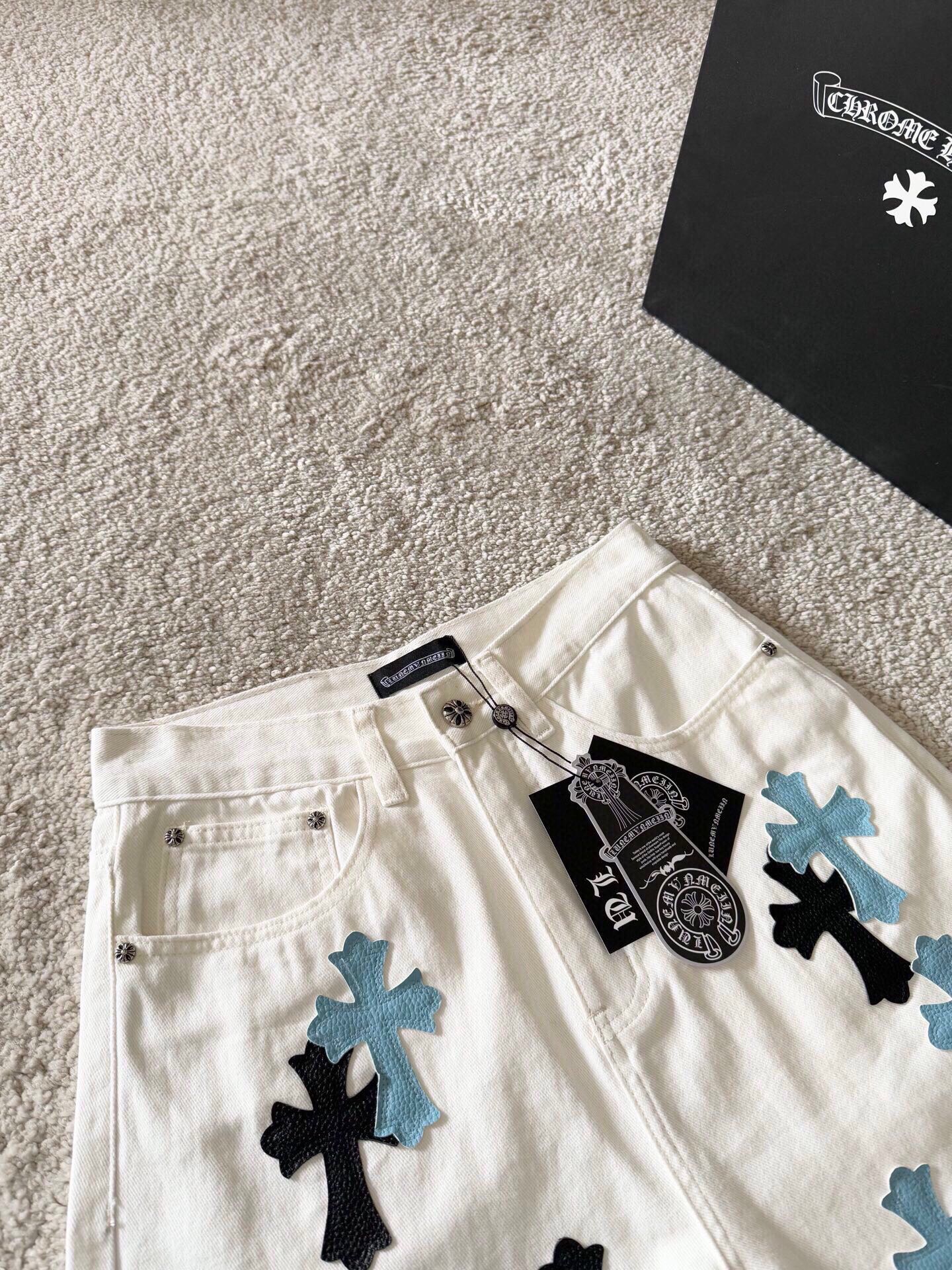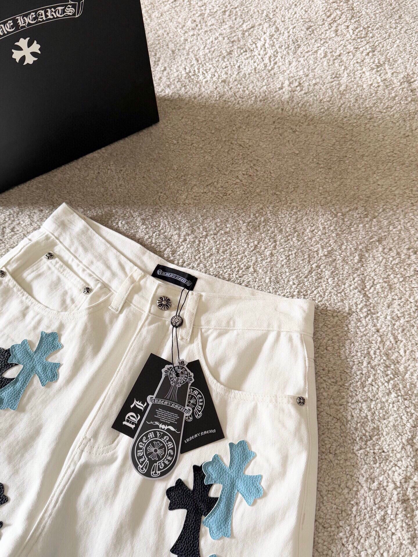 这款衣服是AAAAA 1:1 质量 (非常棒). 使用了和原版一模一样的材料. 商标部分也保持了和克罗心/Chrome Hearts一样. 图片拍摄是实物衣服拍摄, 您所收到的实物保证和我们图片一模一样.