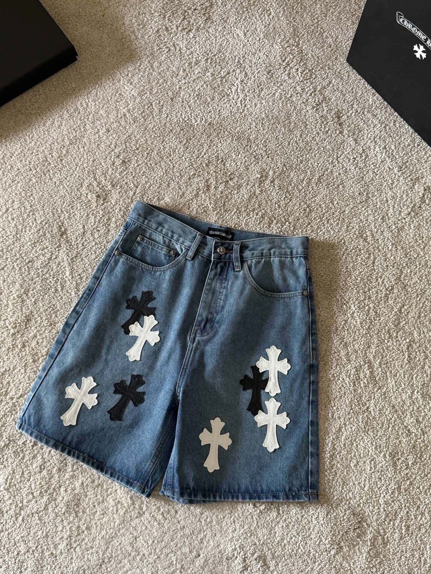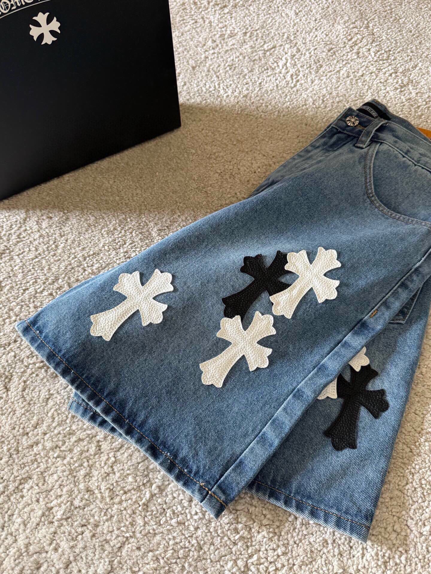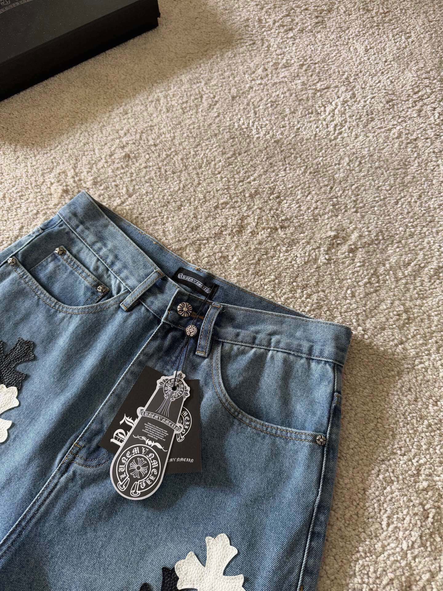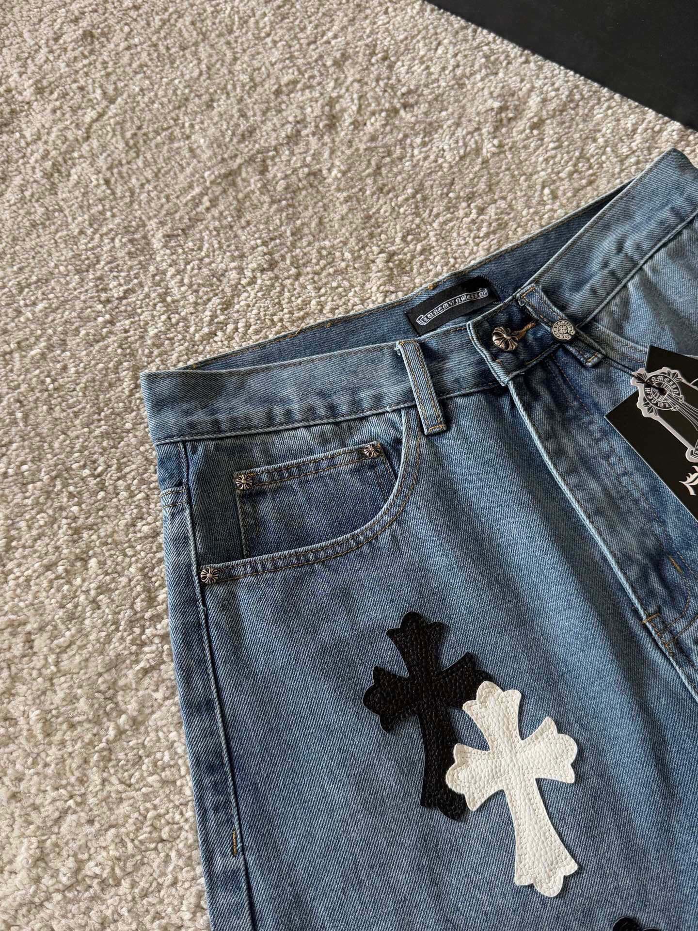 这款衣服是AAAAA 1:1 质量 (非常棒). 使用了和原版一模一样的材料. 商标部分也保持了和克罗心/Chrome Hearts一样. 图片拍摄是实物衣服拍摄, 您所收到的实物保证和我们图片一模一样.
