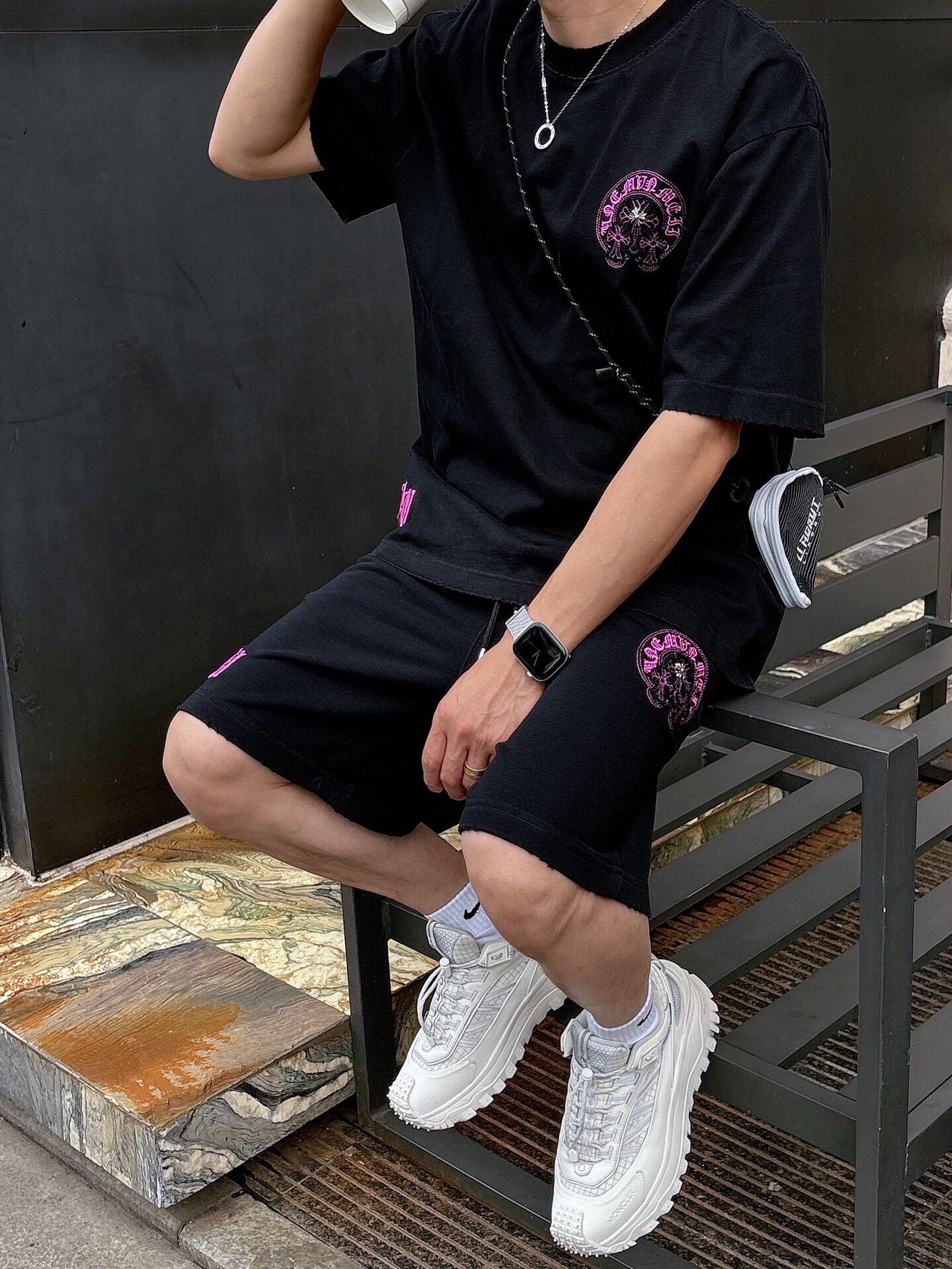 这款衣服是AAAAA 1:1 质量 (非常棒). 使用了和原版一模一样的材料. 商标部分也保持了和克罗心/Chrome Hearts一样. 图片拍摄是实物衣服拍摄, 您所收到的实物保证和我们图片一模一样.