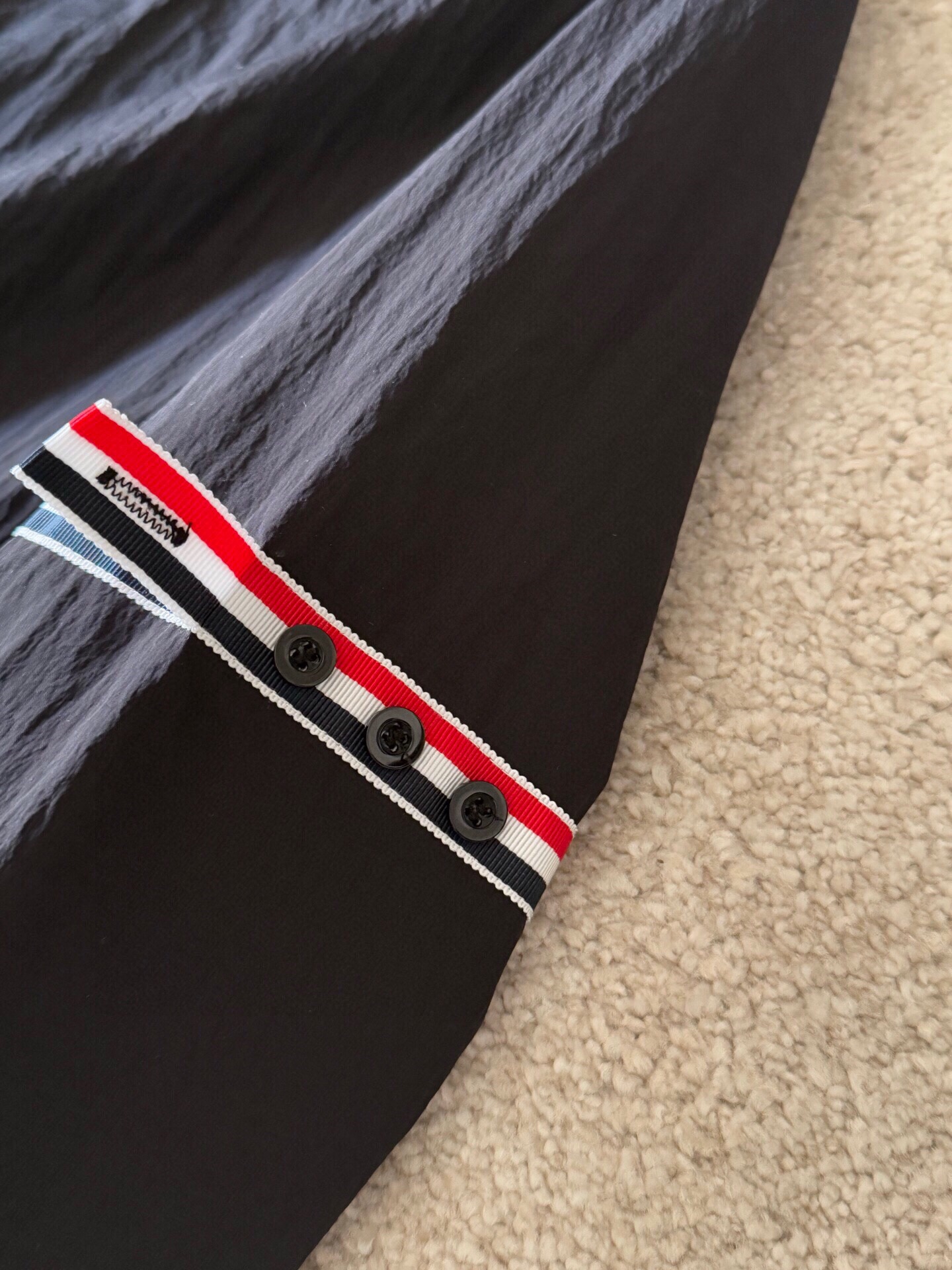 这款衣服是AAAAA 1:1 质量 (非常棒). 使用了和原版一模一样的材料. 商标部分也保持了和汤姆布朗/Thom Browne一样. 图片拍摄是实物衣服拍摄, 您所收到的实物保证和我们图片一模一样.
