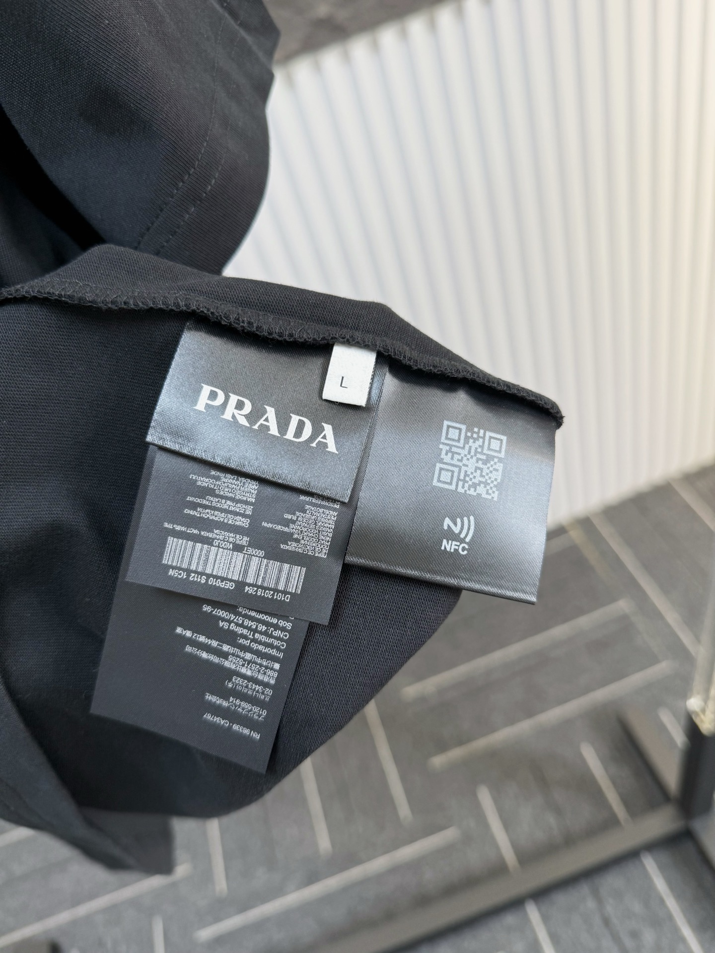 这款衣服是AAAAA 1:1 质量 (非常棒). 使用了和原版一模一样的材料. 商标部分也保持了和普拉达/Prada一样. 图片拍摄是实物衣服拍摄, 您所收到的实物保证和我们图片一模一样.