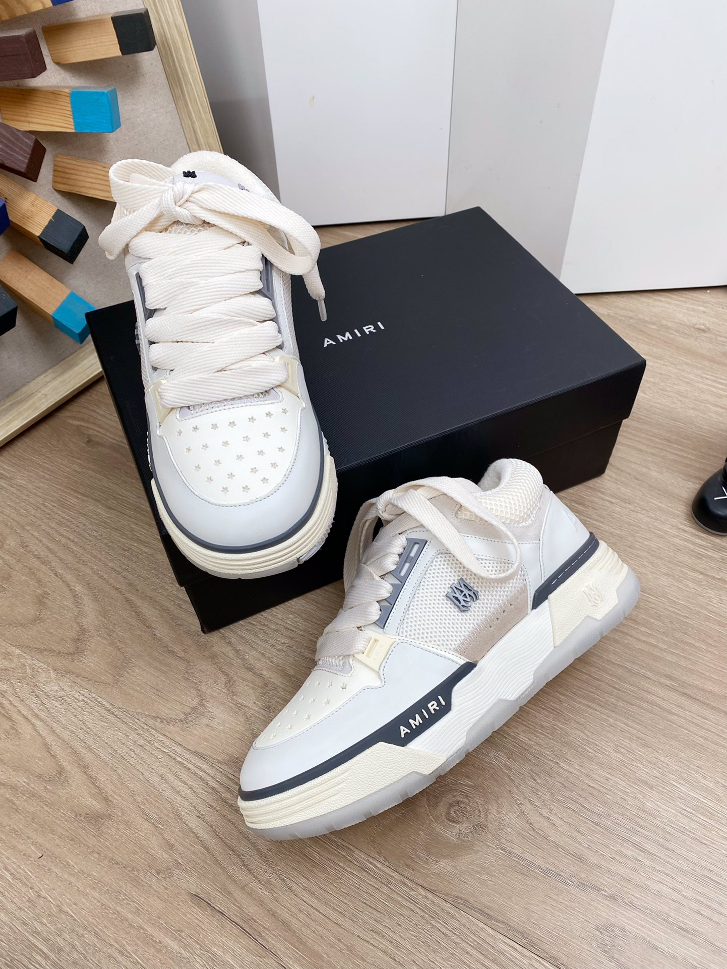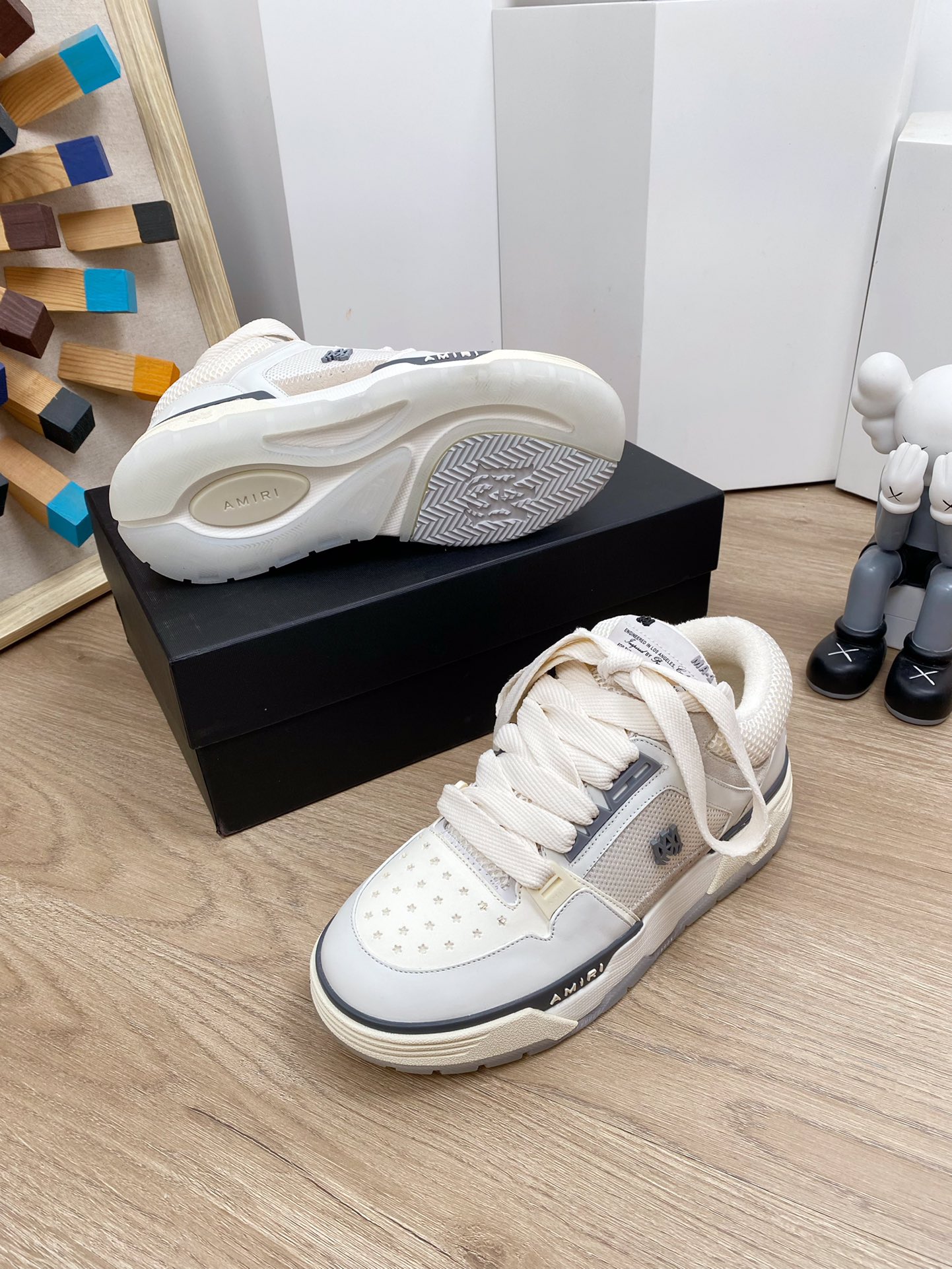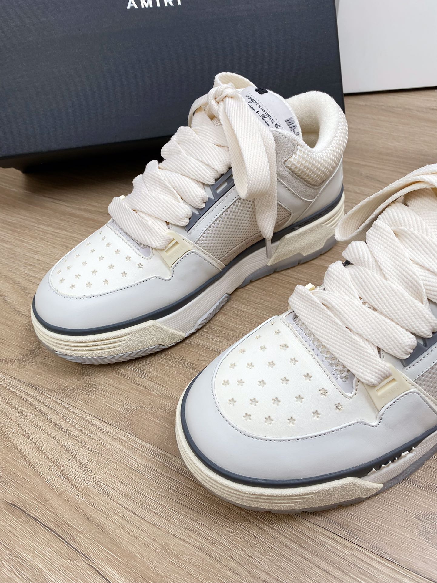 这款鞋子是AAAAA 1:1 质量 (非常棒). 使用了和原版一模一样的材料. 商标部分也保持了和AMIRI一样. 图片拍摄是实物鞋子拍摄, 您所收到的实物保证和我们图片一模一样.