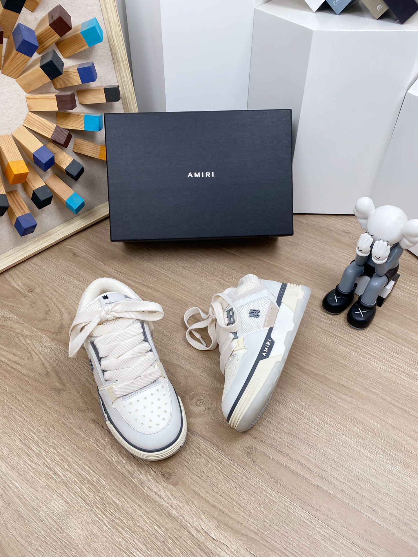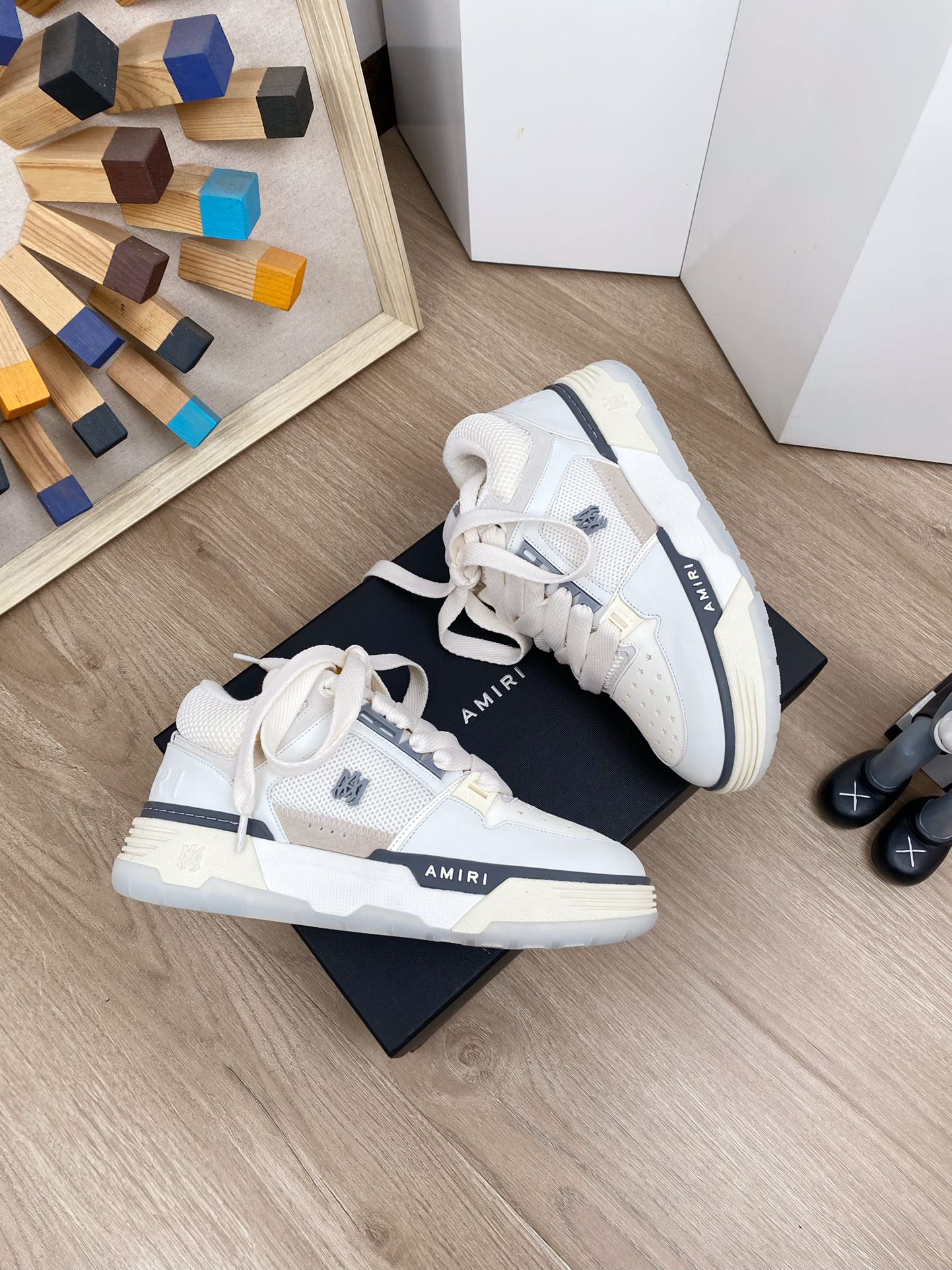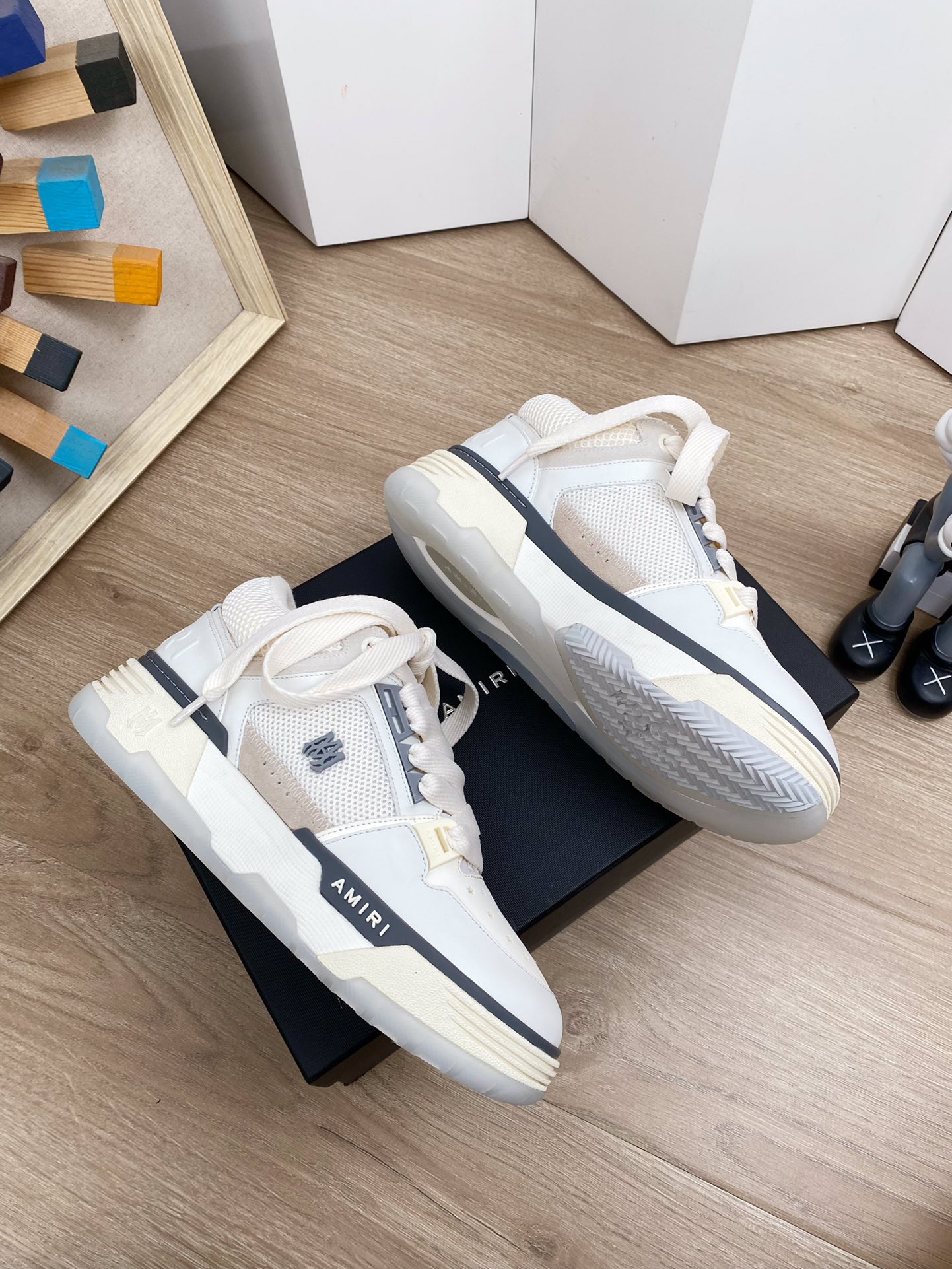 这款鞋子是AAAAA 1:1 质量 (非常棒). 使用了和原版一模一样的材料. 商标部分也保持了和AMIRI一样. 图片拍摄是实物鞋子拍摄, 您所收到的实物保证和我们图片一模一样.
