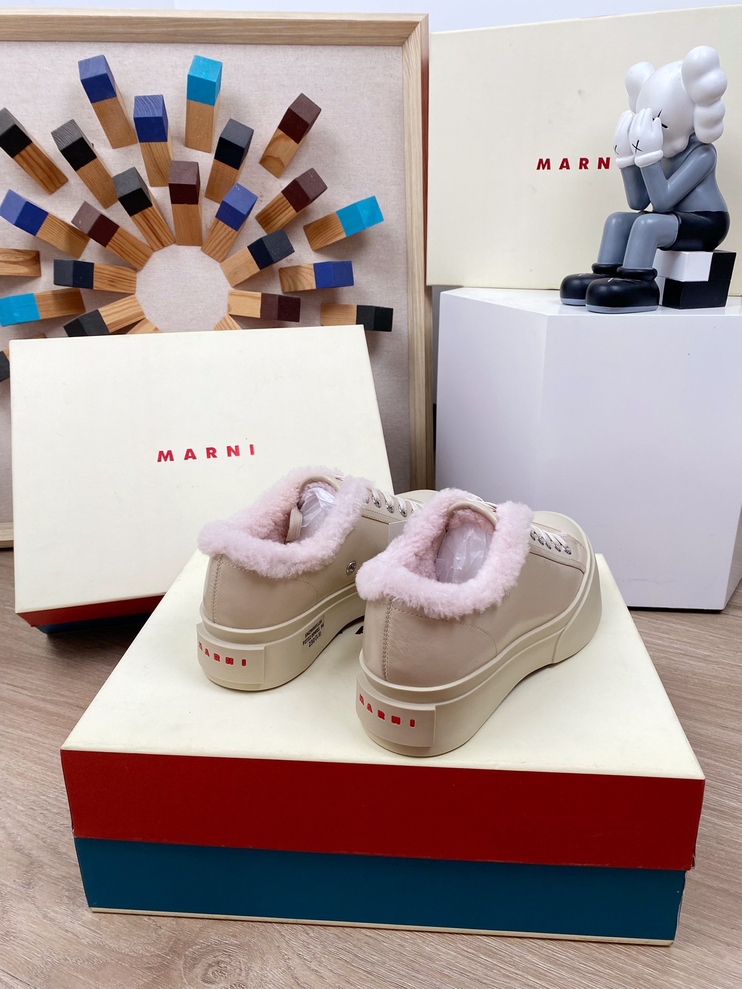 这款鞋子是AAAAA 1:1 质量 (非常棒). 使用了和原版一模一样的材料. 商标部分也保持了和马尔尼/Marni一样. 图片拍摄是实物鞋子拍摄, 您所收到的实物保证和我们图片一模一样.