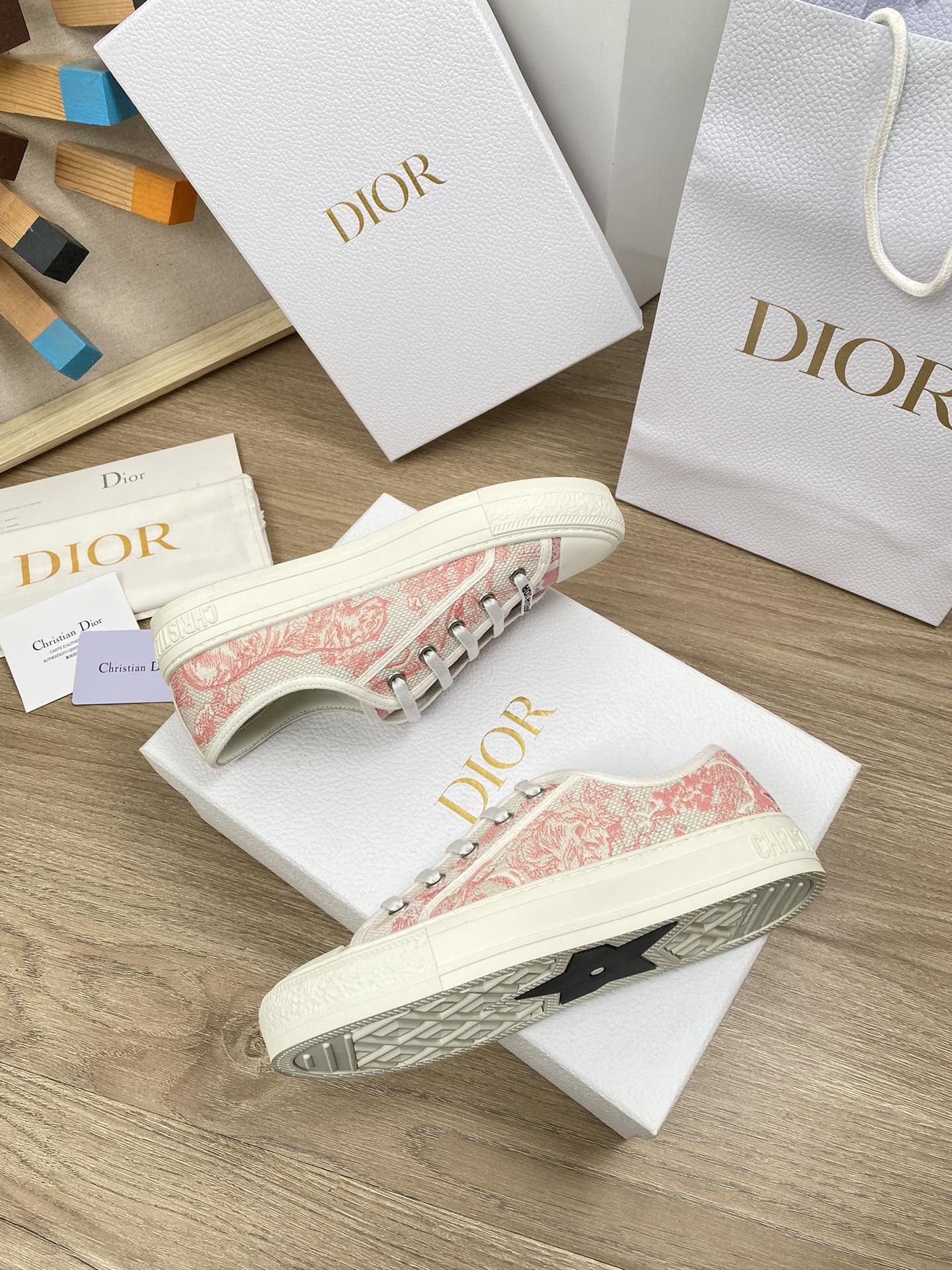 这款鞋子是AAAAA 1:1 质量 (非常棒). 使用了和原版一模一样的材料. 商标部分也保持了和迪奥/Dior一样. 图片拍摄是实物鞋子拍摄, 您所收到的实物保证和我们图片一模一样.
