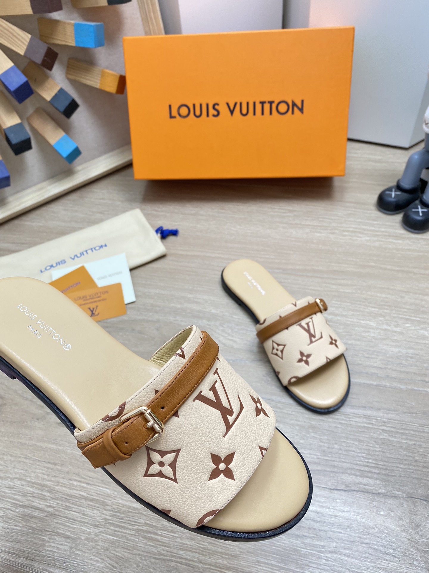 这款鞋子是AAAAA 1:1 质量 (非常棒). 使用了和原版一模一样的材料. 商标部分也保持了和路易威登/Louis Vuitton一样. 图片拍摄是实物鞋子拍摄, 您所收到的实物保证和我们图片一模一样.