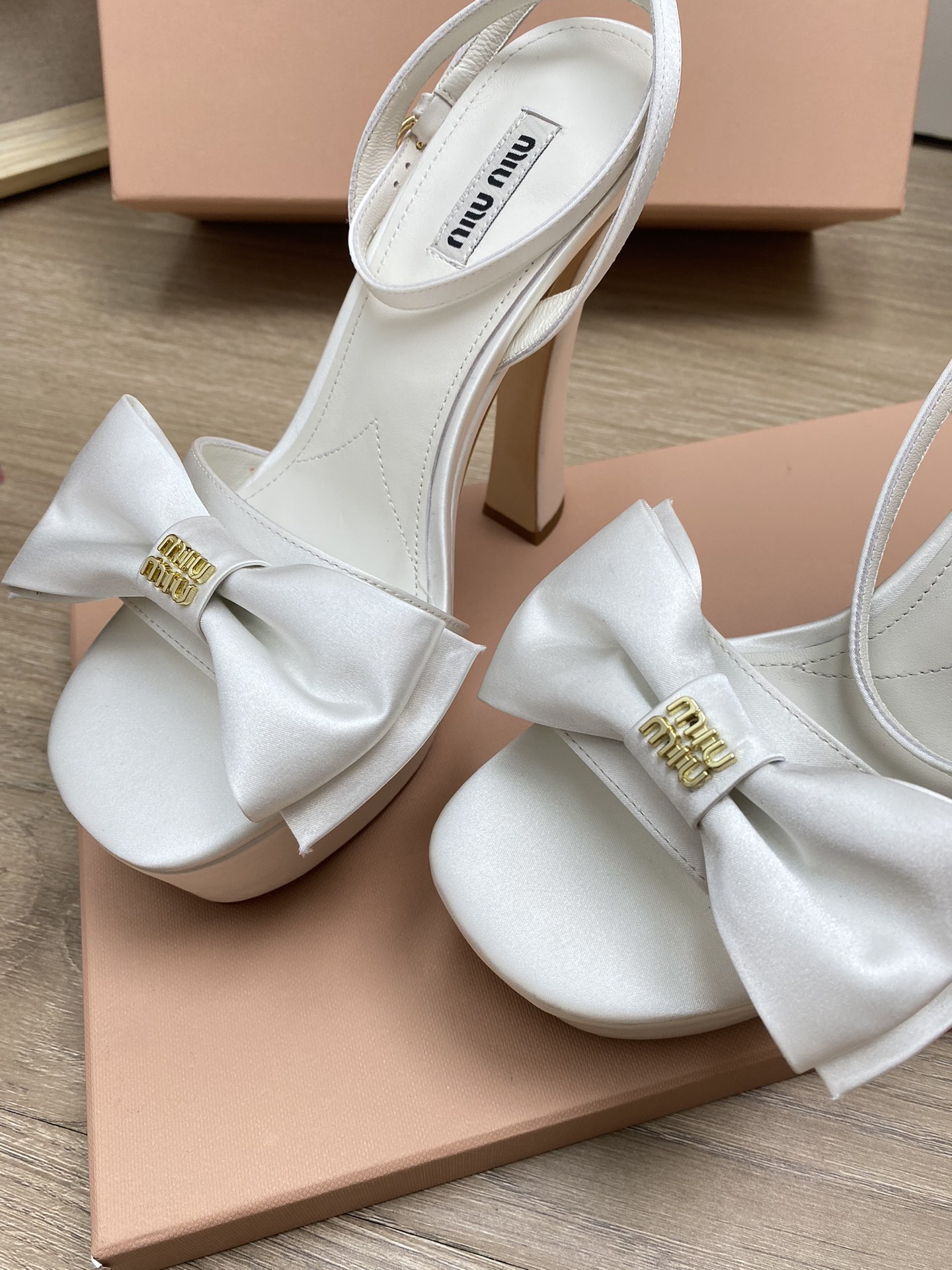 这款鞋子是AAAAA 1:1 质量 (非常棒). 使用了和原版一模一样的材料. 商标部分也保持了和缪缪/Miu Miu一样. 图片拍摄是实物鞋子拍摄, 您所收到的实物保证和我们图片一模一样.