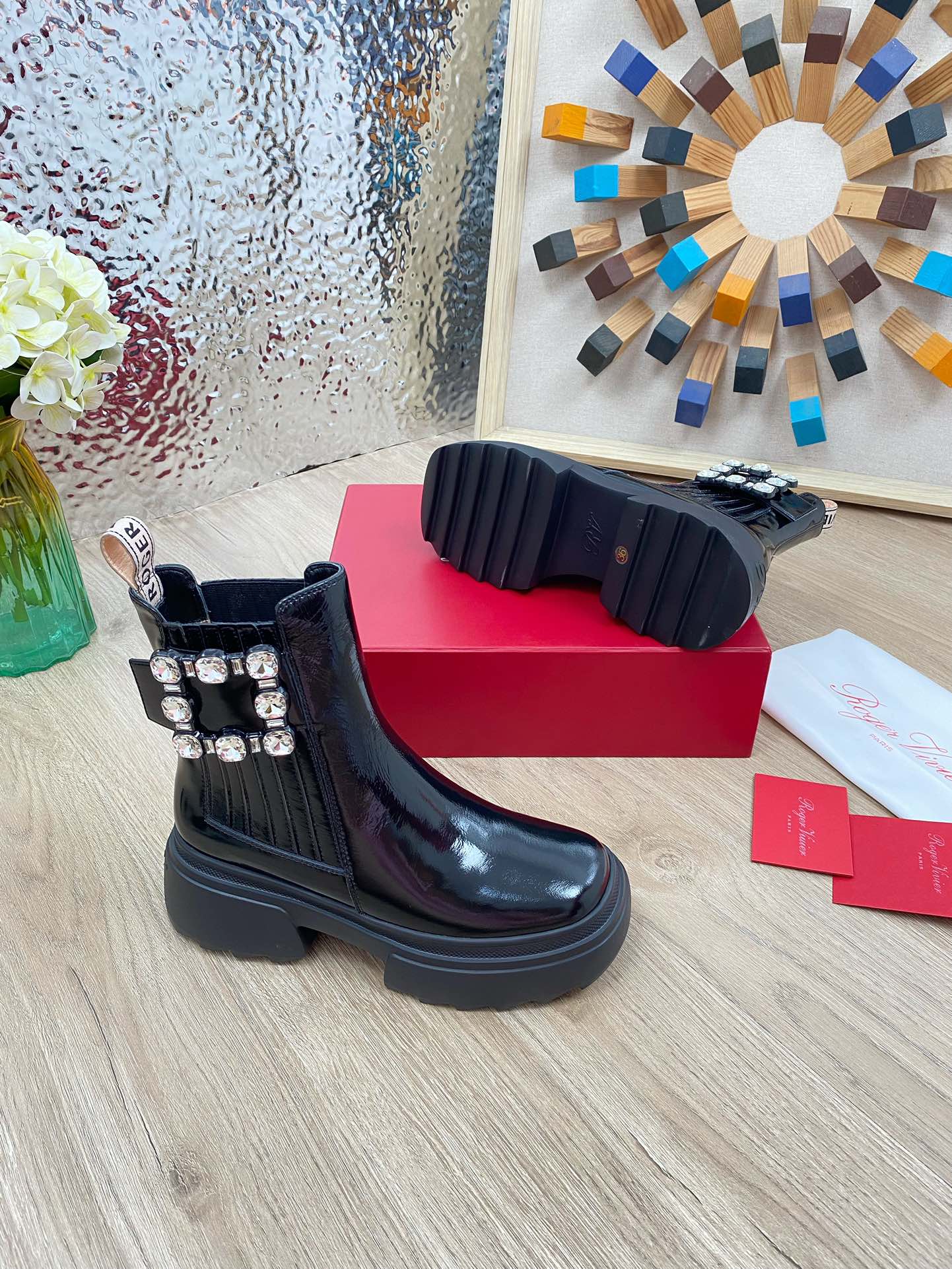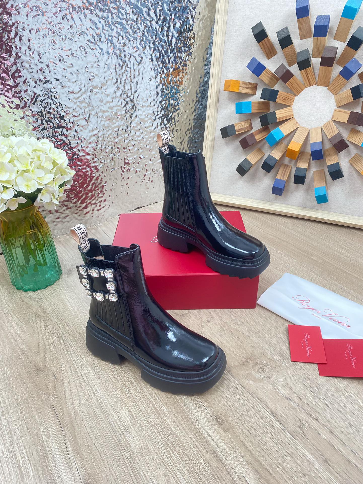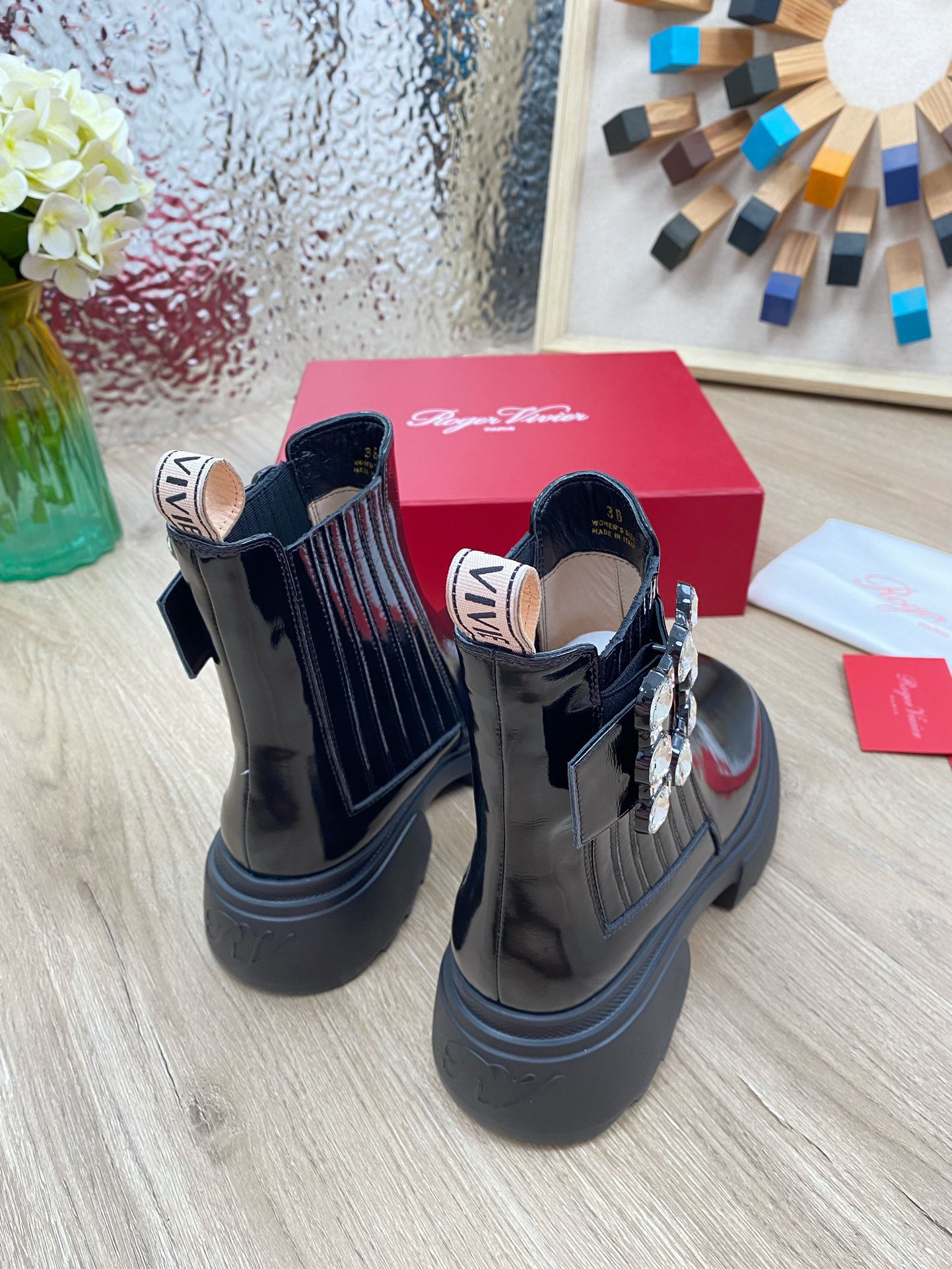 这款鞋子是AAAAA 1:1 质量 (非常棒). 使用了和原版一模一样的材料. 商标部分也保持了和罗杰维维耶/Roger Vivier一样. 图片拍摄是实物鞋子拍摄, 您所收到的实物保证和我们图片一模一样.