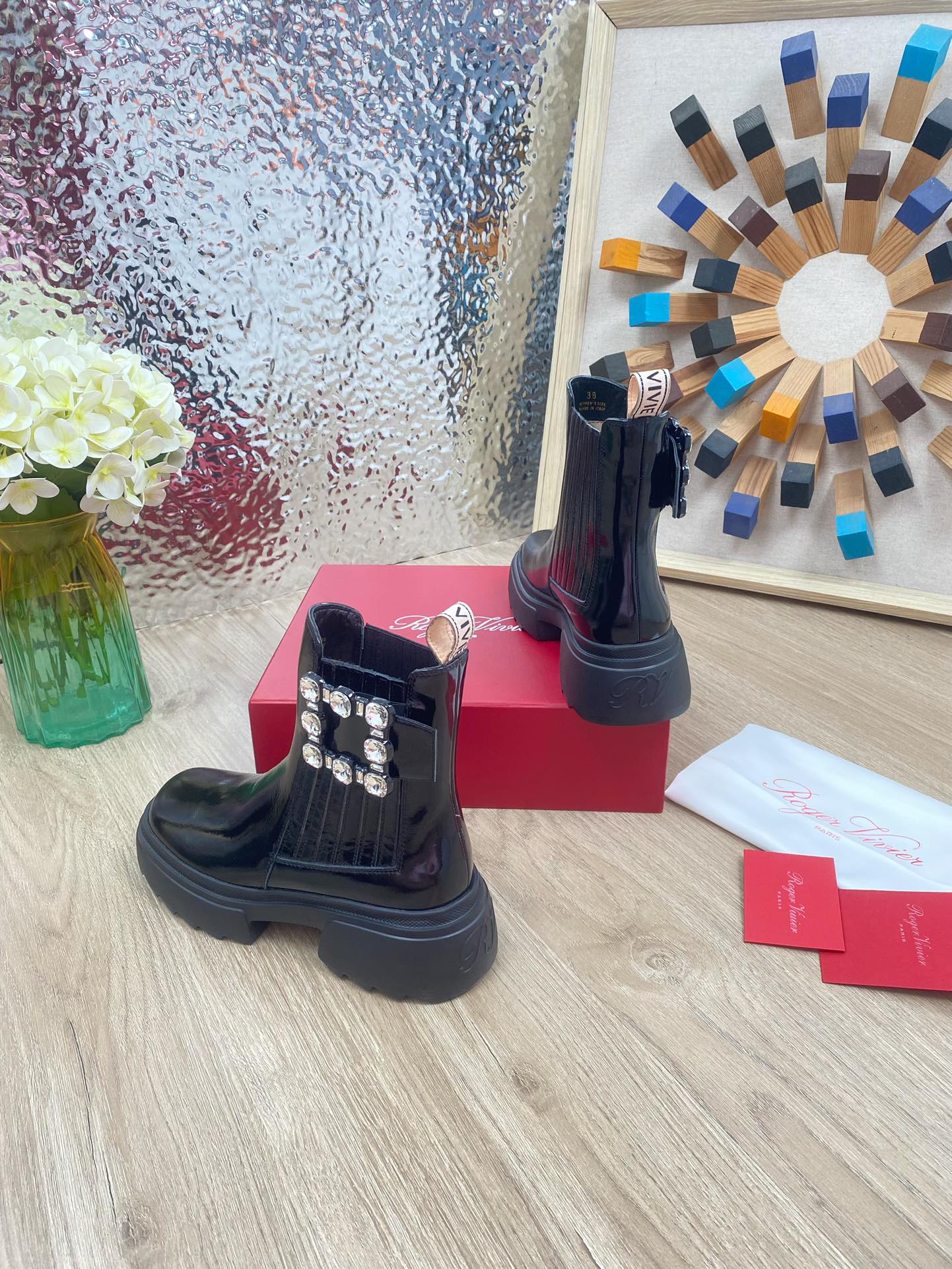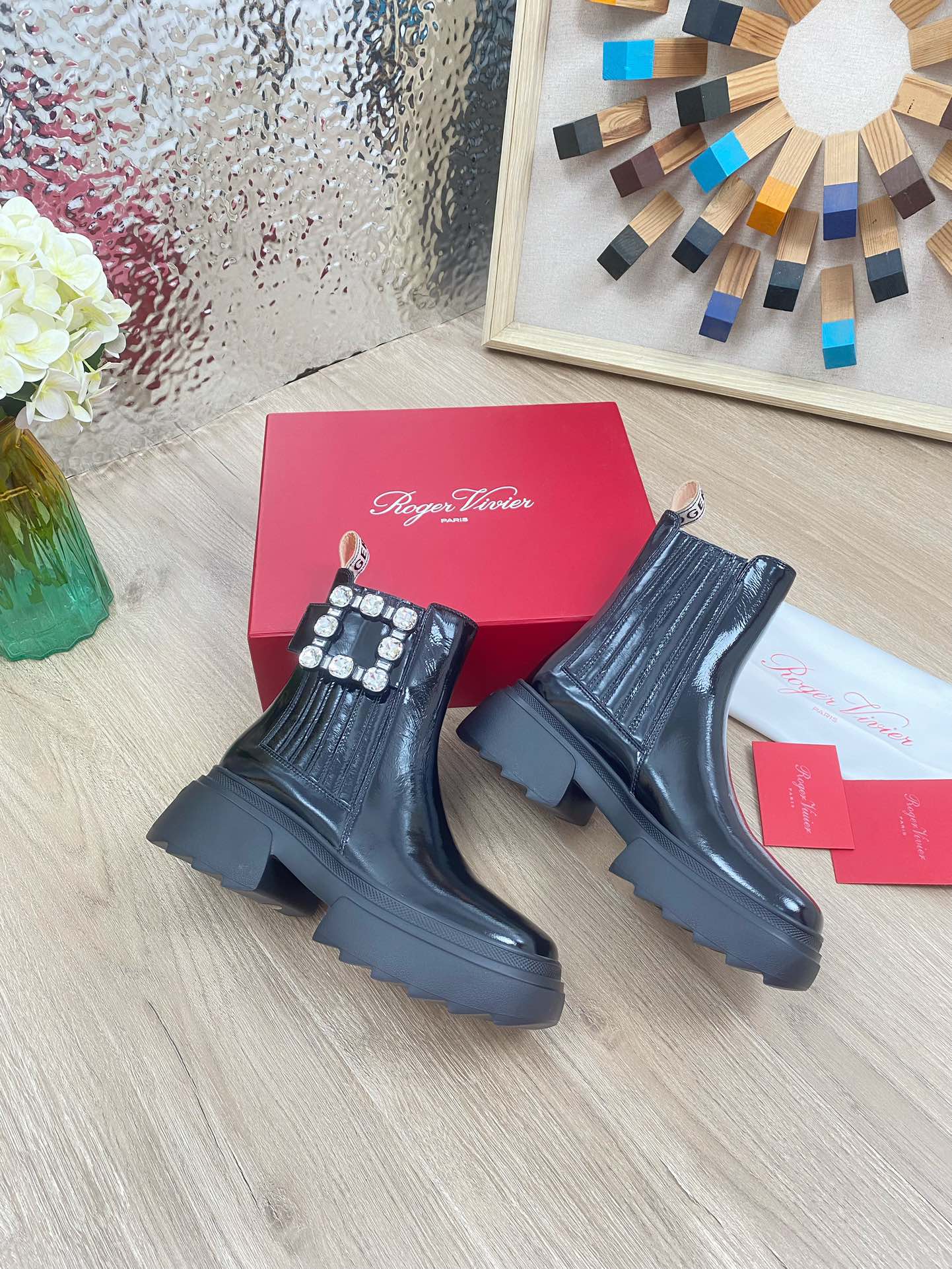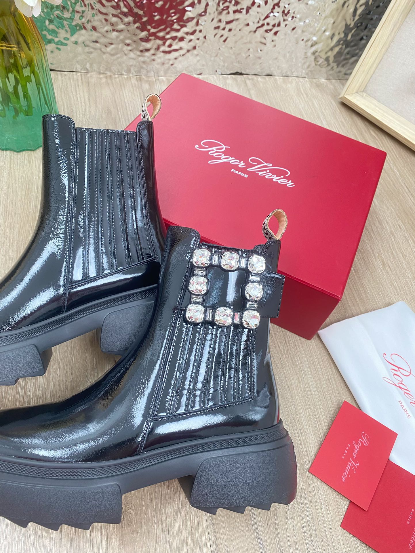 这款鞋子是AAAAA 1:1 质量 (非常棒). 使用了和原版一模一样的材料. 商标部分也保持了和罗杰维维耶/Roger Vivier一样. 图片拍摄是实物鞋子拍摄, 您所收到的实物保证和我们图片一模一样.