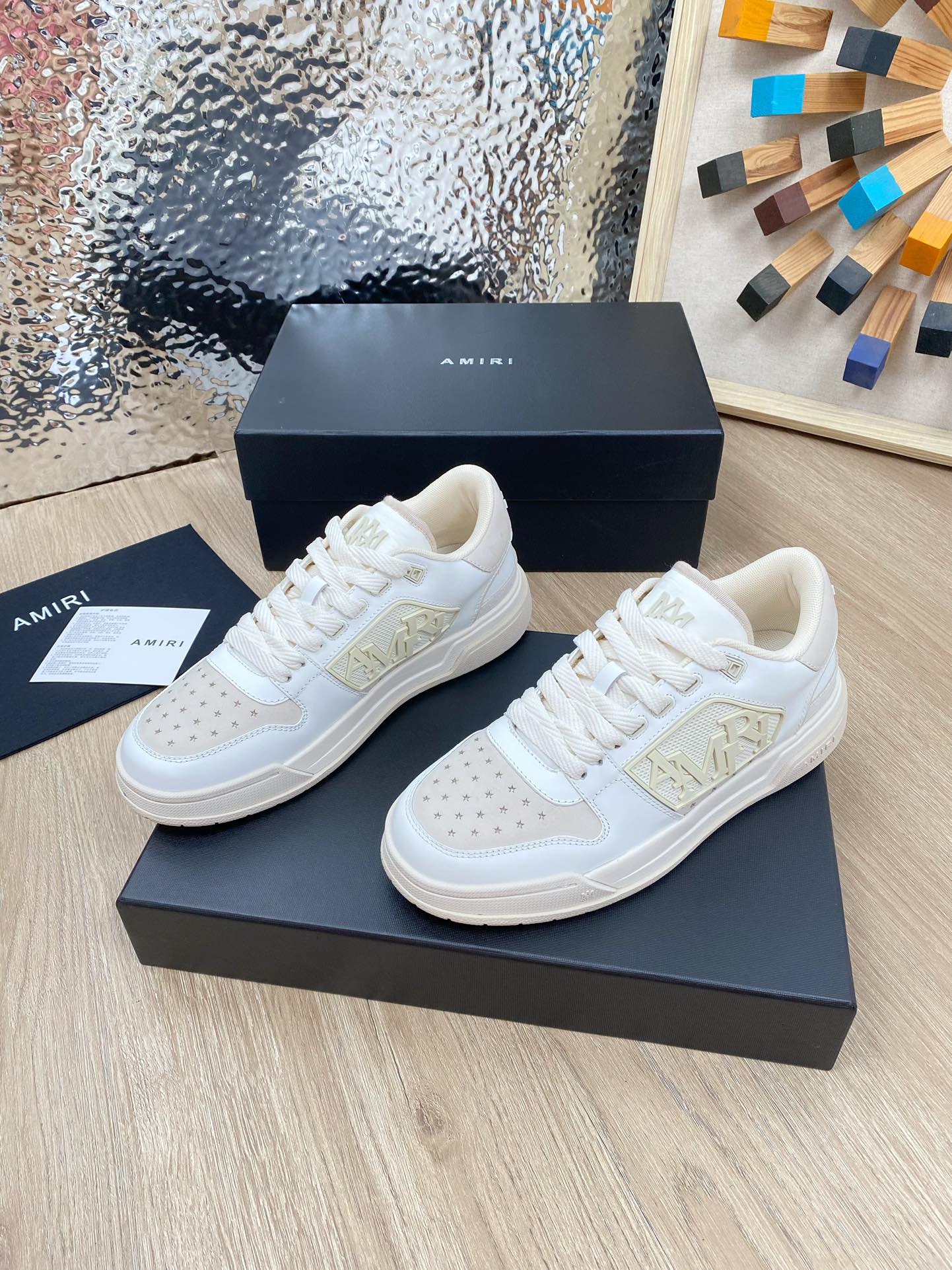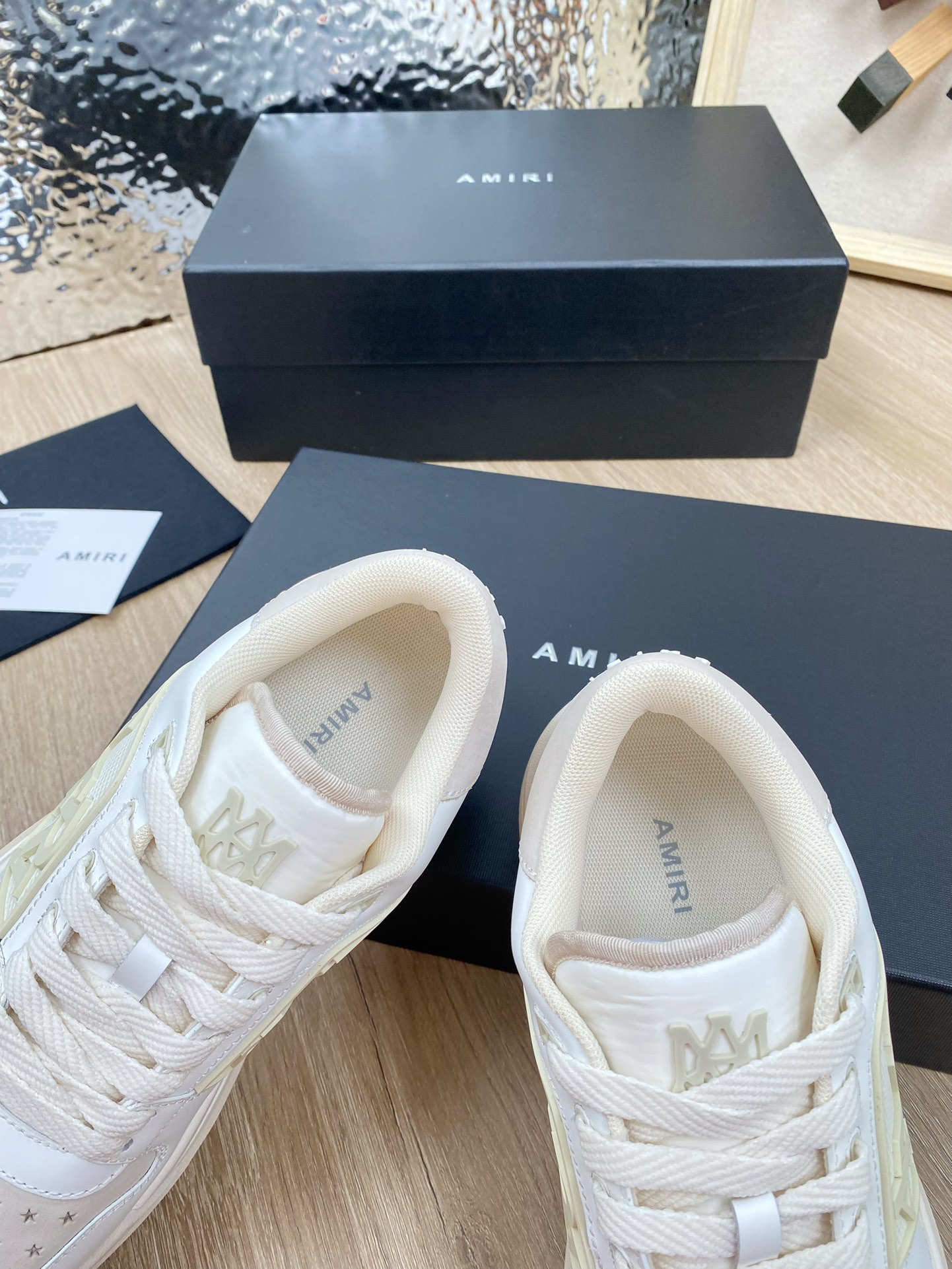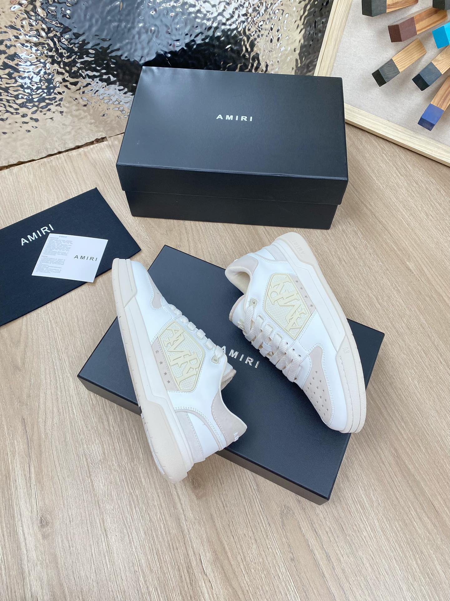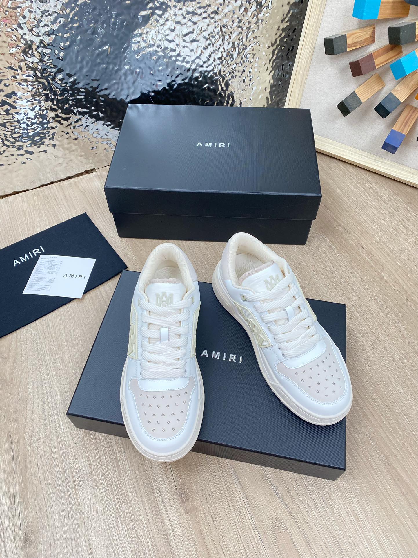 这款鞋子是AAAAA 1:1 质量 (非常棒). 使用了和原版一模一样的材料. 商标部分也保持了和AMIRI一样. 图片拍摄是实物鞋子拍摄, 您所收到的实物保证和我们图片一模一样.