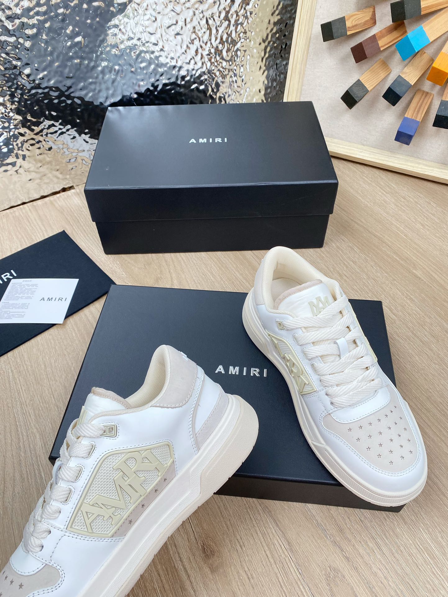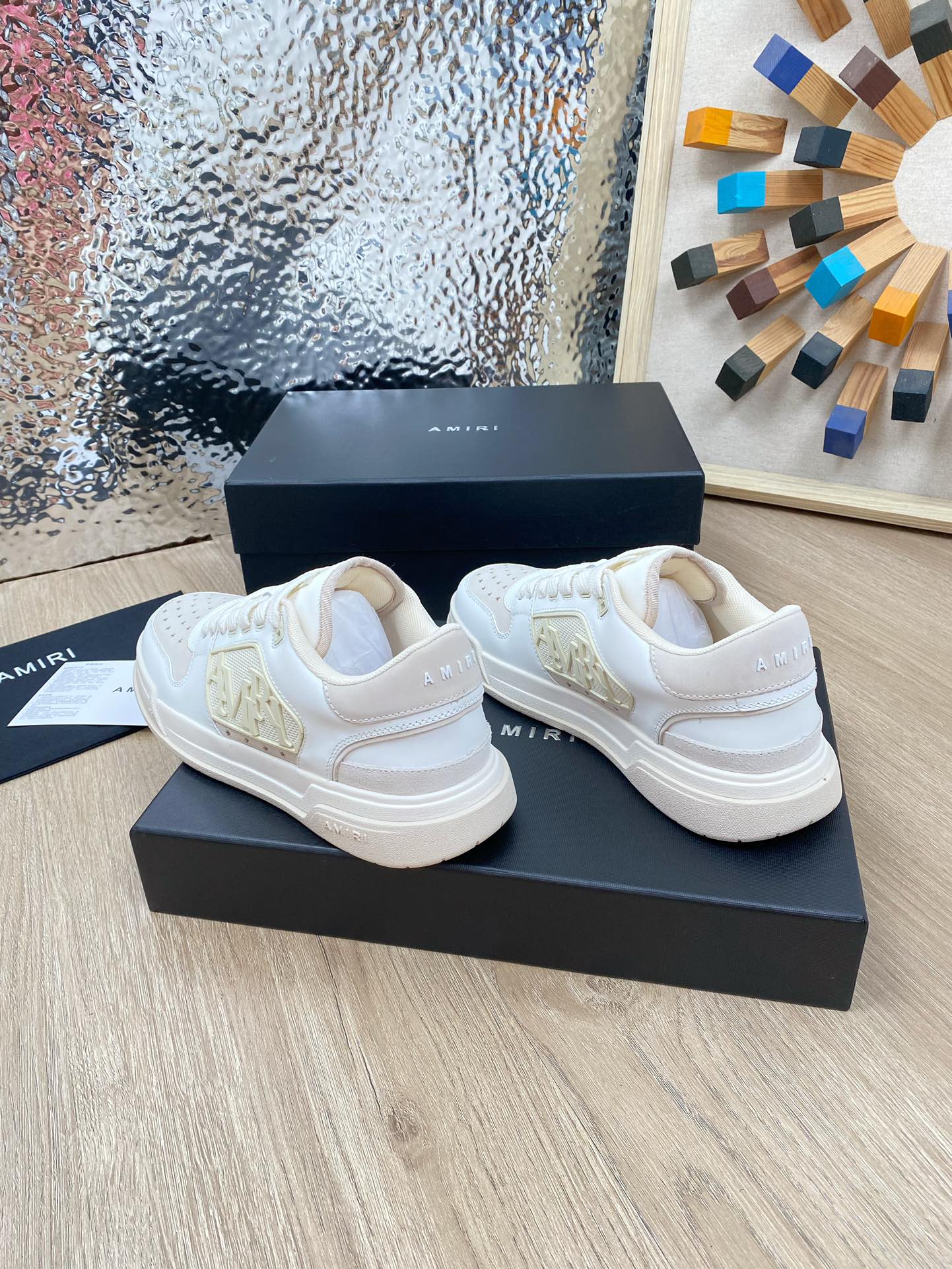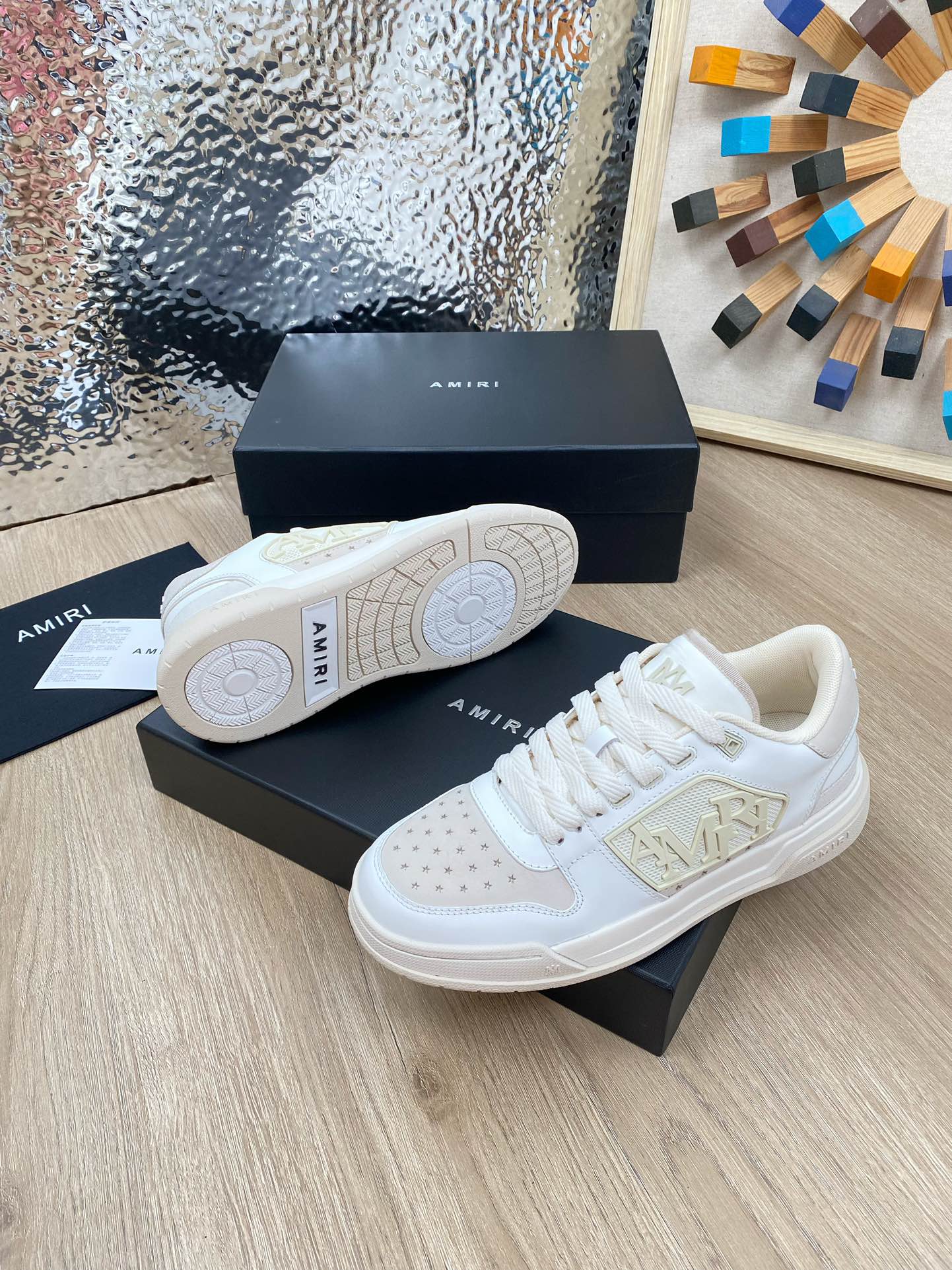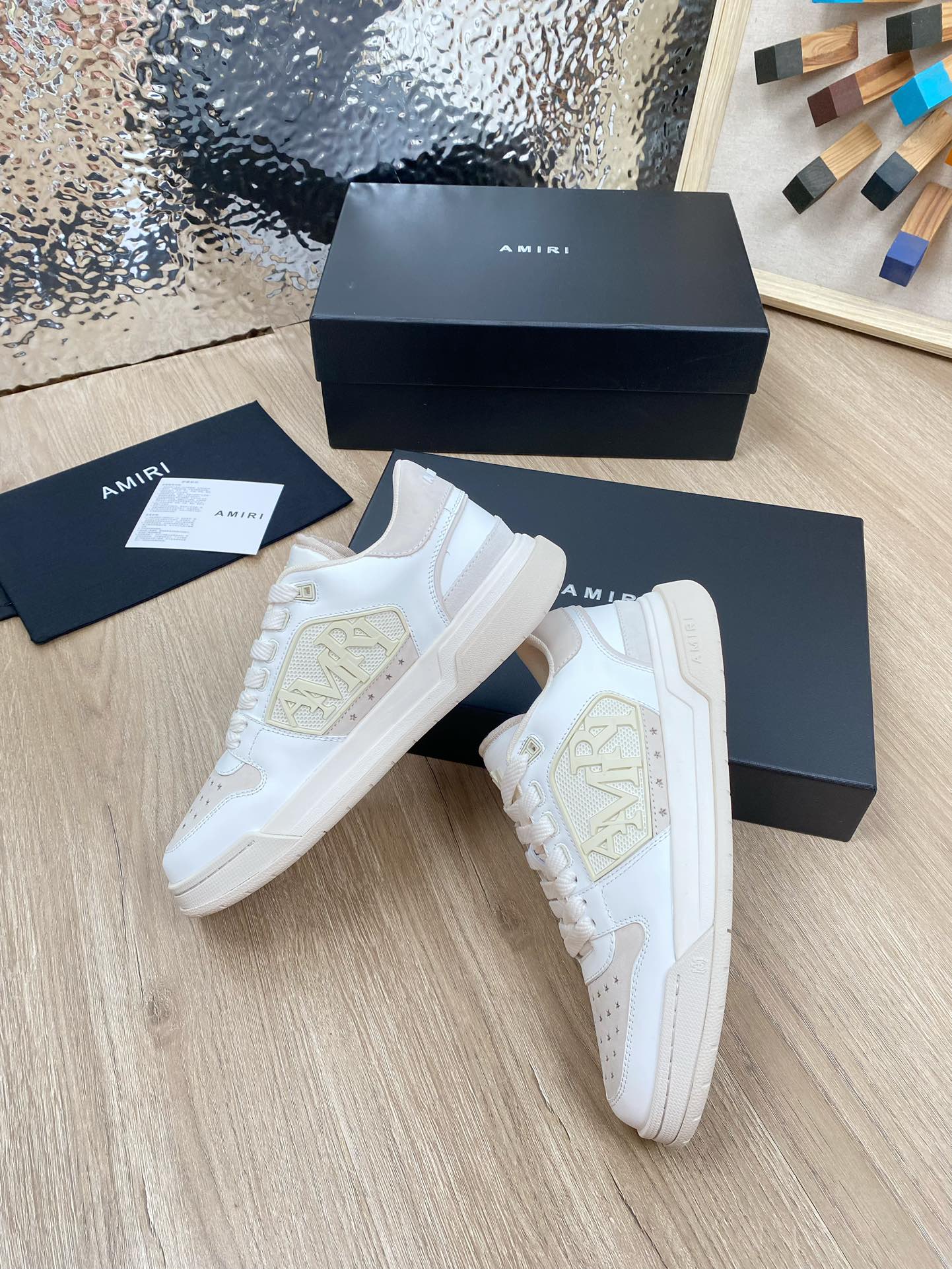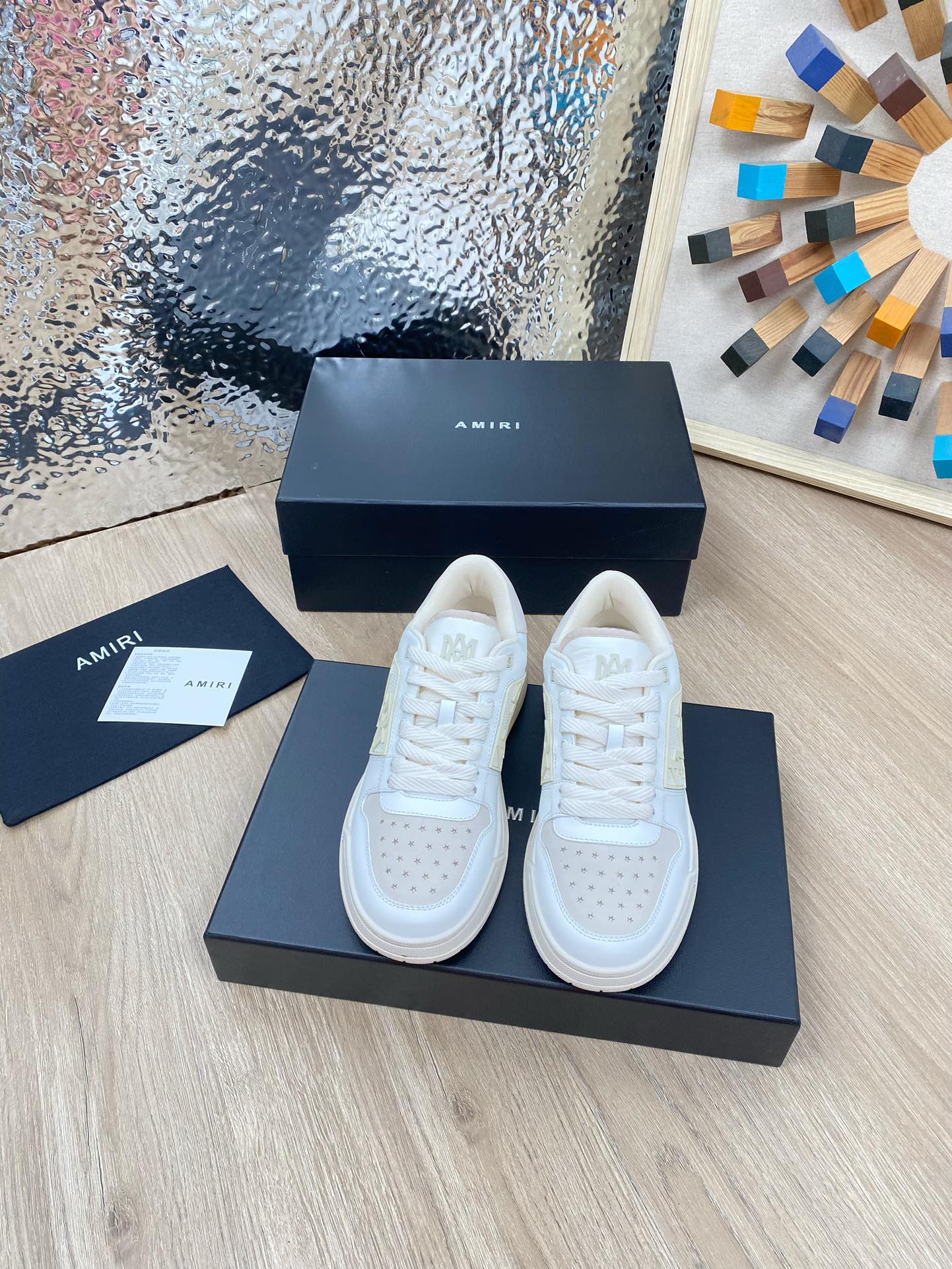 这款鞋子是AAAAA 1:1 质量 (非常棒). 使用了和原版一模一样的材料. 商标部分也保持了和AMIRI一样. 图片拍摄是实物鞋子拍摄, 您所收到的实物保证和我们图片一模一样.