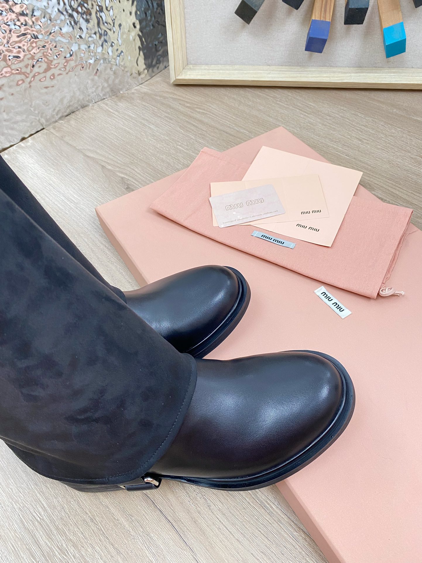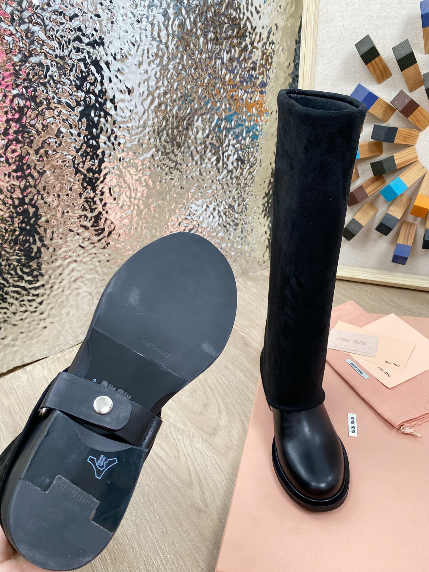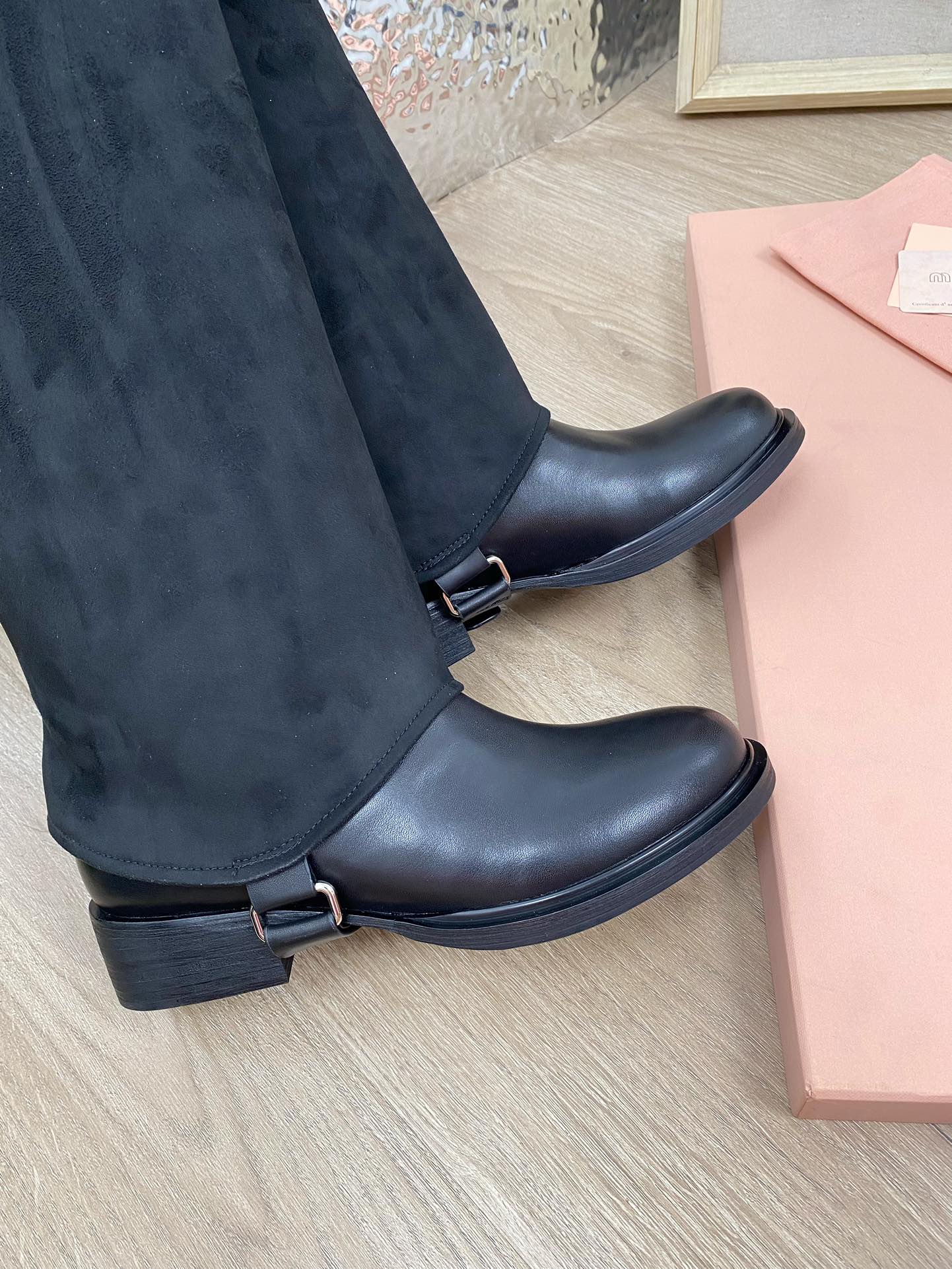 这款鞋子是AAAAA 1:1 质量 (非常棒). 使用了和原版一模一样的材料. 商标部分也保持了和缪缪/Miu Miu一样. 图片拍摄是实物鞋子拍摄, 您所收到的实物保证和我们图片一模一样.