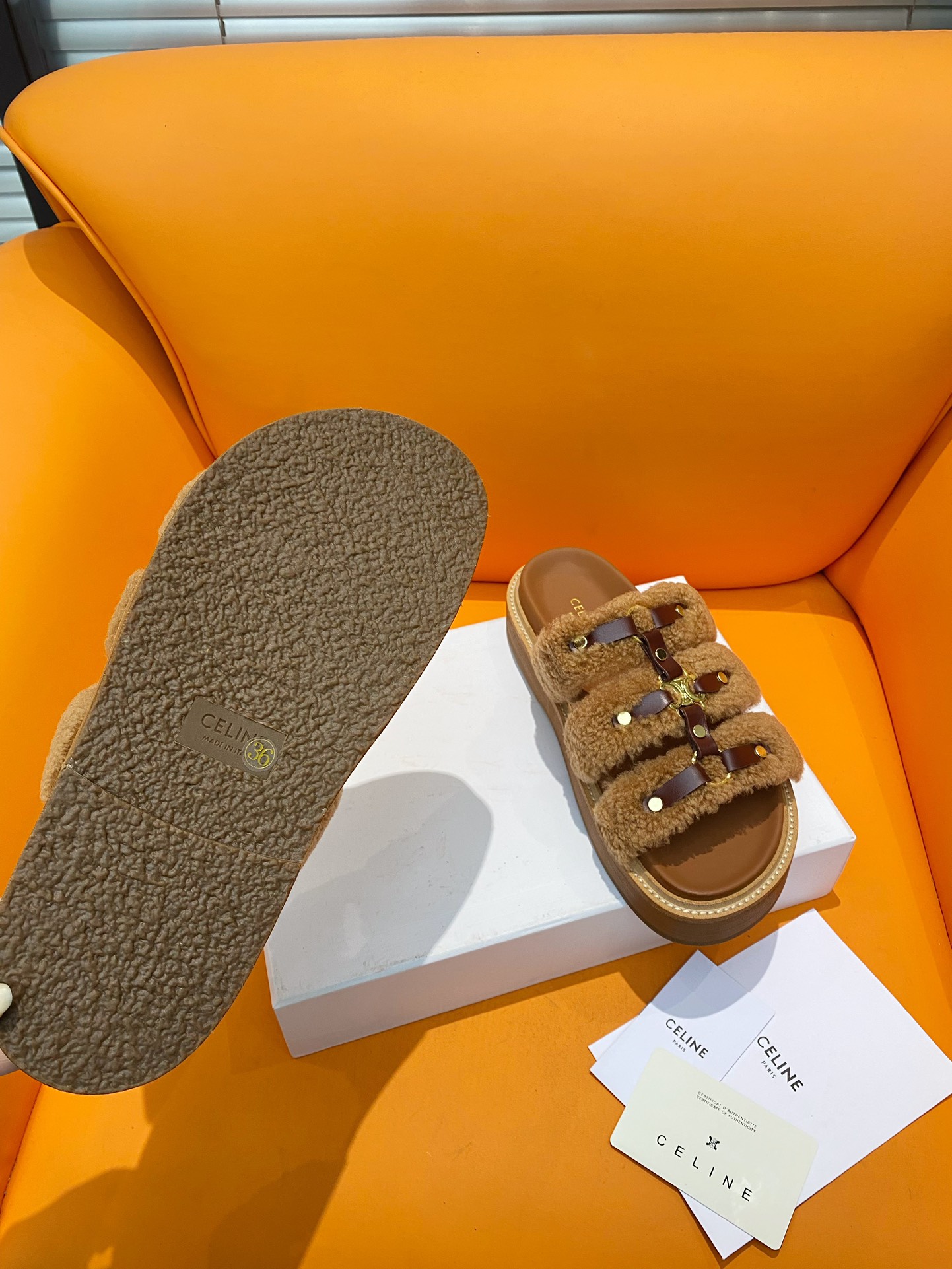 这款鞋子是AAAAA 1:1 质量 (非常棒). 使用了和原版一模一样的材料. 商标部分也保持了和思琳/Celine一样. 图片拍摄是实物鞋子拍摄, 您所收到的实物保证和我们图片一模一样.
