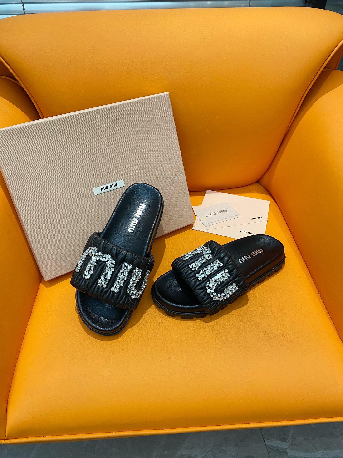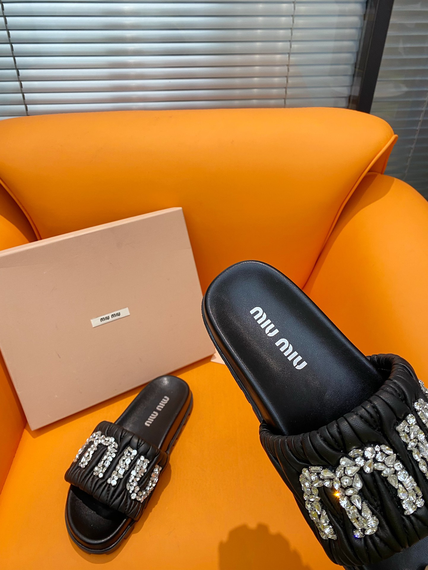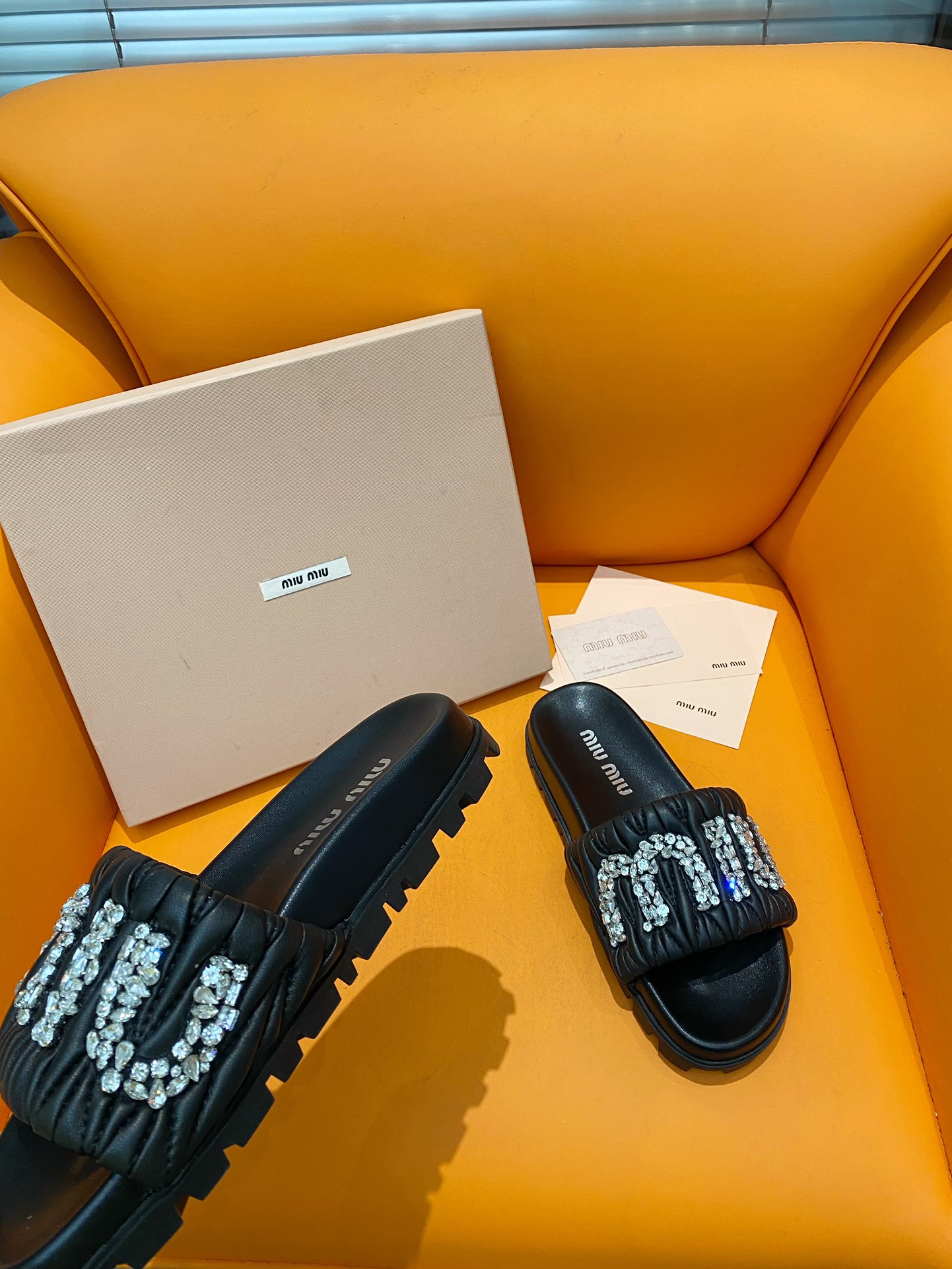 这款鞋子是AAAAA 1:1 质量 (非常棒). 使用了和原版一模一样的材料. 商标部分也保持了和缪缪/Miu Miu一样. 图片拍摄是实物鞋子拍摄, 您所收到的实物保证和我们图片一模一样.