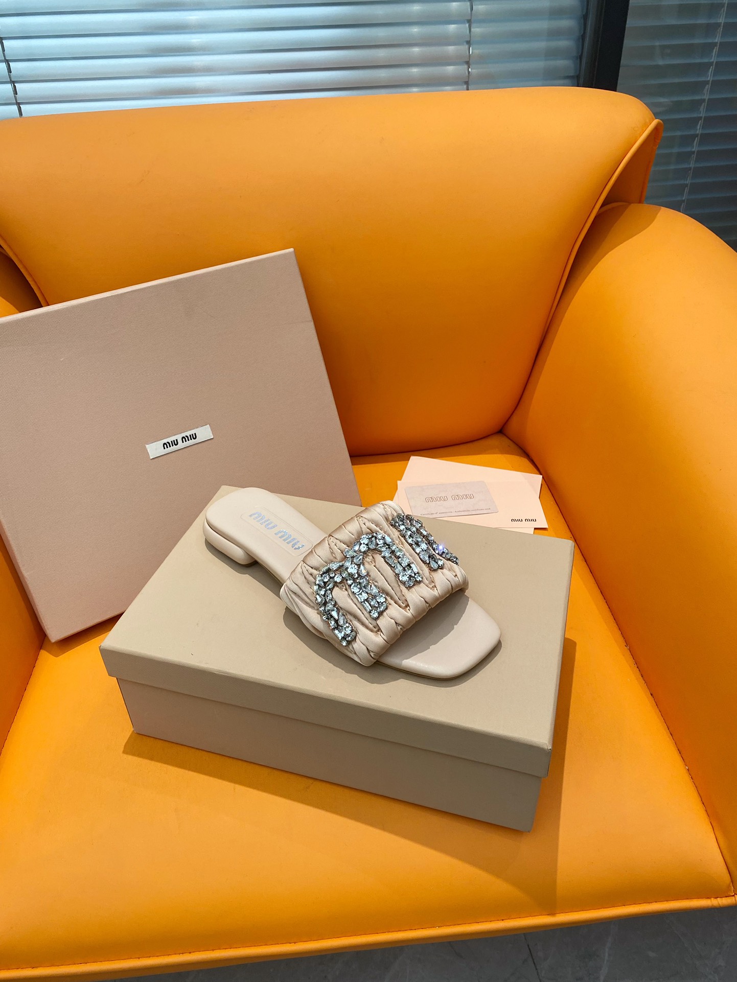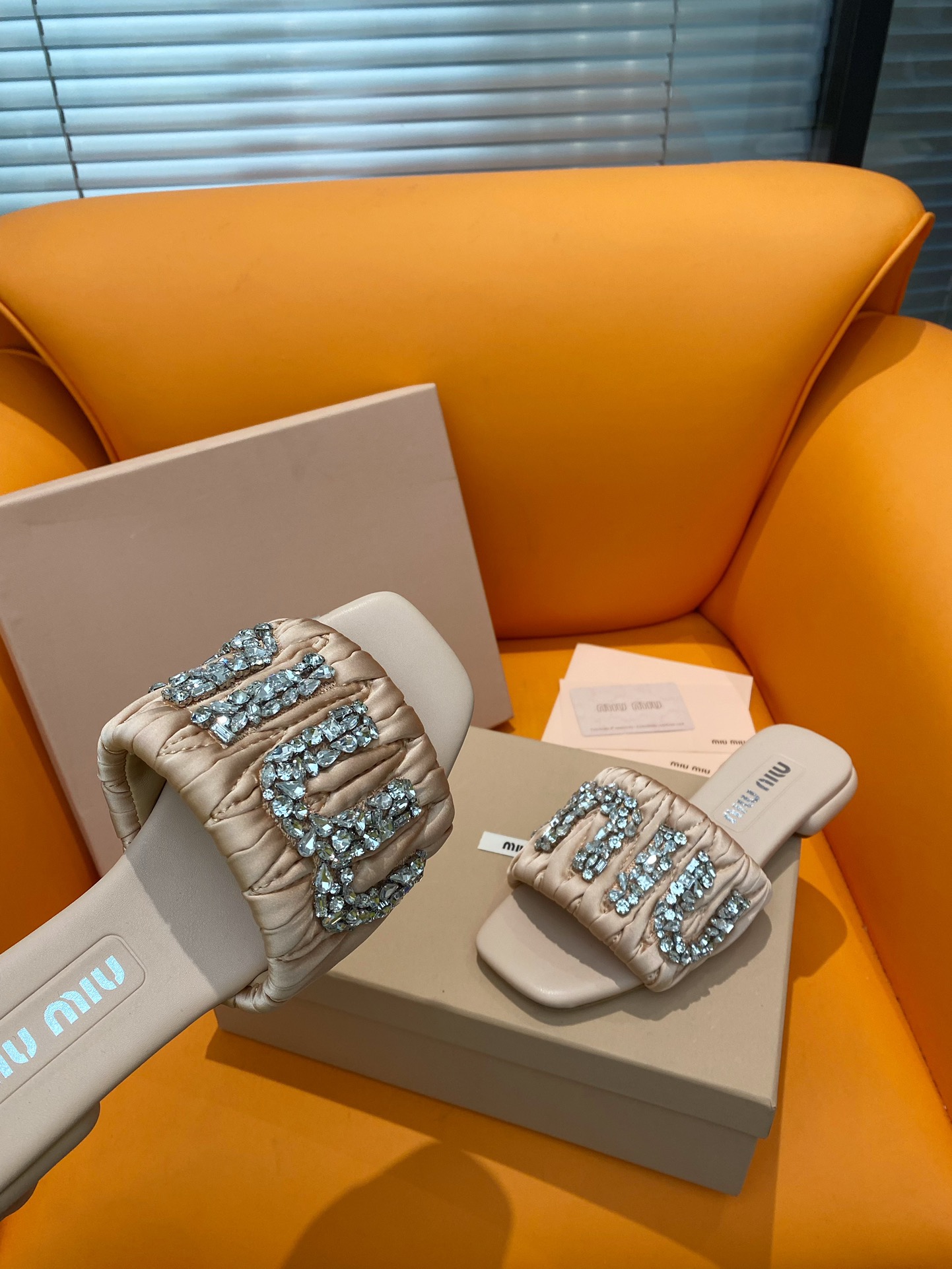这款鞋子是AAAAA 1:1 质量 (非常棒). 使用了和原版一模一样的材料. 商标部分也保持了和缪缪/Miu Miu一样. 图片拍摄是实物鞋子拍摄, 您所收到的实物保证和我们图片一模一样.
