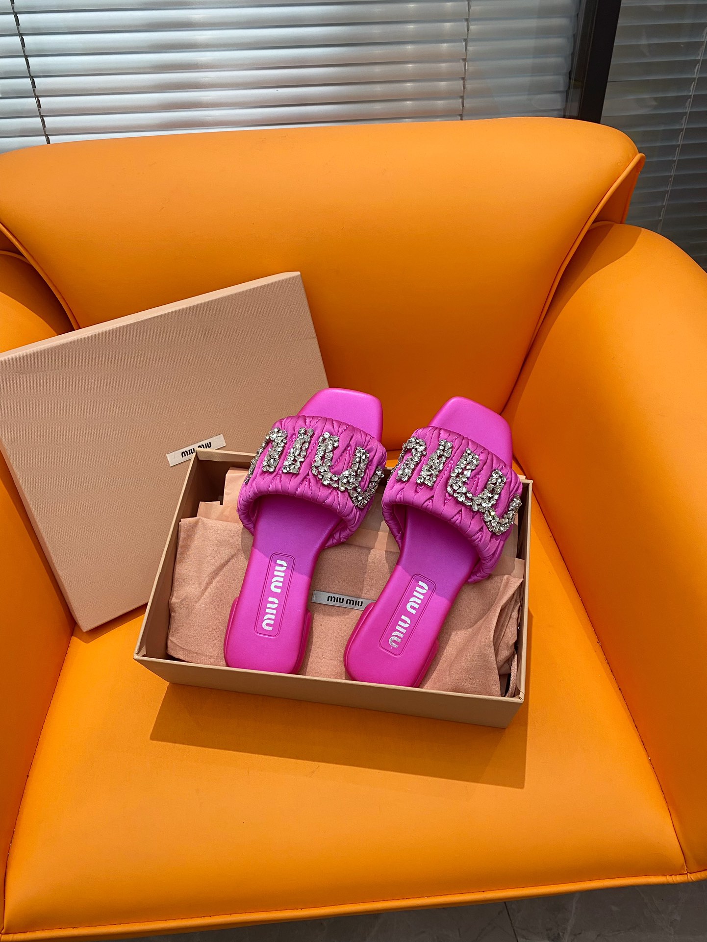 这款鞋子是AAAAA 1:1 质量 (非常棒). 使用了和原版一模一样的材料. 商标部分也保持了和缪缪/Miu Miu一样. 图片拍摄是实物鞋子拍摄, 您所收到的实物保证和我们图片一模一样.