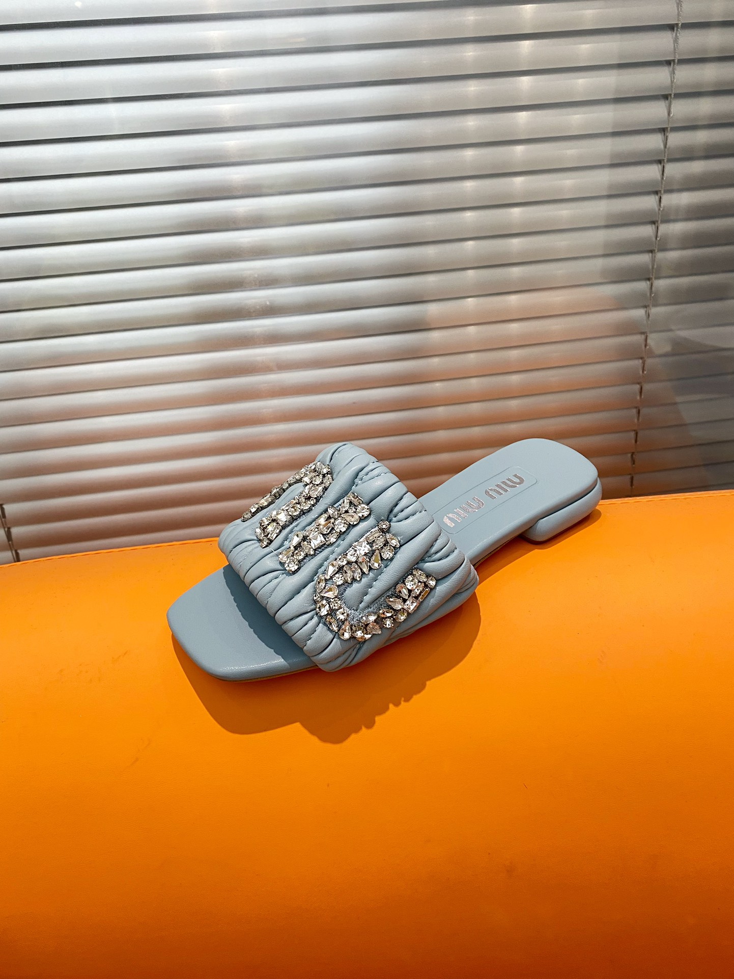 这款鞋子是AAAAA 1:1 质量 (非常棒). 使用了和原版一模一样的材料. 商标部分也保持了和缪缪/Miu Miu一样. 图片拍摄是实物鞋子拍摄, 您所收到的实物保证和我们图片一模一样.