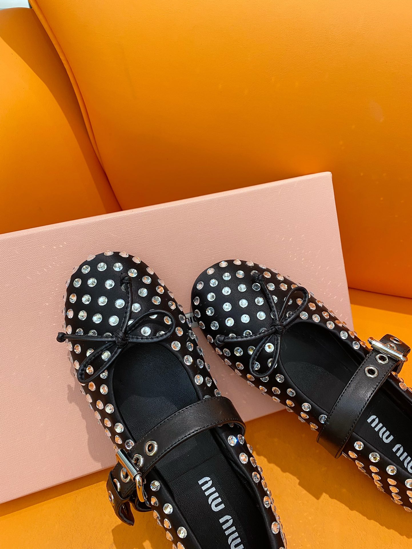这款鞋子是AAAAA 1:1 质量 (非常棒). 使用了和原版一模一样的材料. 商标部分也保持了和缪缪/Miu Miu一样. 图片拍摄是实物鞋子拍摄, 您所收到的实物保证和我们图片一模一样.