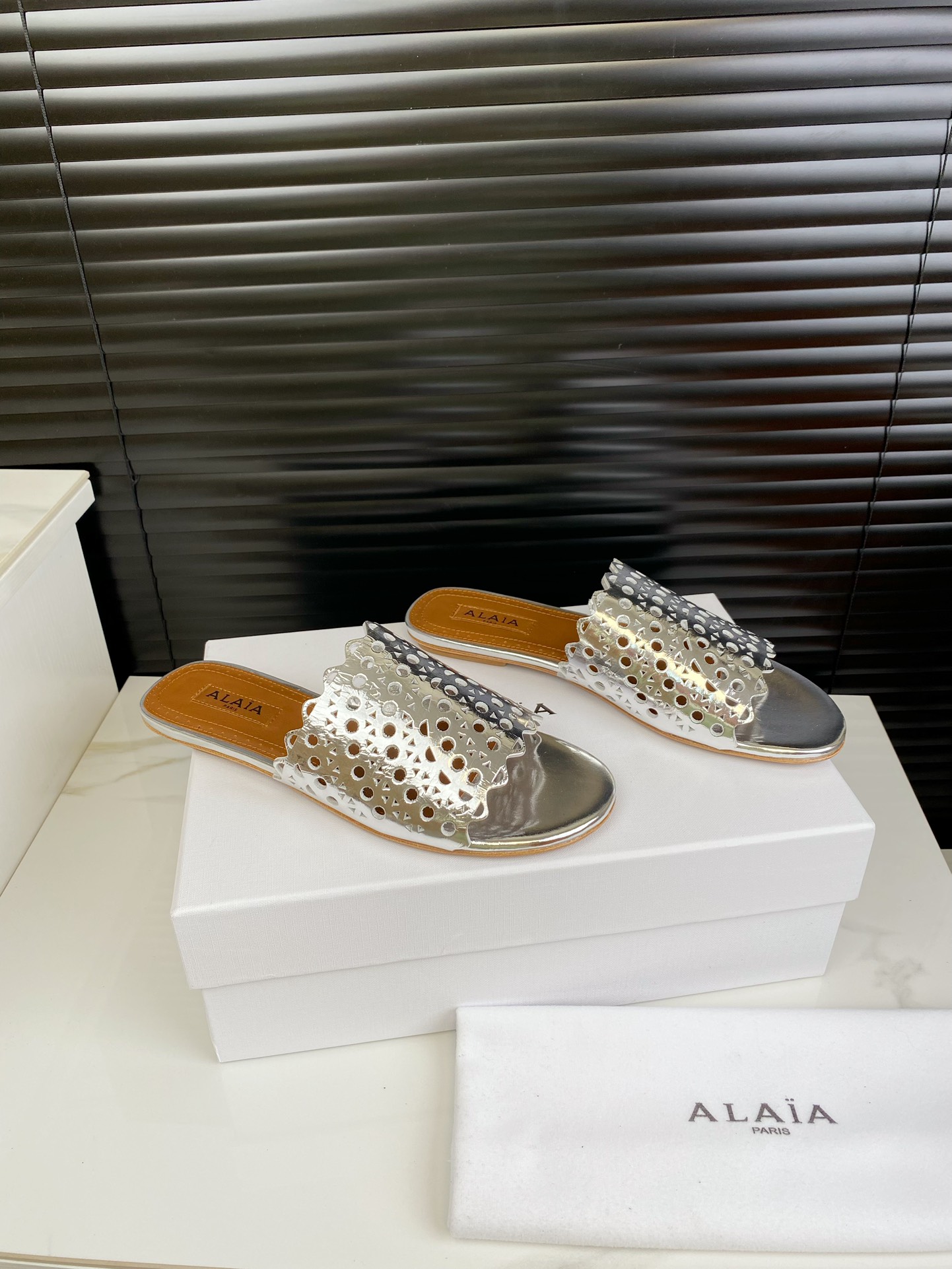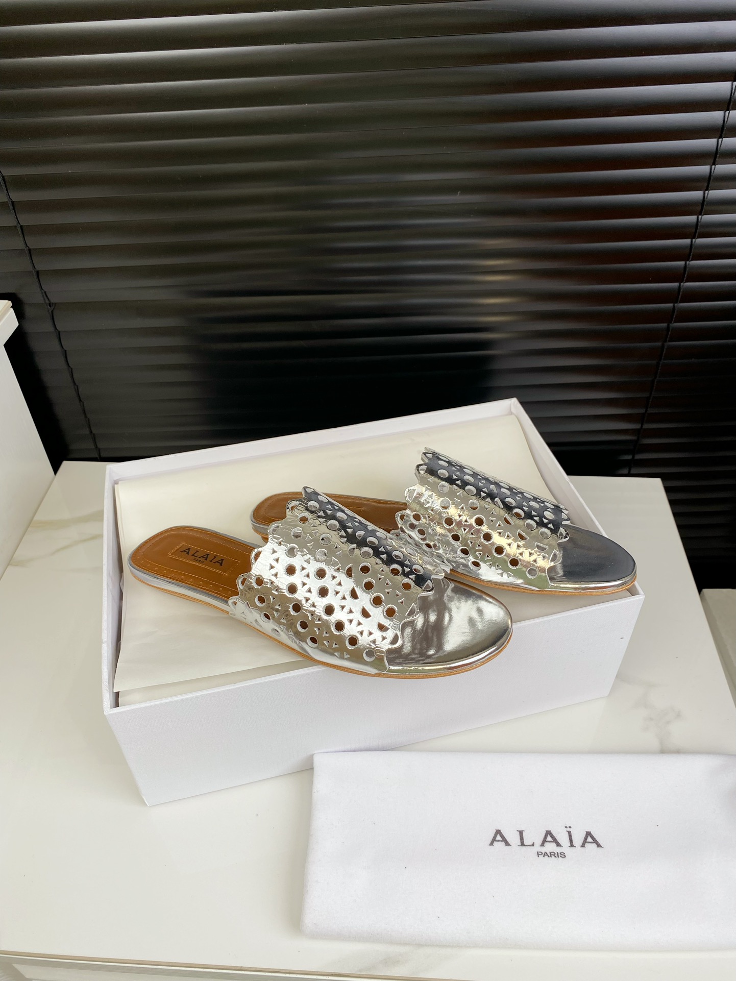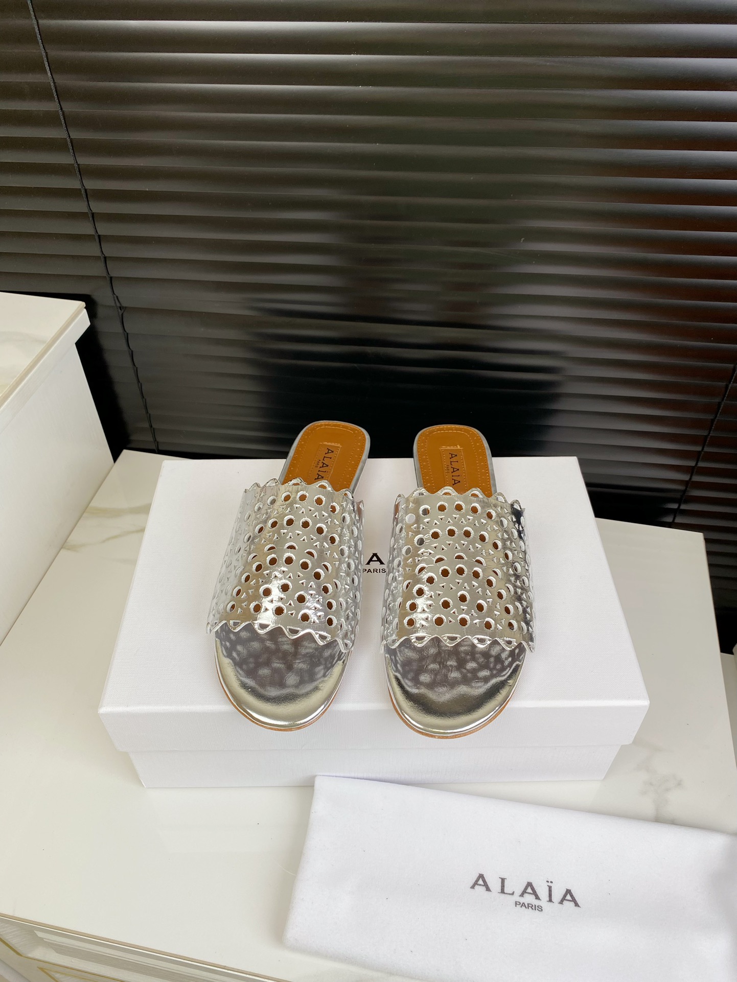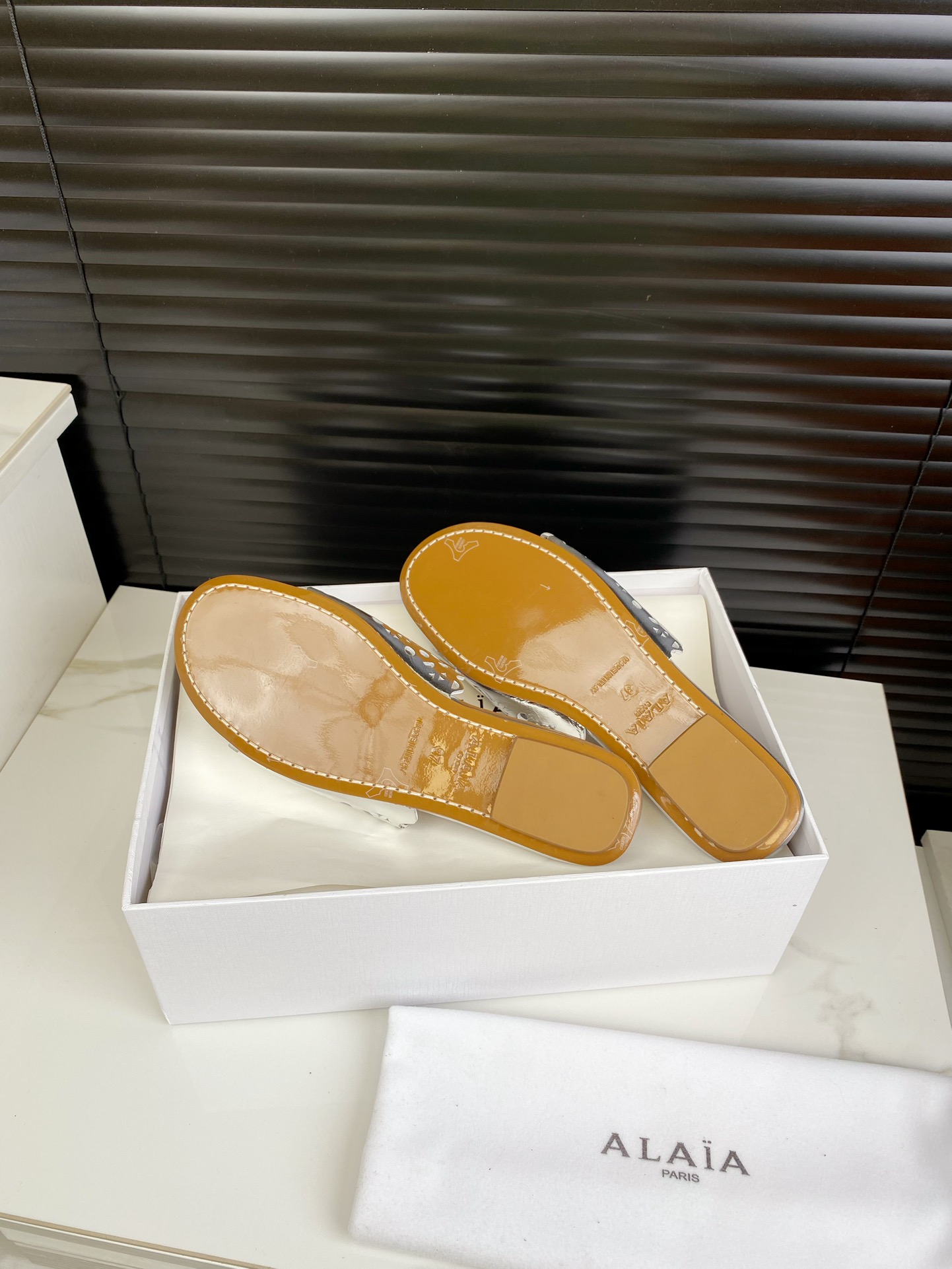 这款鞋子是AAAAA 1:1 质量 (非常棒). 使用了和原版一模一样的材料. 商标部分也保持了和Alaia一样. 图片拍摄是实物鞋子拍摄, 您所收到的实物保证和我们图片一模一样.