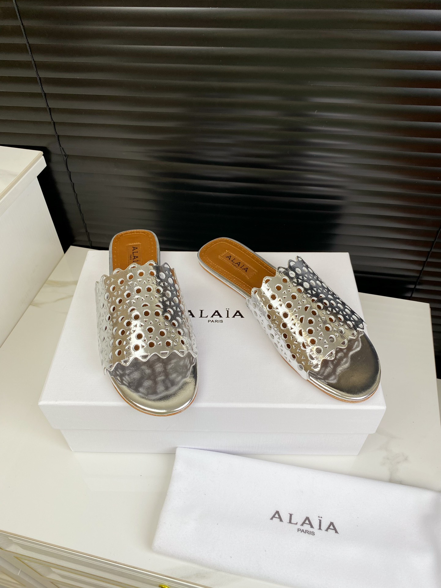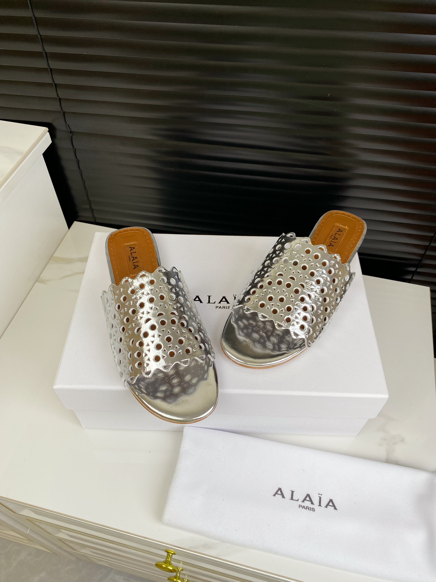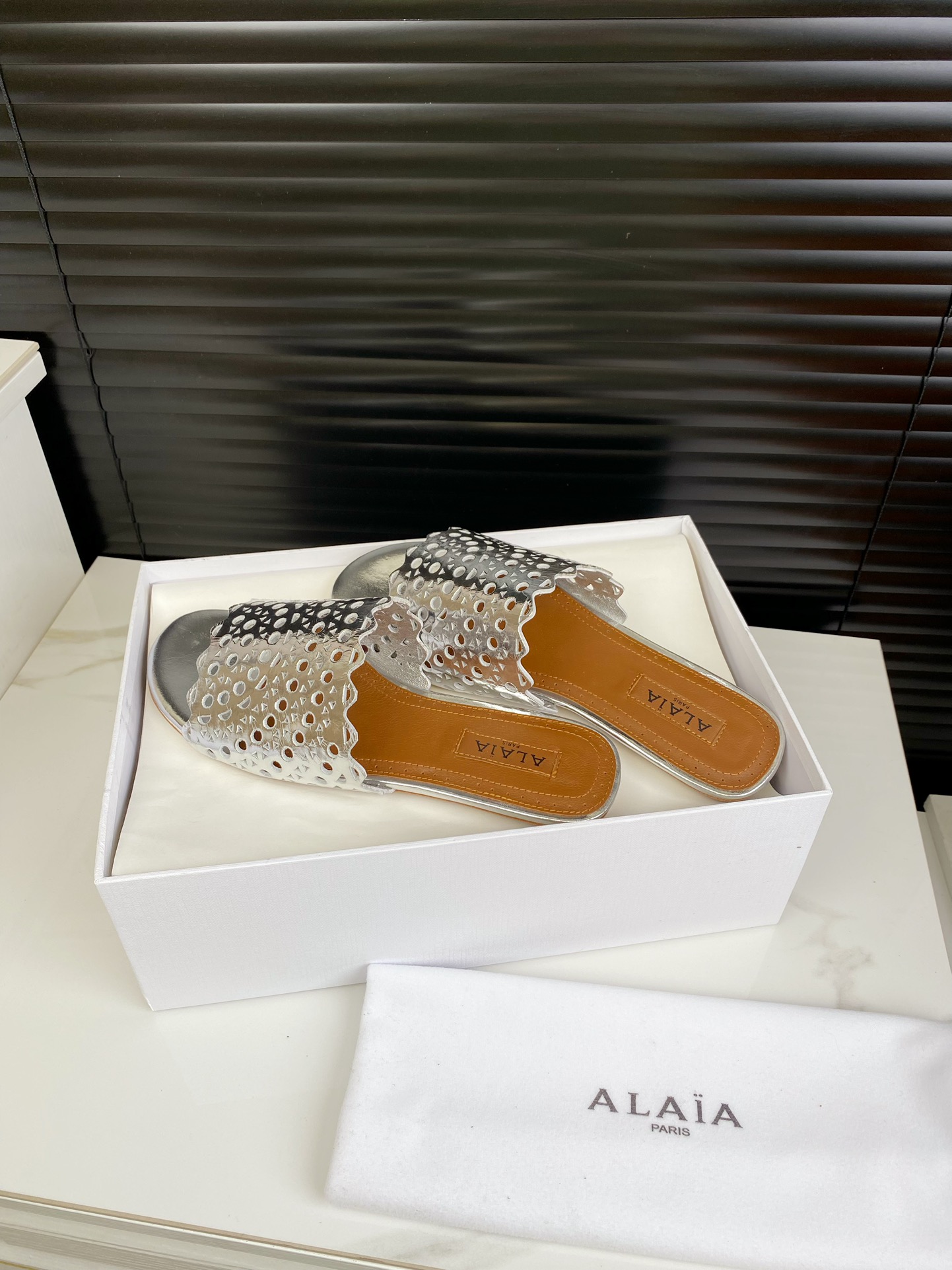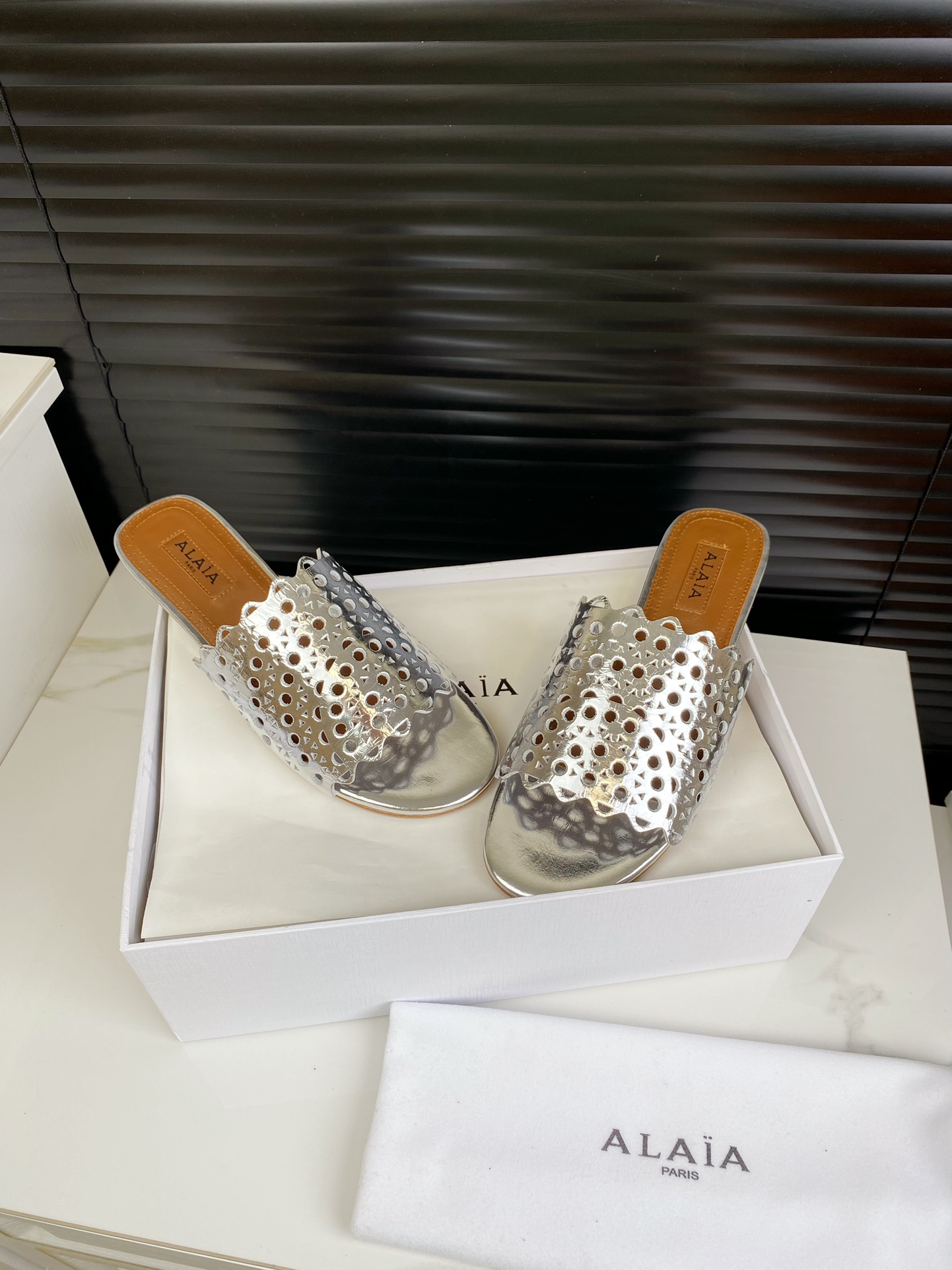 这款鞋子是AAAAA 1:1 质量 (非常棒). 使用了和原版一模一样的材料. 商标部分也保持了和Alaia一样. 图片拍摄是实物鞋子拍摄, 您所收到的实物保证和我们图片一模一样.