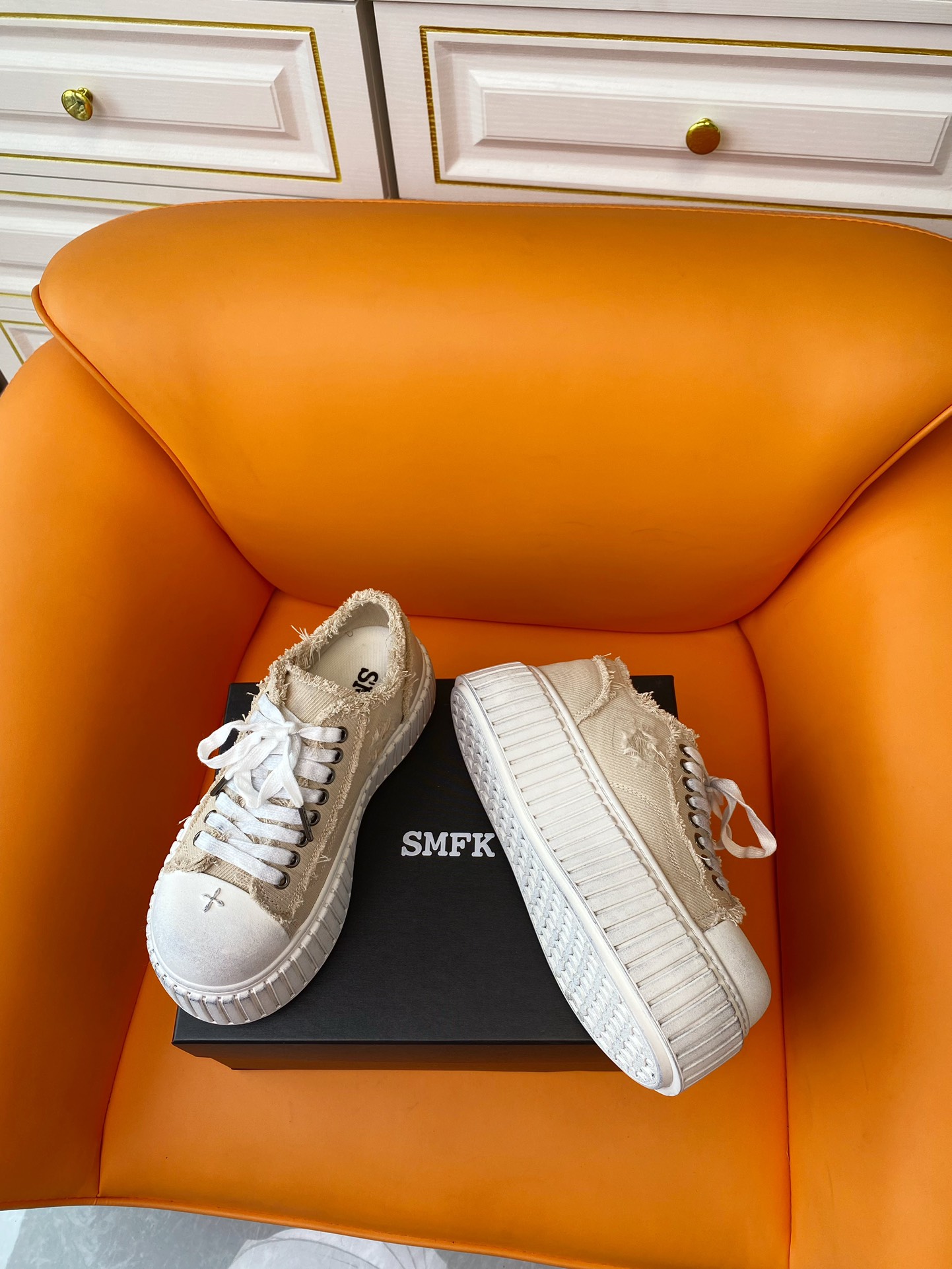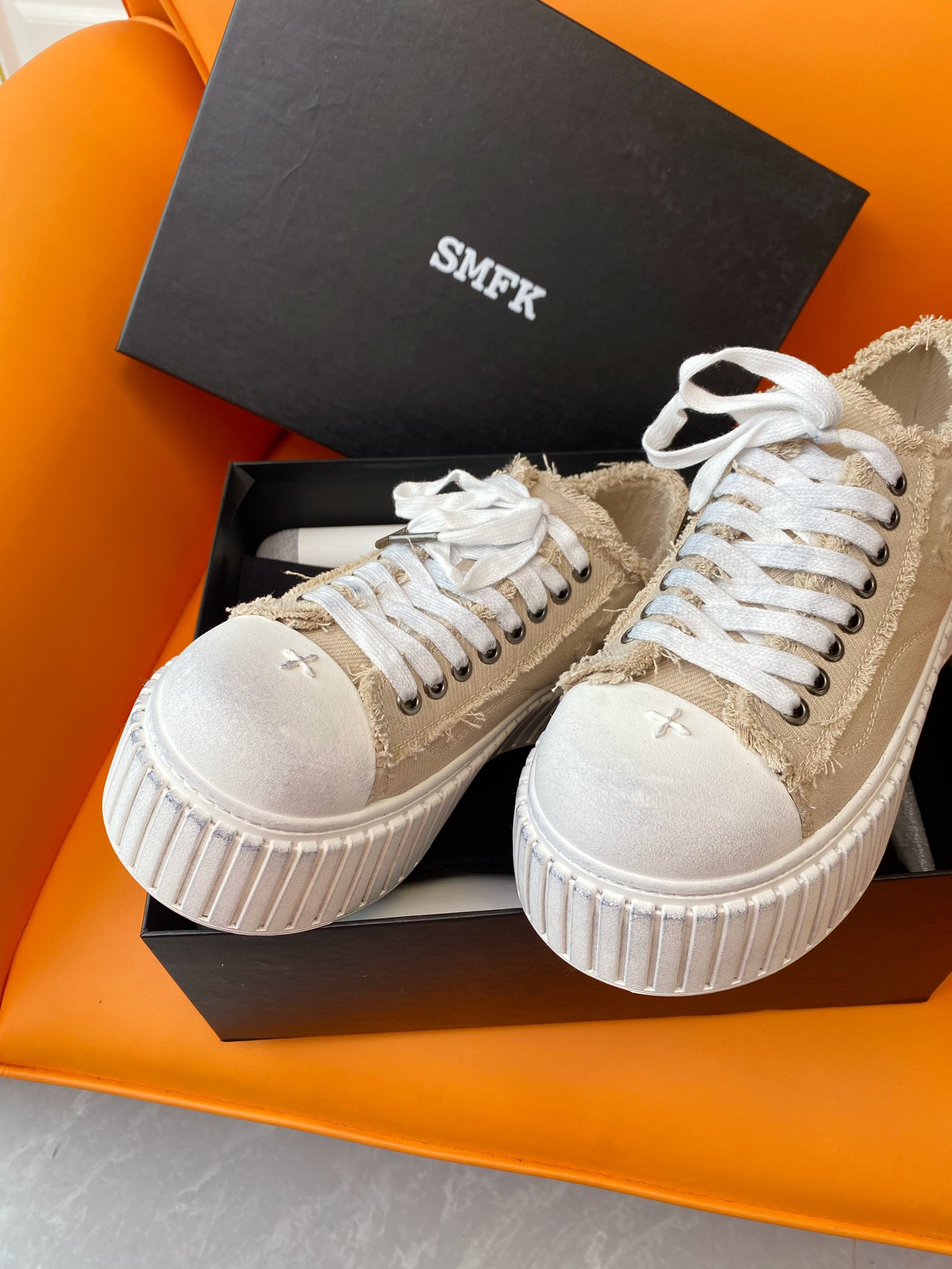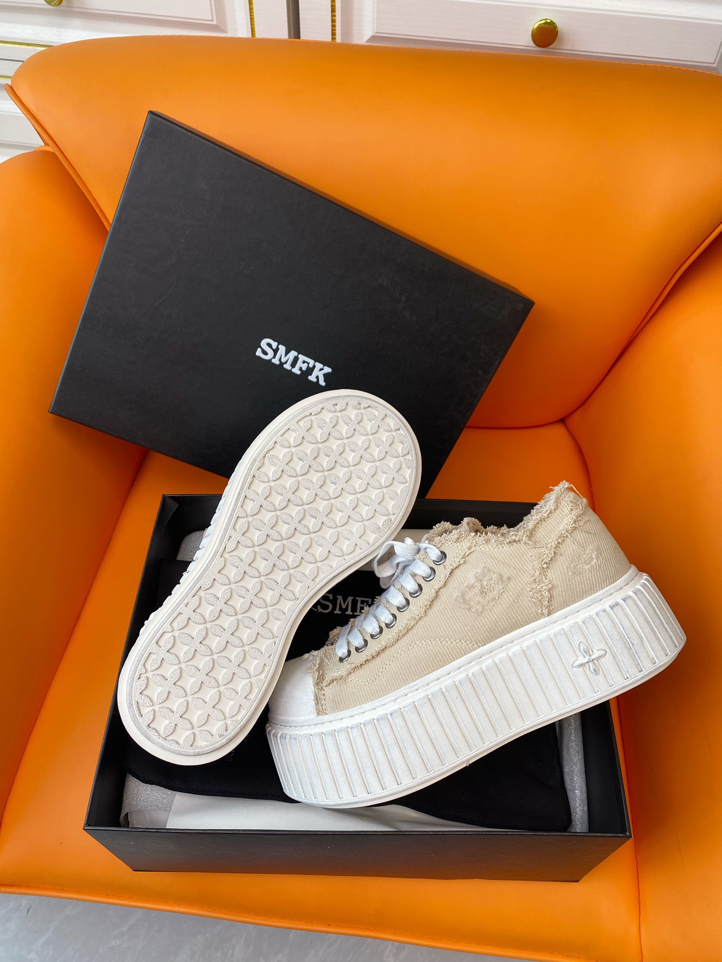 这款鞋子是AAAAA 1:1 质量 (非常棒). 使用了和原版一模一样的材料. 商标部分也保持了和SMFK一样. 图片拍摄是实物鞋子拍摄, 您所收到的实物保证和我们图片一模一样.