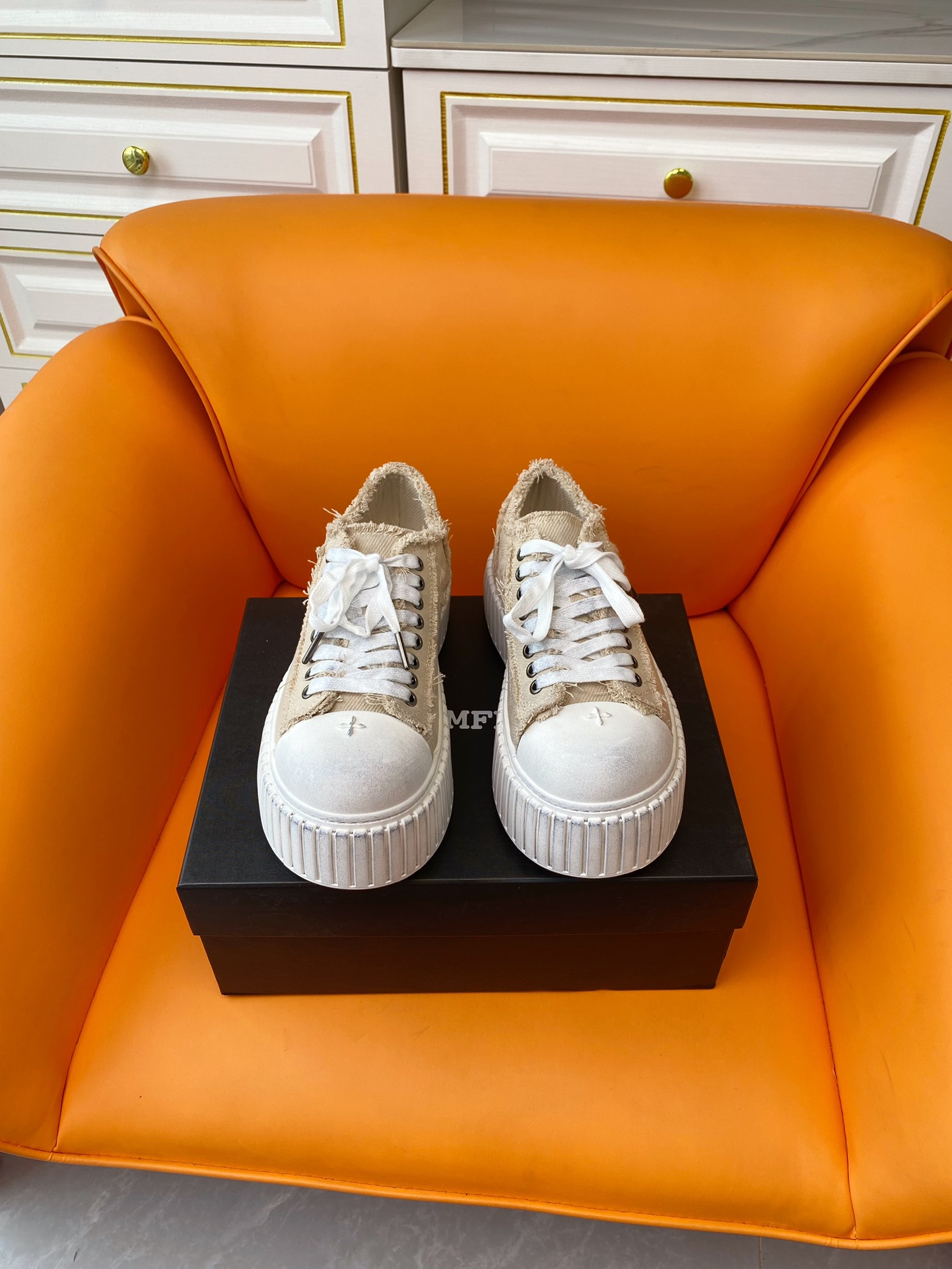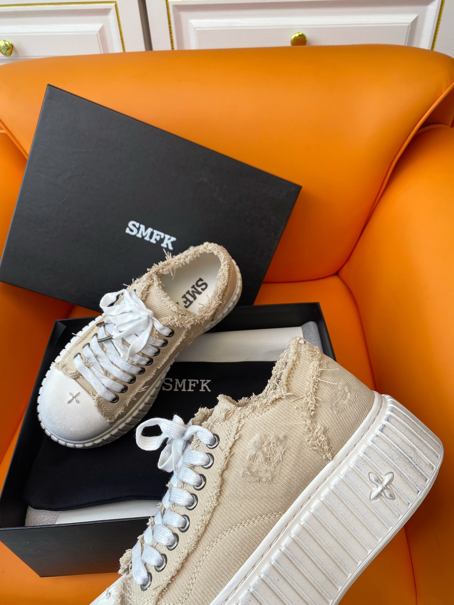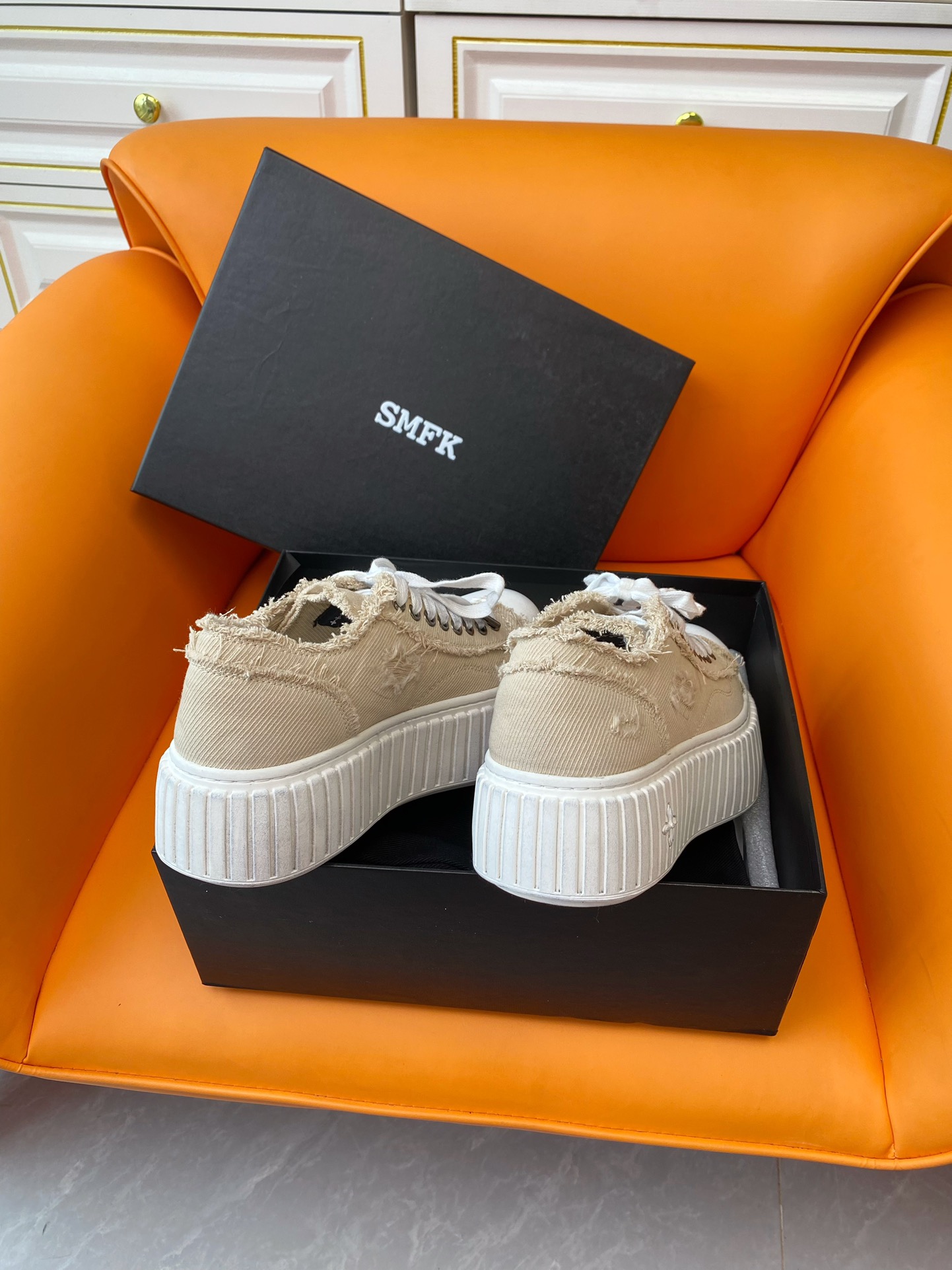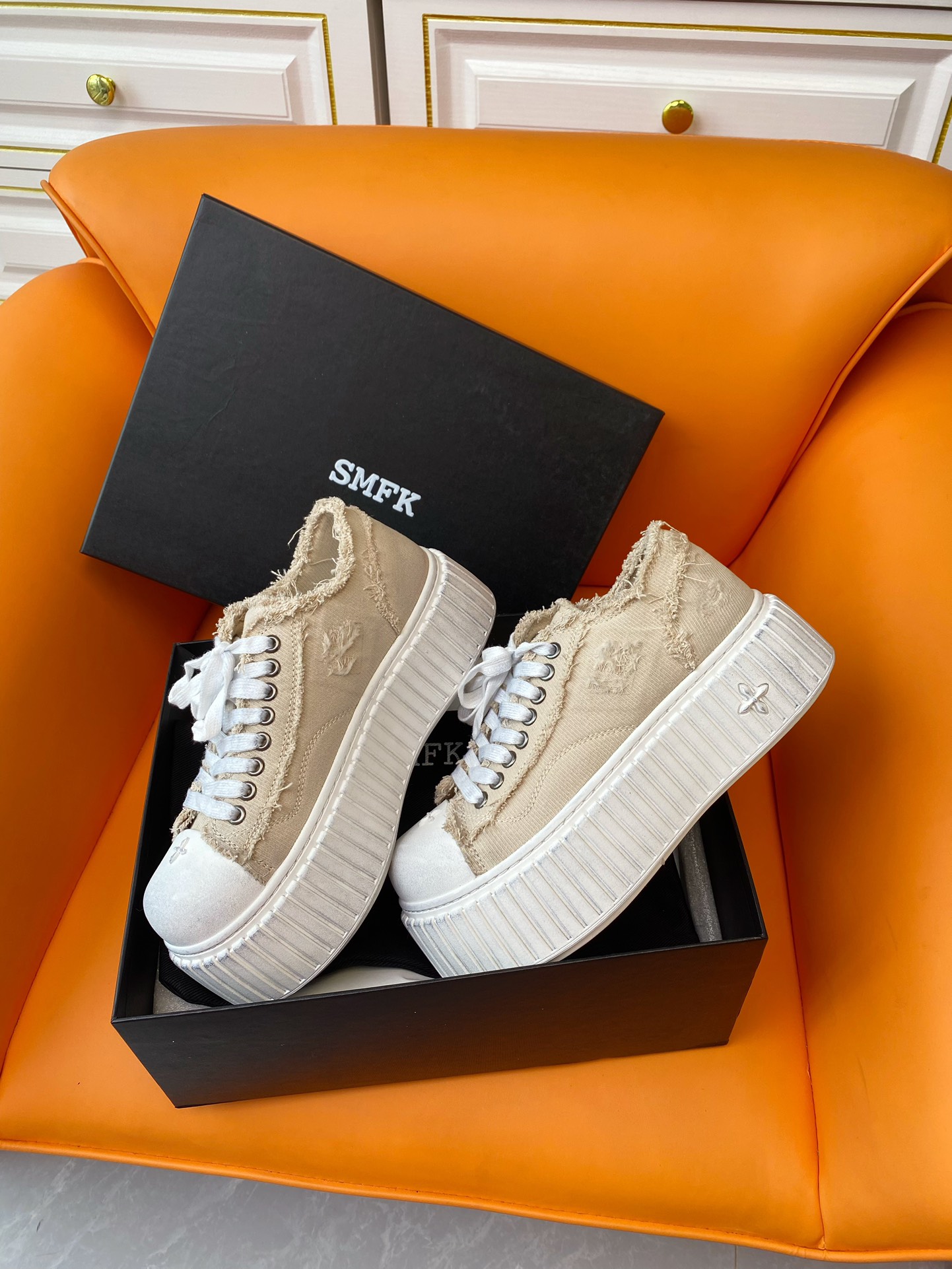 这款鞋子是AAAAA 1:1 质量 (非常棒). 使用了和原版一模一样的材料. 商标部分也保持了和SMFK一样. 图片拍摄是实物鞋子拍摄, 您所收到的实物保证和我们图片一模一样.