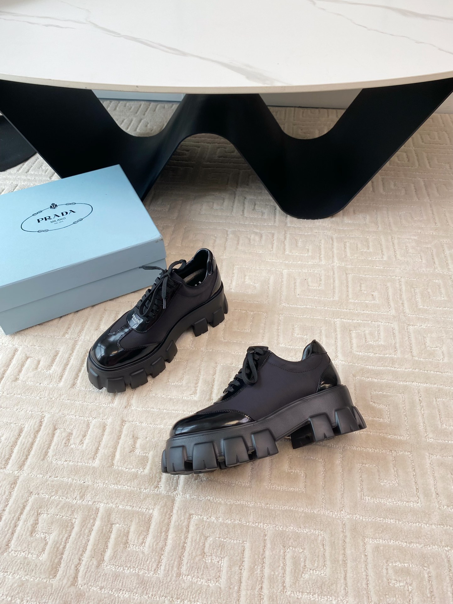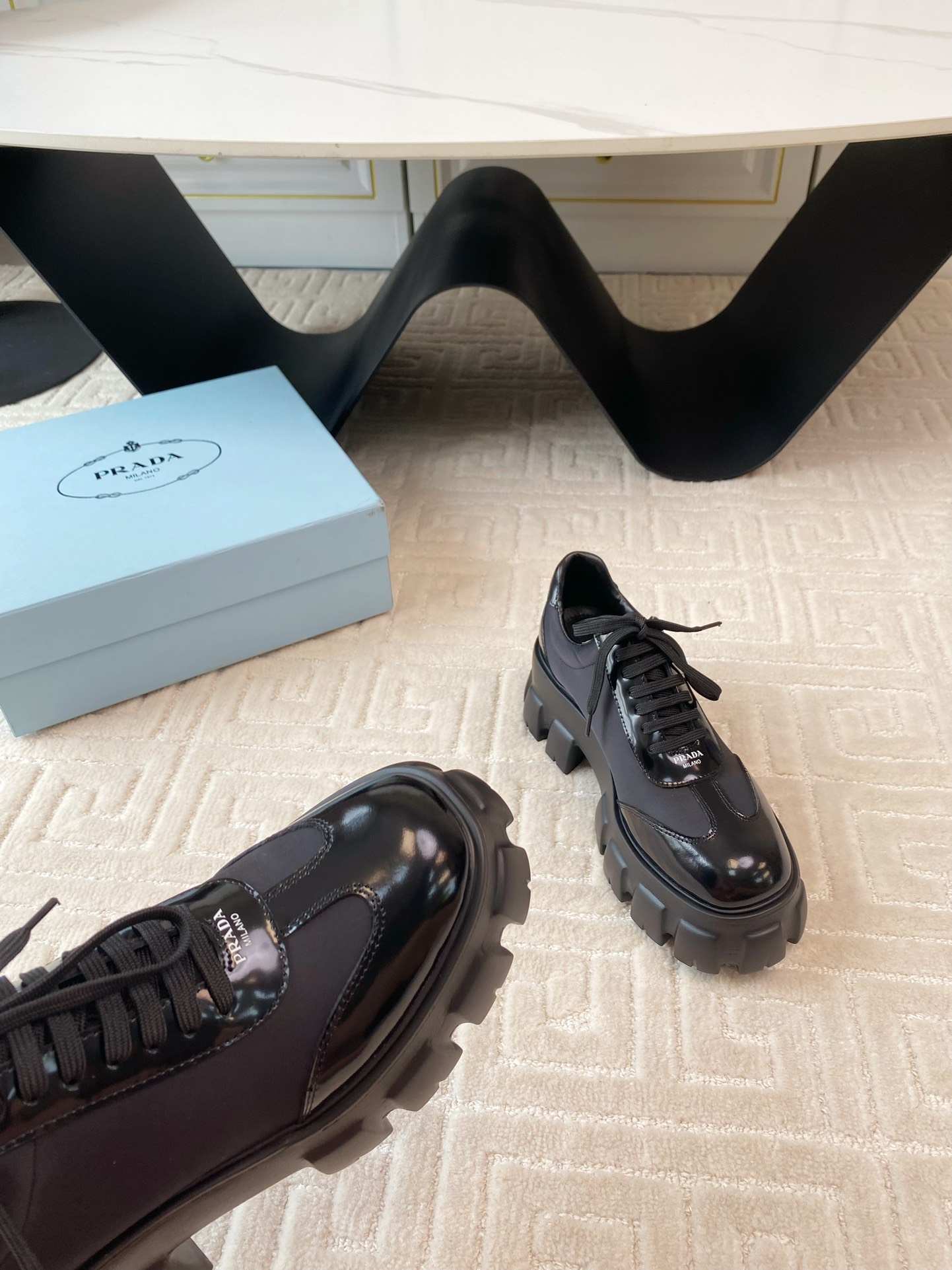 这款鞋子是AAAAA 1:1 质量 (非常棒). 使用了和原版一模一样的材料. 商标部分也保持了和普拉达/Prada一样. 图片拍摄是实物鞋子拍摄, 您所收到的实物保证和我们图片一模一样.