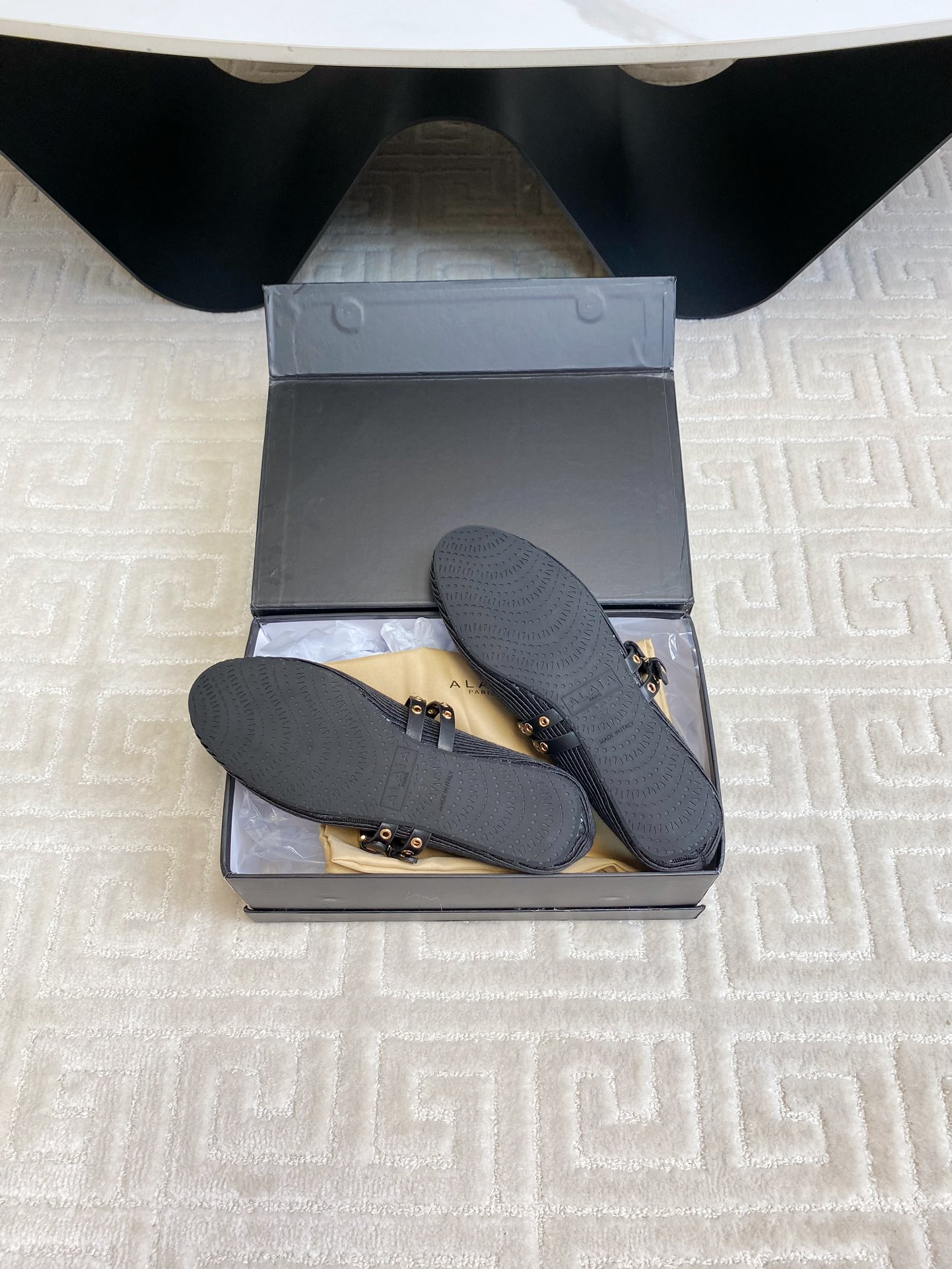 这款鞋子是AAAAA 1:1 质量 (非常棒). 使用了和原版一模一样的材料. 商标部分也保持了和Alaia一样. 图片拍摄是实物鞋子拍摄, 您所收到的实物保证和我们图片一模一样.