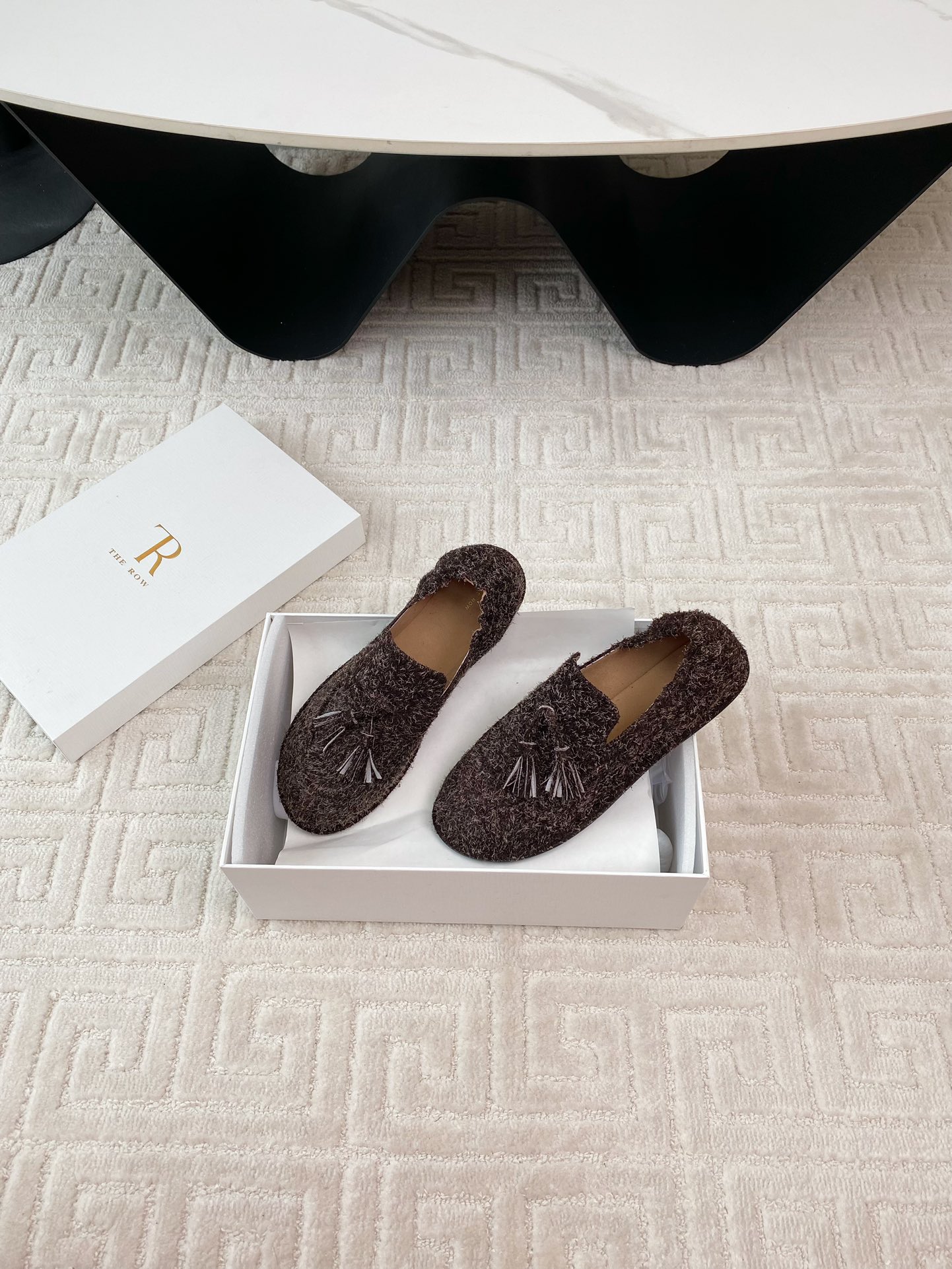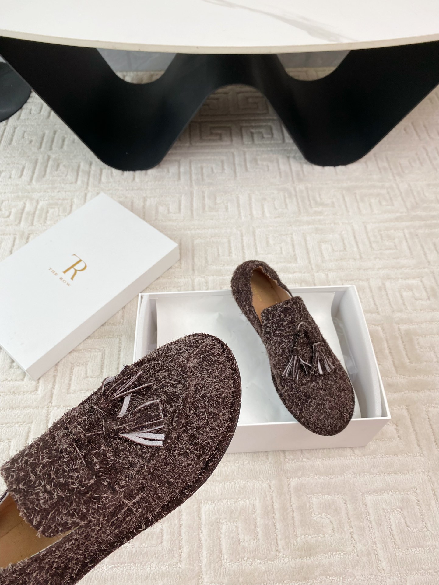这款鞋子是AAAAA 1:1 质量 (非常棒). 使用了和原版一模一样的材料. 商标部分也保持了和The Row一样. 图片拍摄是实物鞋子拍摄, 您所收到的实物保证和我们图片一模一样.