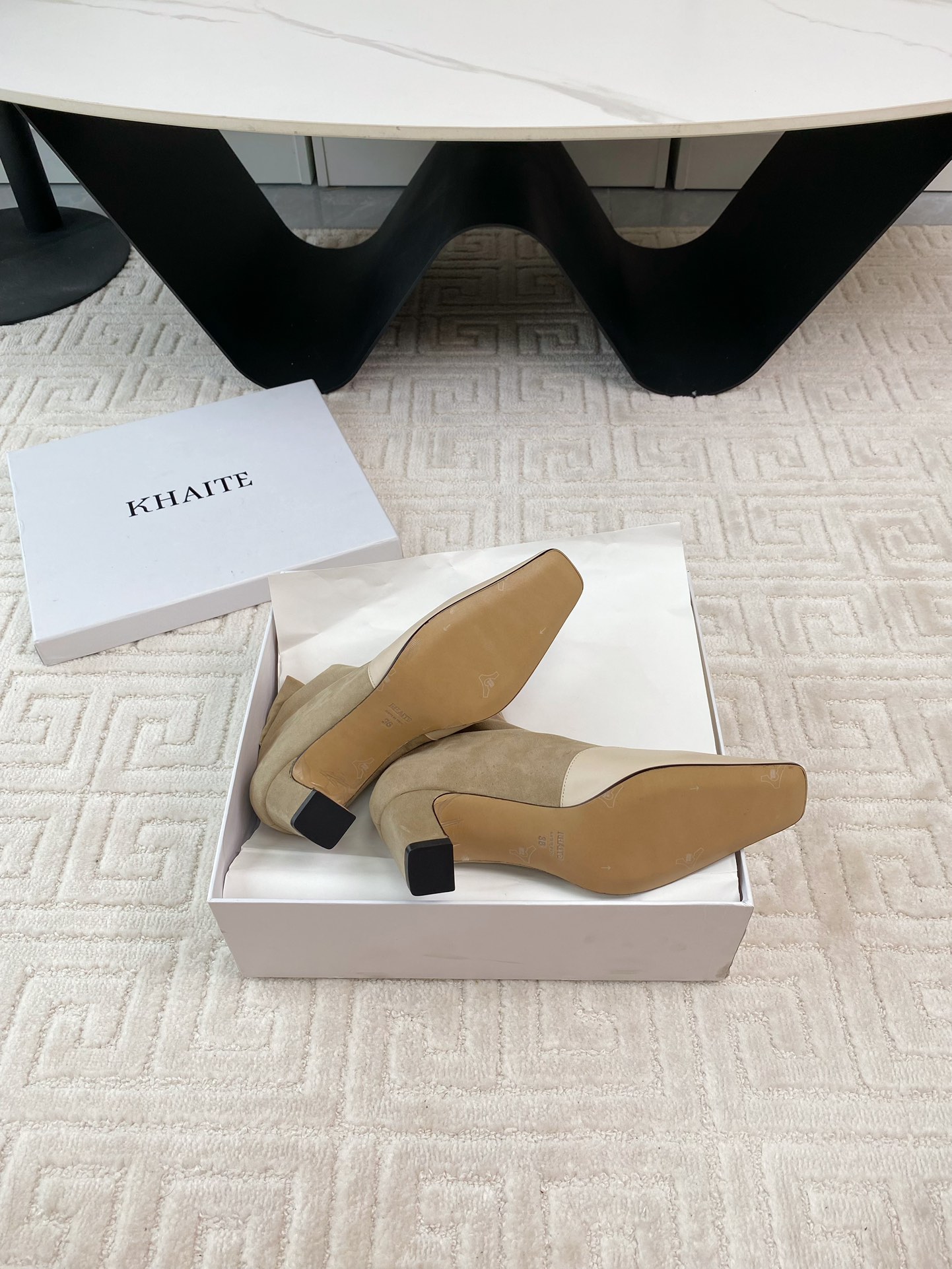 这款鞋子是AAAAA 1:1 质量 (非常棒). 使用了和原版一模一样的材料. 商标部分也保持了和Khaite一样. 图片拍摄是实物鞋子拍摄, 您所收到的实物保证和我们图片一模一样.