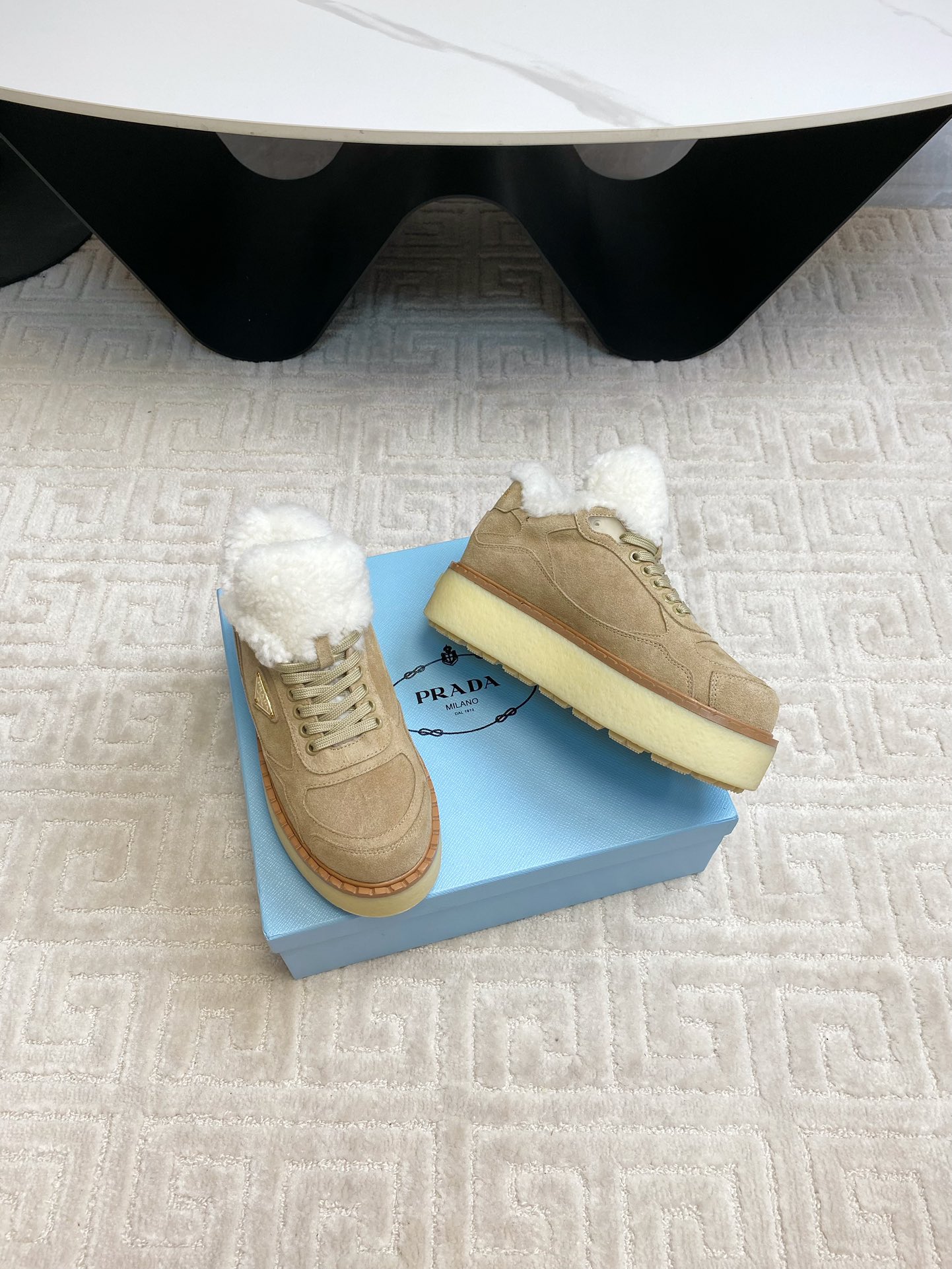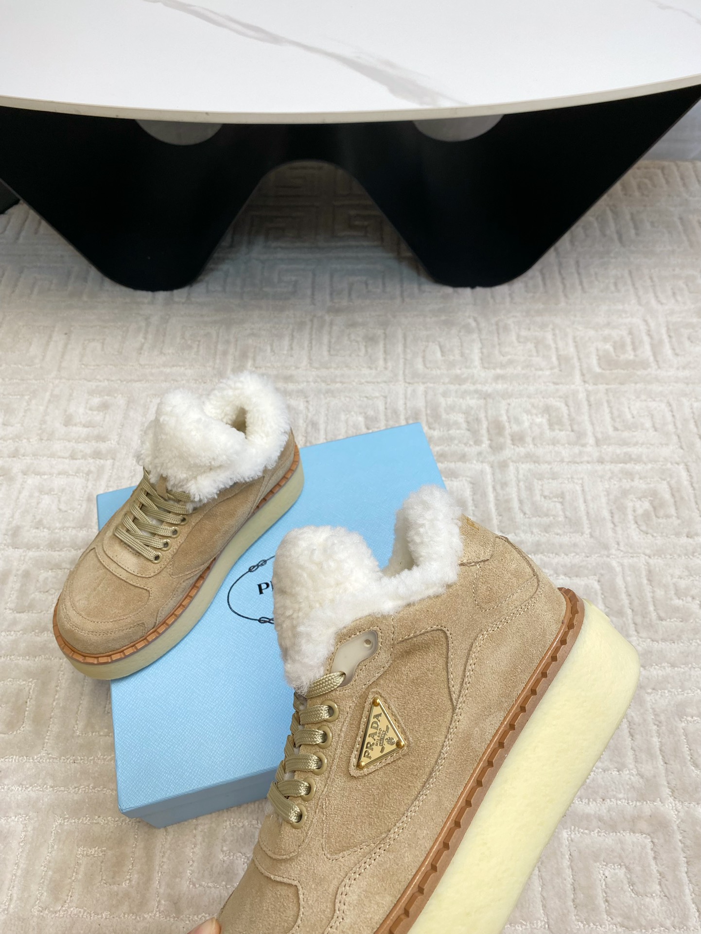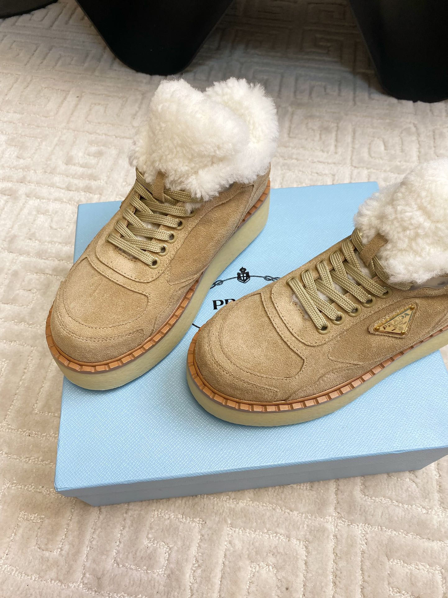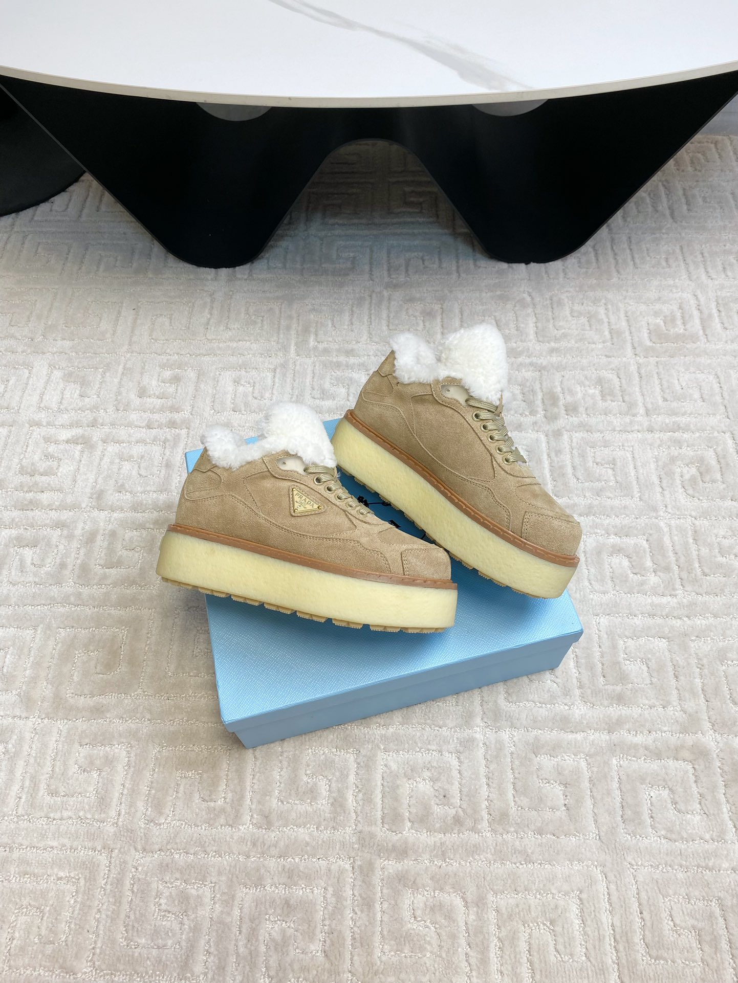 这款鞋子是AAAAA 1:1 质量 (非常棒). 使用了和原版一模一样的材料. 商标部分也保持了和普拉达/Prada一样. 图片拍摄是实物鞋子拍摄, 您所收到的实物保证和我们图片一模一样.