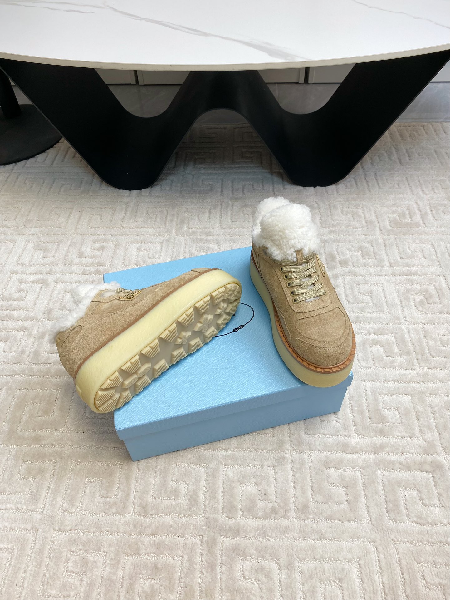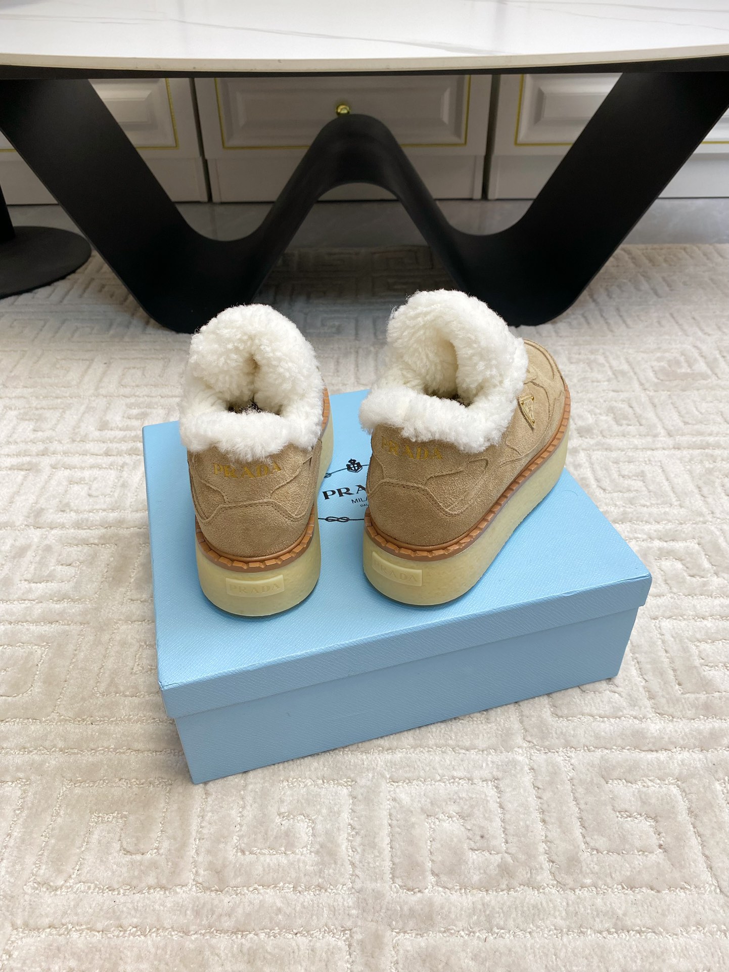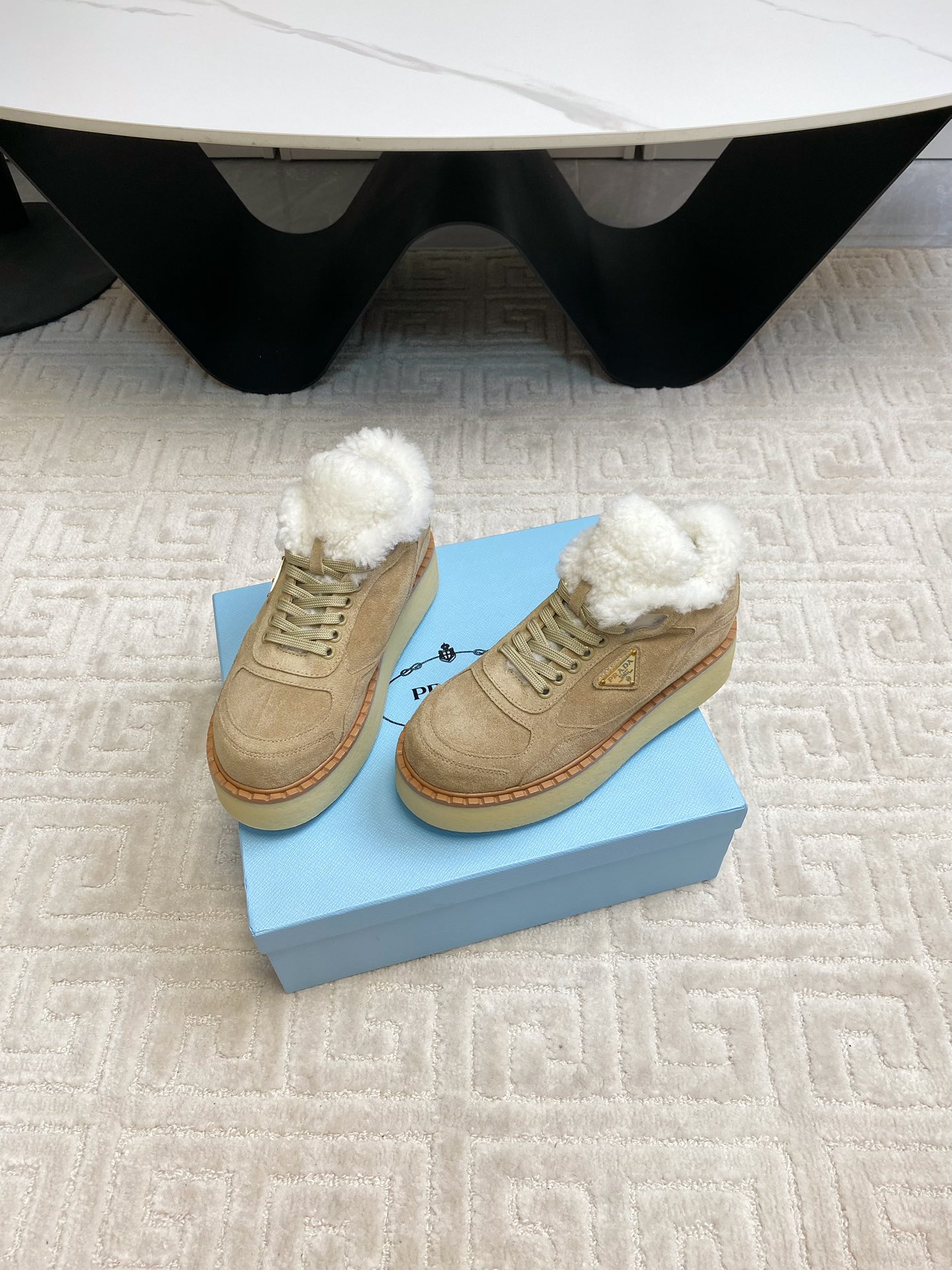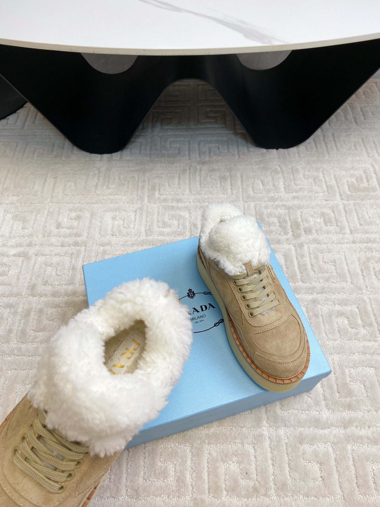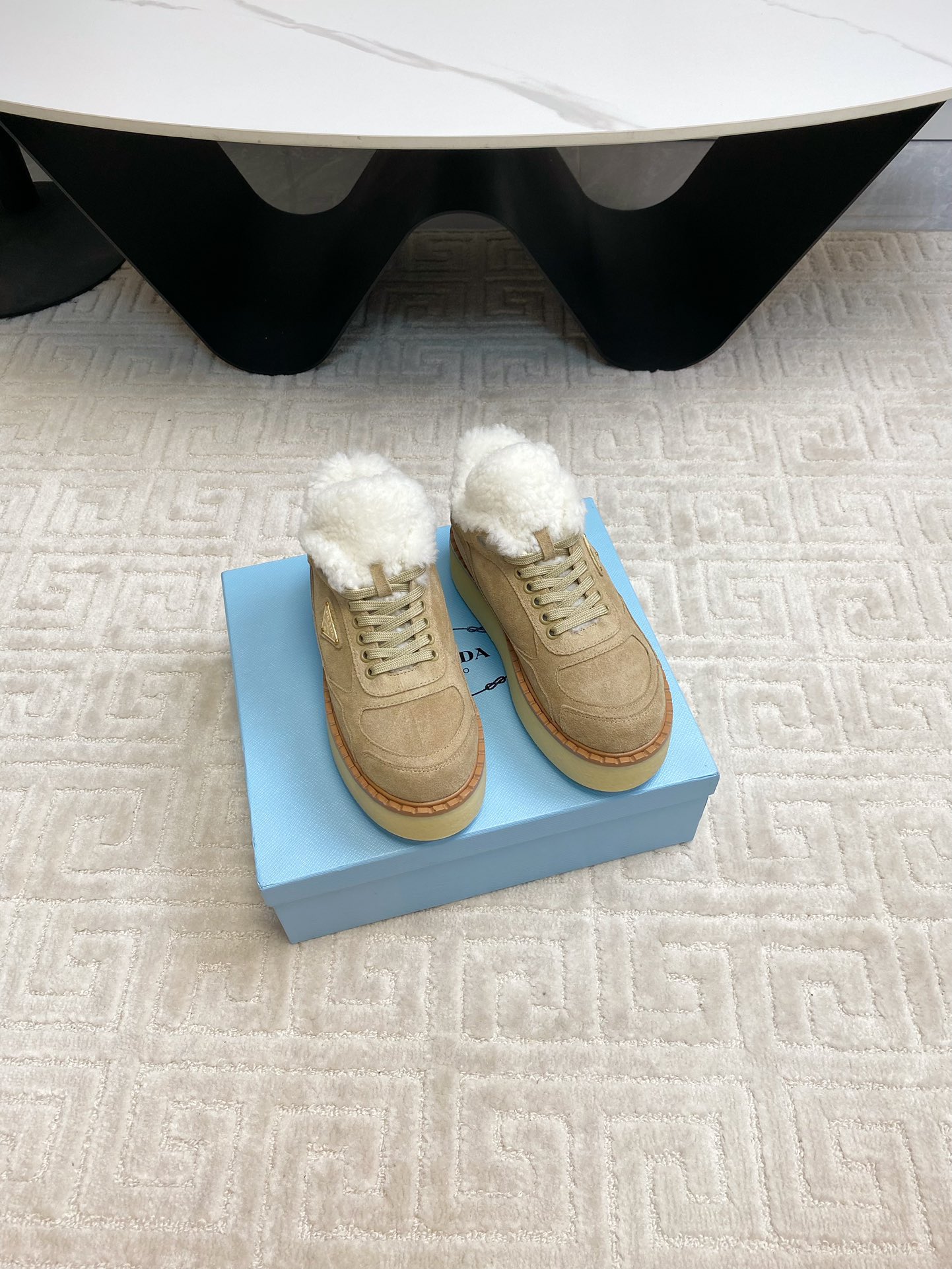 这款鞋子是AAAAA 1:1 质量 (非常棒). 使用了和原版一模一样的材料. 商标部分也保持了和普拉达/Prada一样. 图片拍摄是实物鞋子拍摄, 您所收到的实物保证和我们图片一模一样.