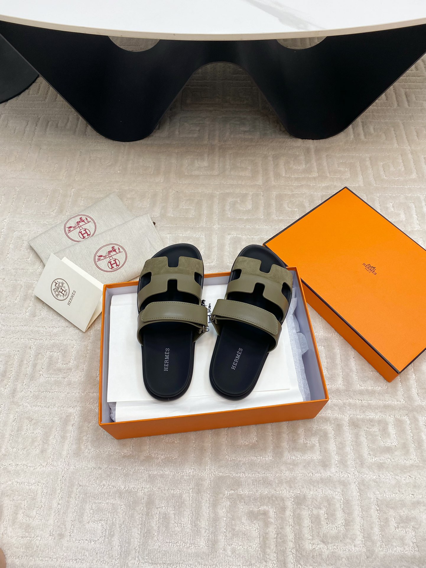 这款鞋子是AAAAA 1:1 质量 (非常棒). 使用了和原版一模一样的材料. 商标部分也保持了和爱马仕/Hermes一样. 图片拍摄是实物鞋子拍摄, 您所收到的实物保证和我们图片一模一样.