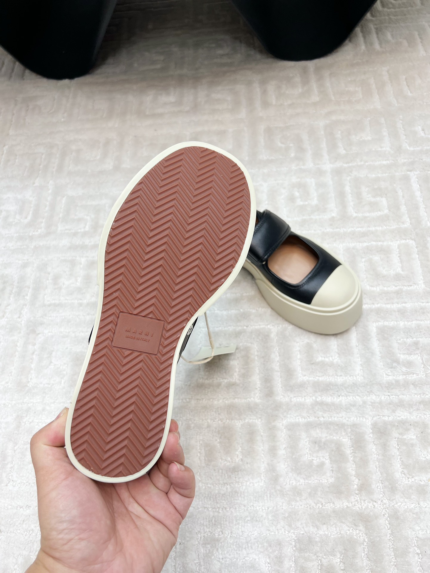 这款鞋子是AAAAA 1:1 质量 (非常棒). 使用了和原版一模一样的材料. 商标部分也保持了和马尔尼/Marni一样. 图片拍摄是实物鞋子拍摄, 您所收到的实物保证和我们图片一模一样.