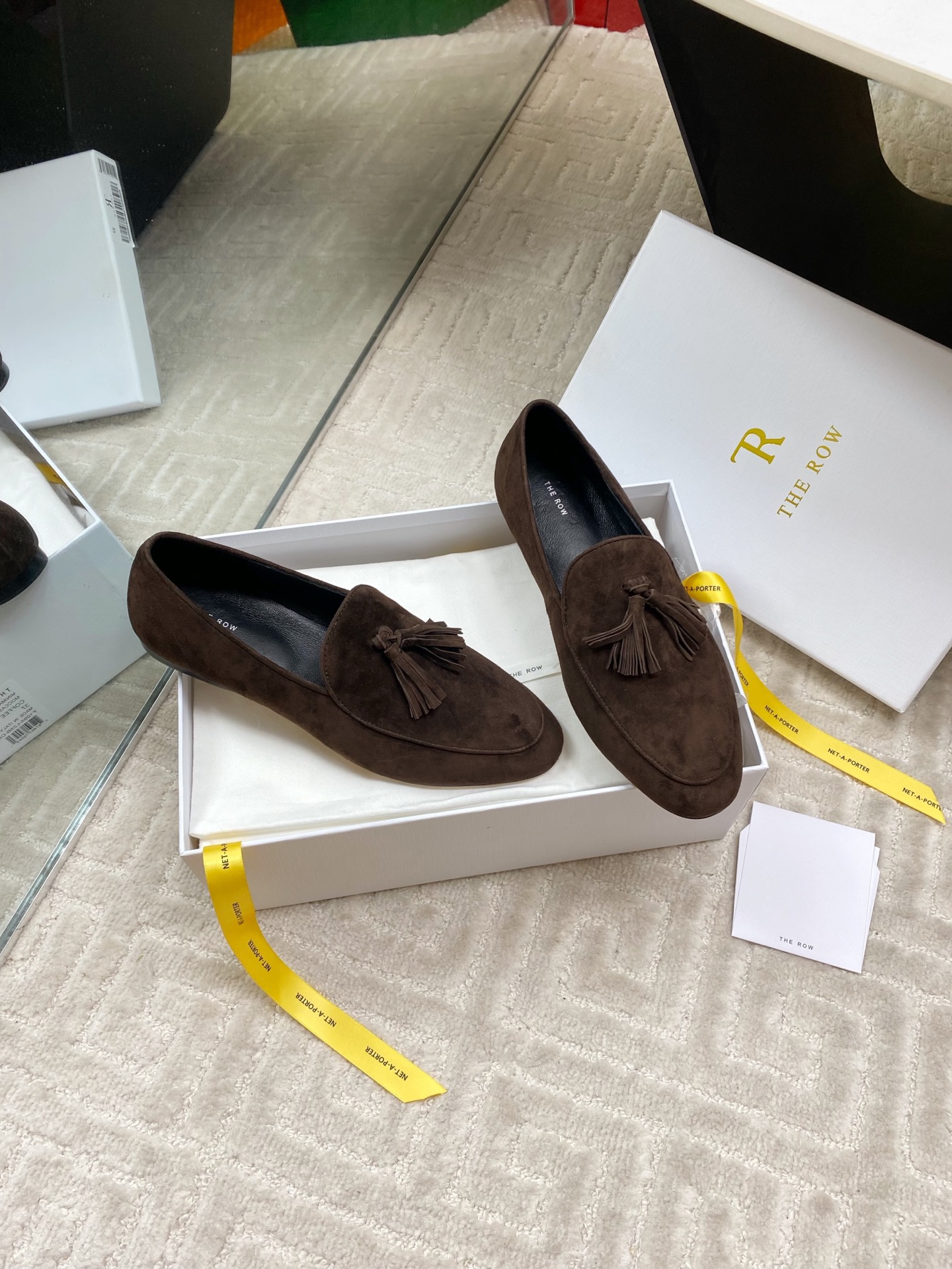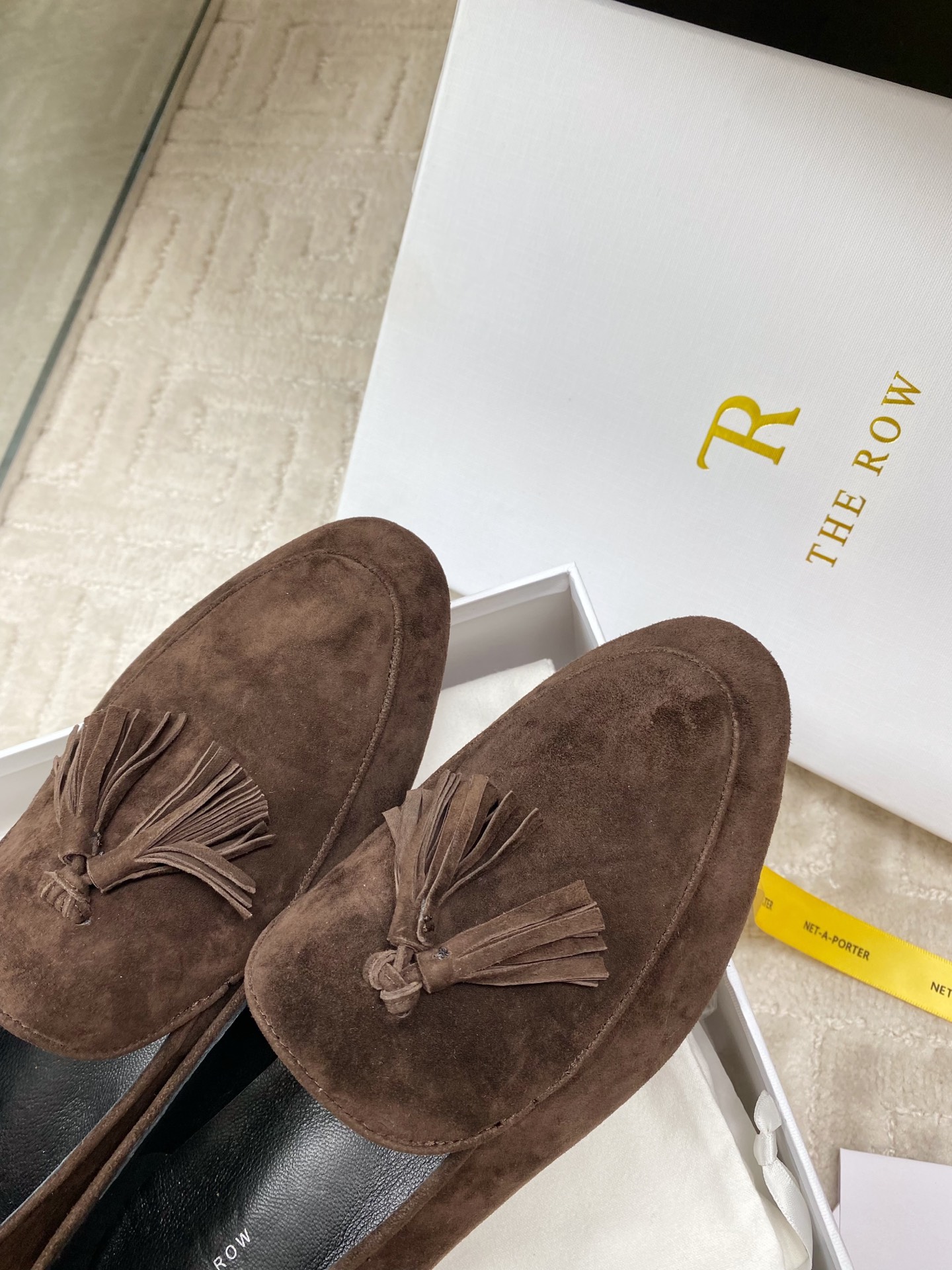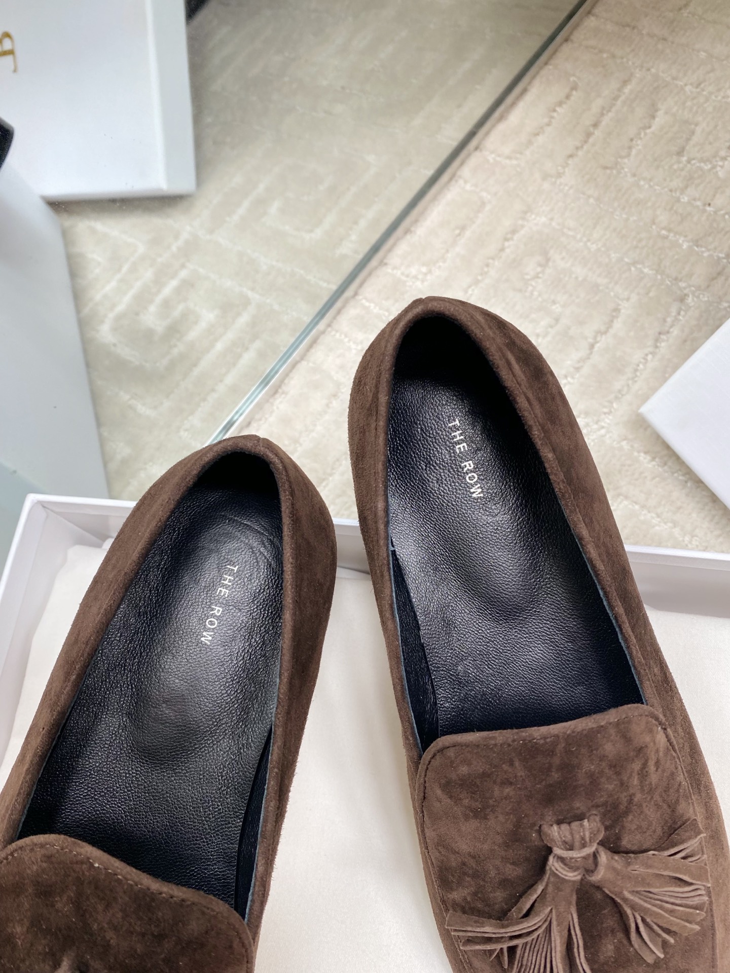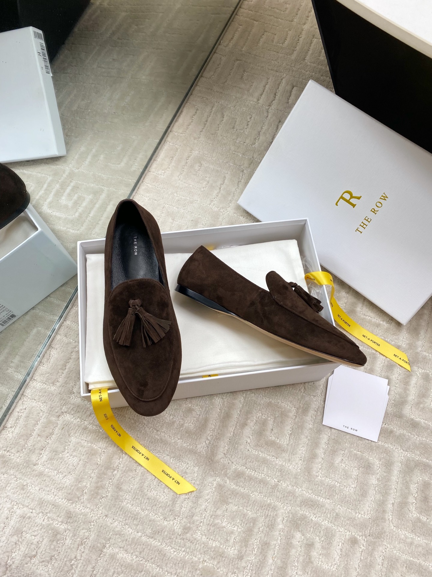 这款鞋子是AAAAA 1:1 质量 (非常棒). 使用了和原版一模一样的材料. 商标部分也保持了和The Row一样. 图片拍摄是实物鞋子拍摄, 您所收到的实物保证和我们图片一模一样.