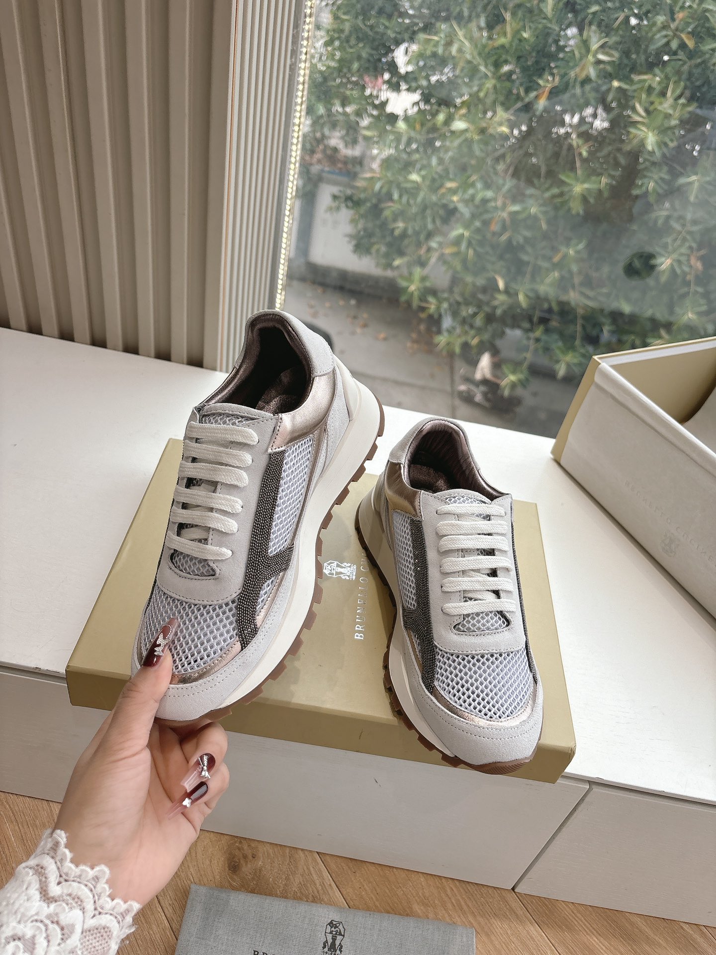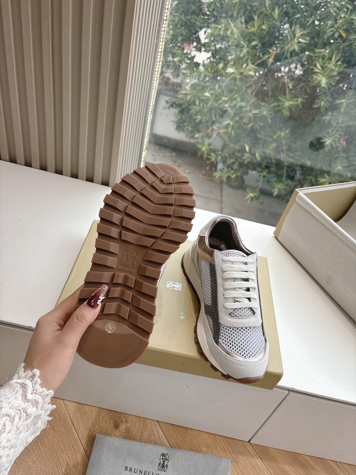 这款鞋子是AAAAA 1:1 质量 (非常棒). 使用了和原版一模一样的材料. 商标部分也保持了和Brunello Cucinelli一样. 图片拍摄是实物鞋子拍摄, 您所收到的实物保证和我们图片一模一样.