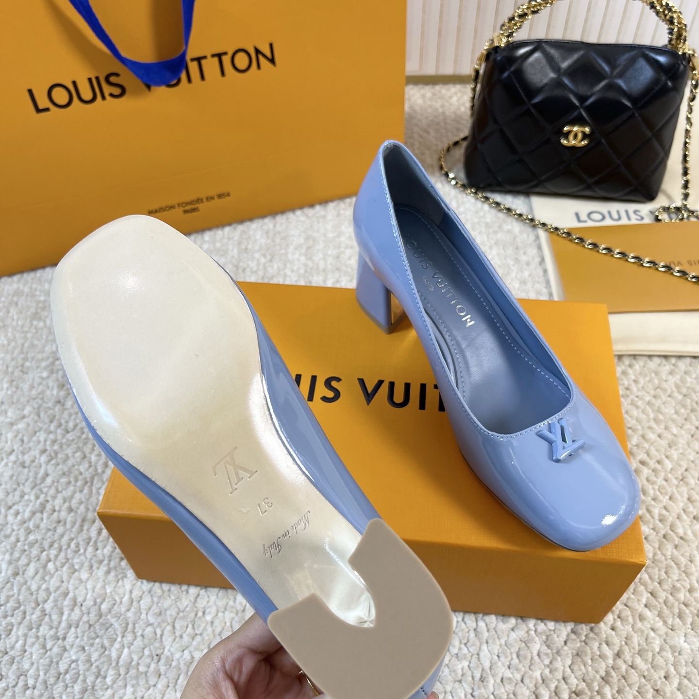这款鞋子是AAAAA 1:1 质量 (非常棒). 使用了和原版一模一样的材料. 商标部分也保持了和路易威登/Louis Vuitton一样. 图片拍摄是实物鞋子拍摄, 您所收到的实物保证和我们图片一模一样.