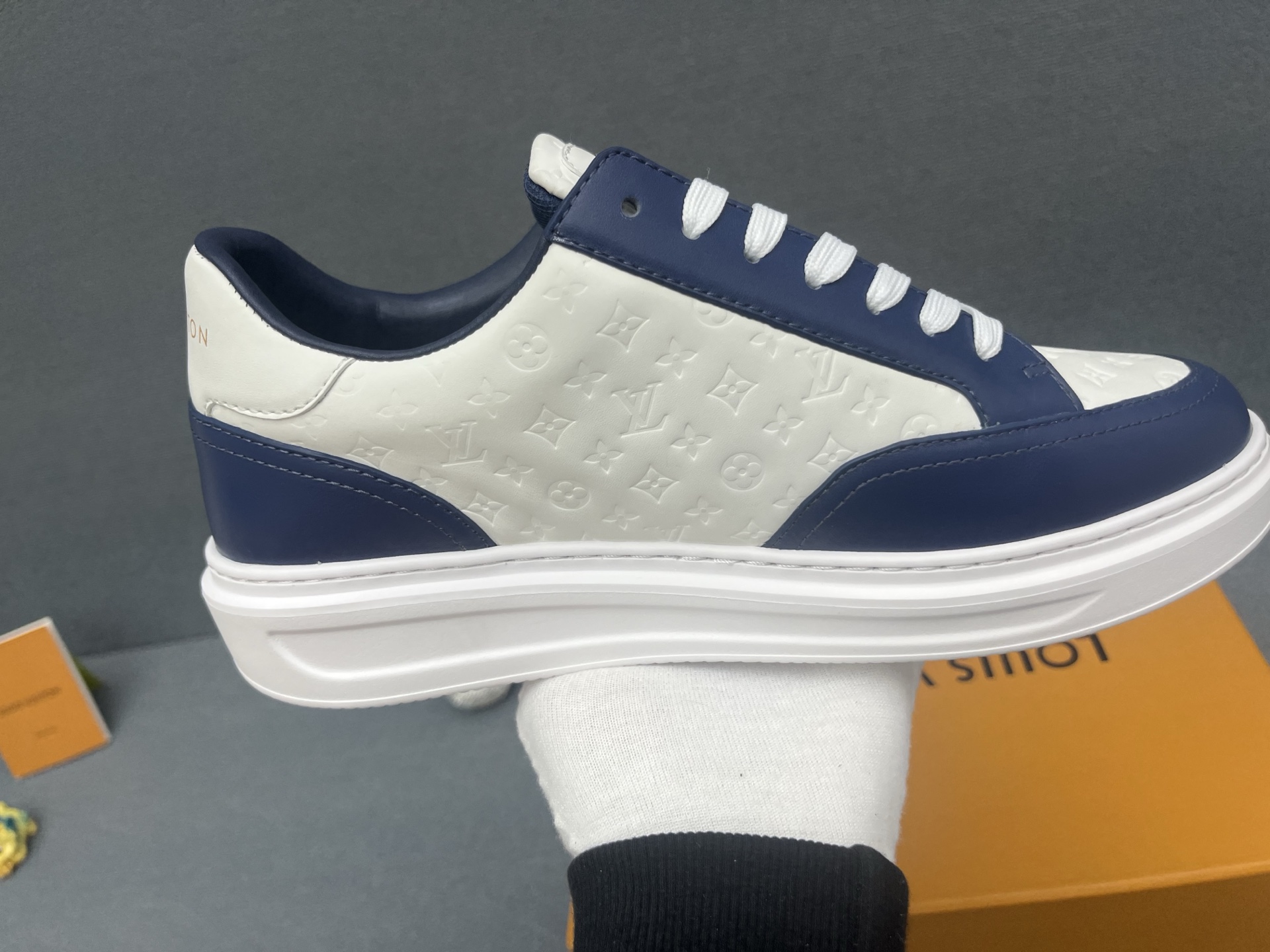 这款鞋子是AAAAA 1:1 质量 (非常棒). 使用了和原版一模一样的材料. 商标部分也保持了和路易威登/Louis Vuitton一样. 图片拍摄是实物鞋子拍摄, 您所收到的实物保证和我们图片一模一样.