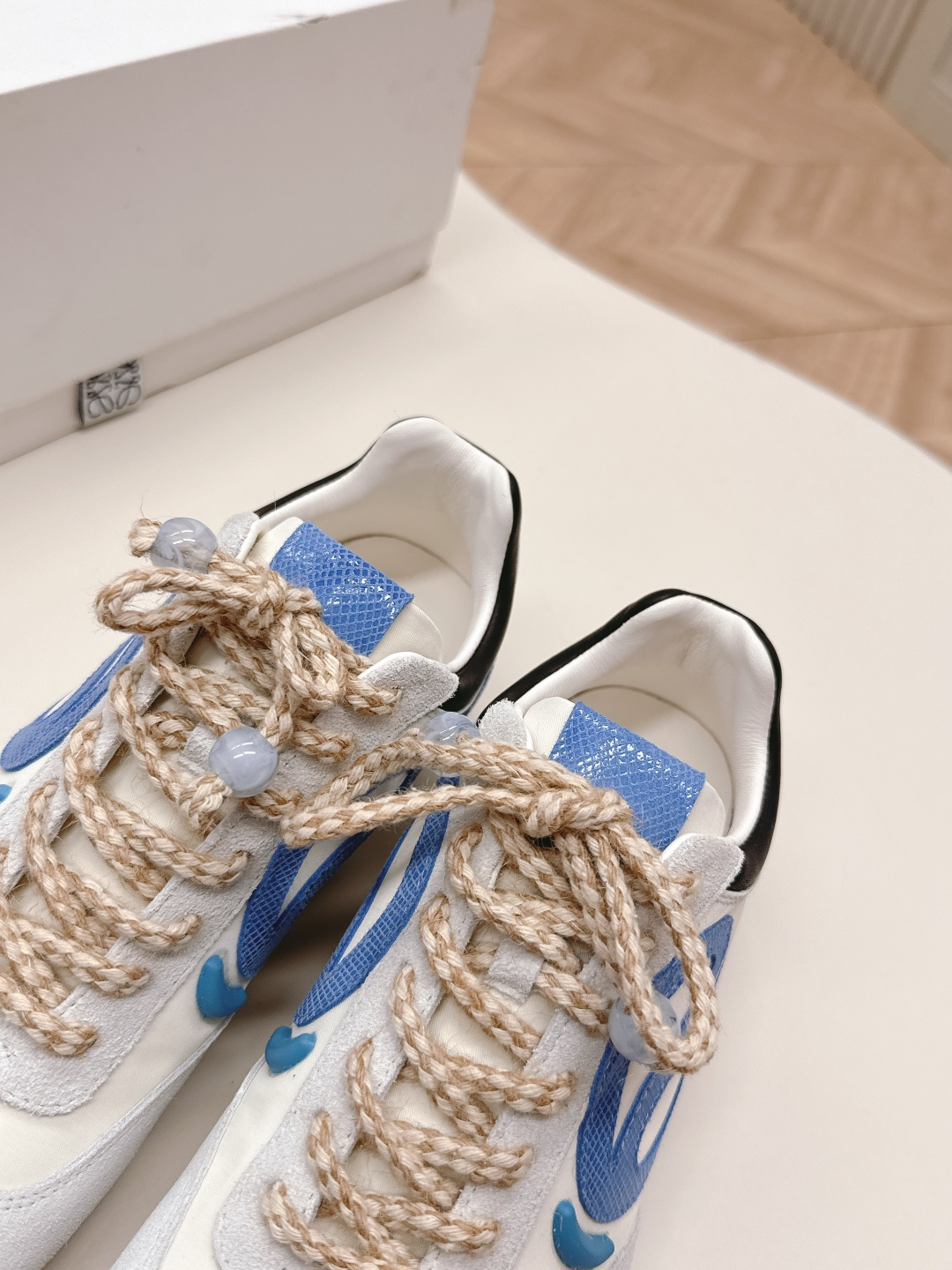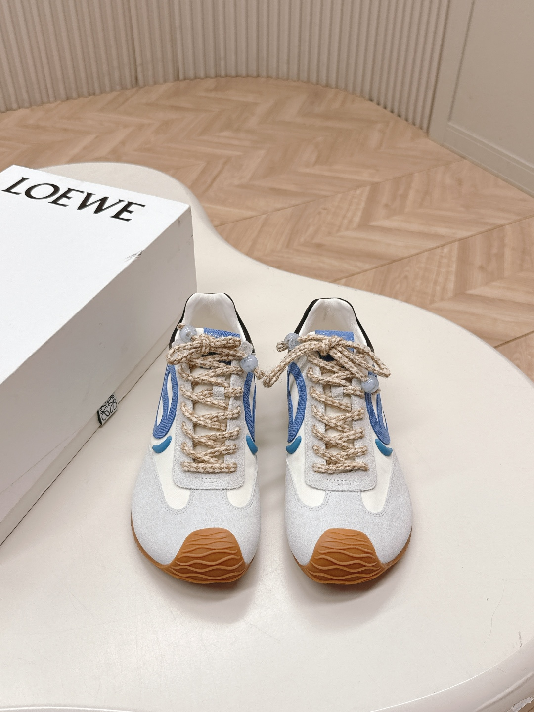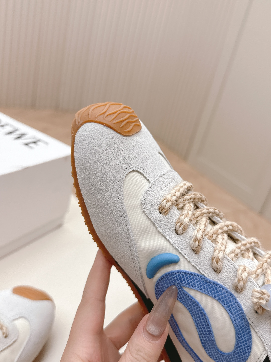 这款鞋子是AAAAA 1:1 质量 (非常棒). 使用了和原版一模一样的材料. 商标部分也保持了和罗意威/Loewe一样. 图片拍摄是实物鞋子拍摄, 您所收到的实物保证和我们图片一模一样.