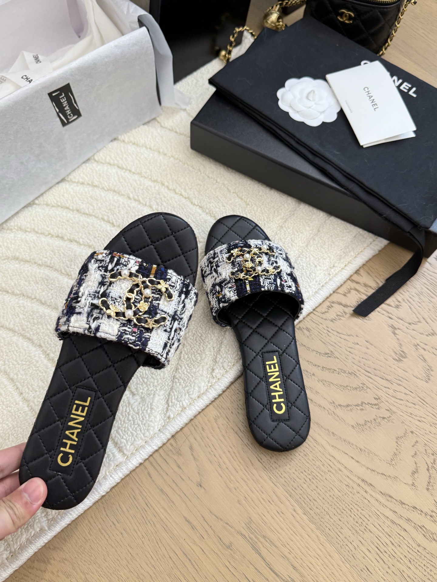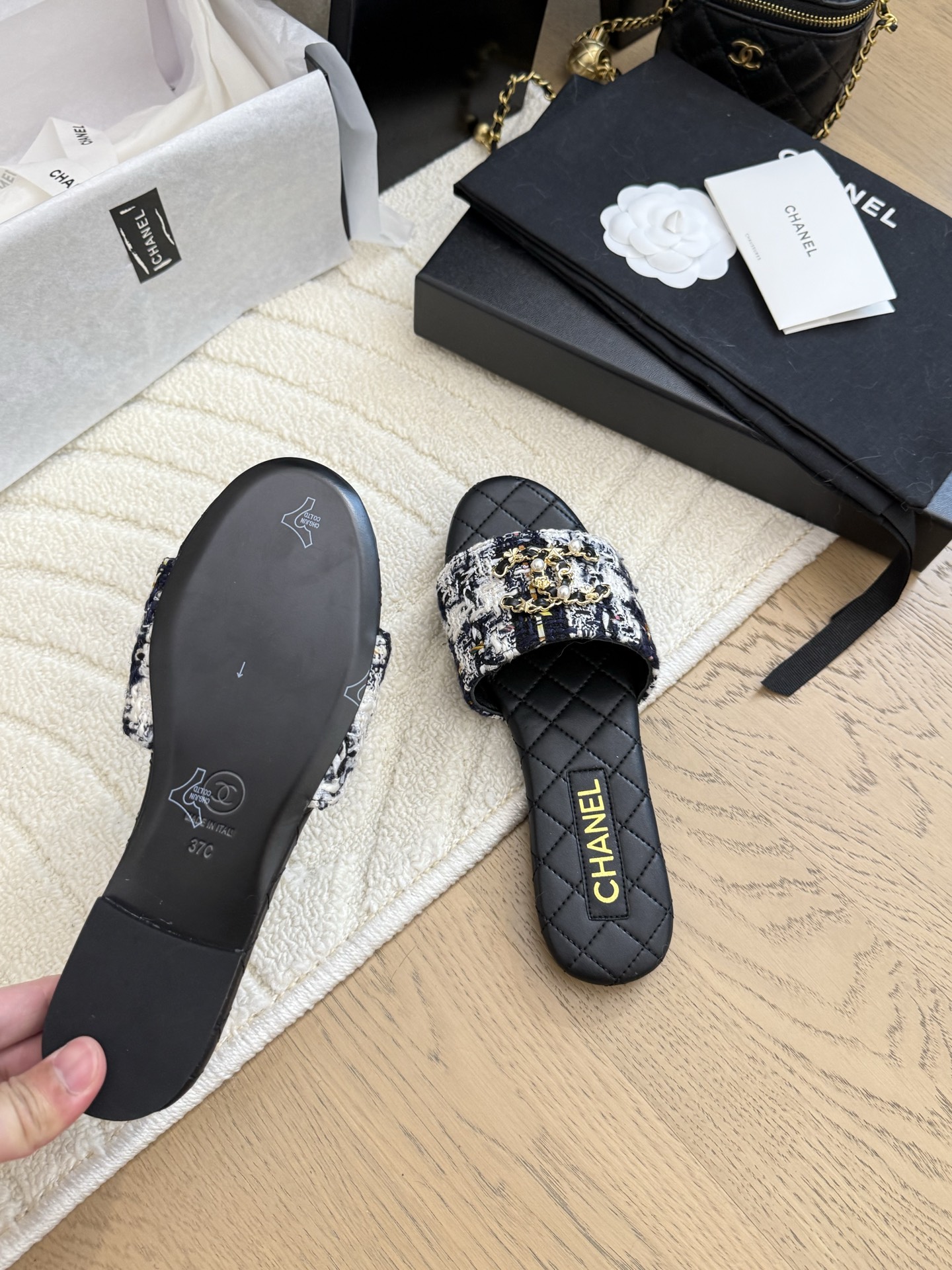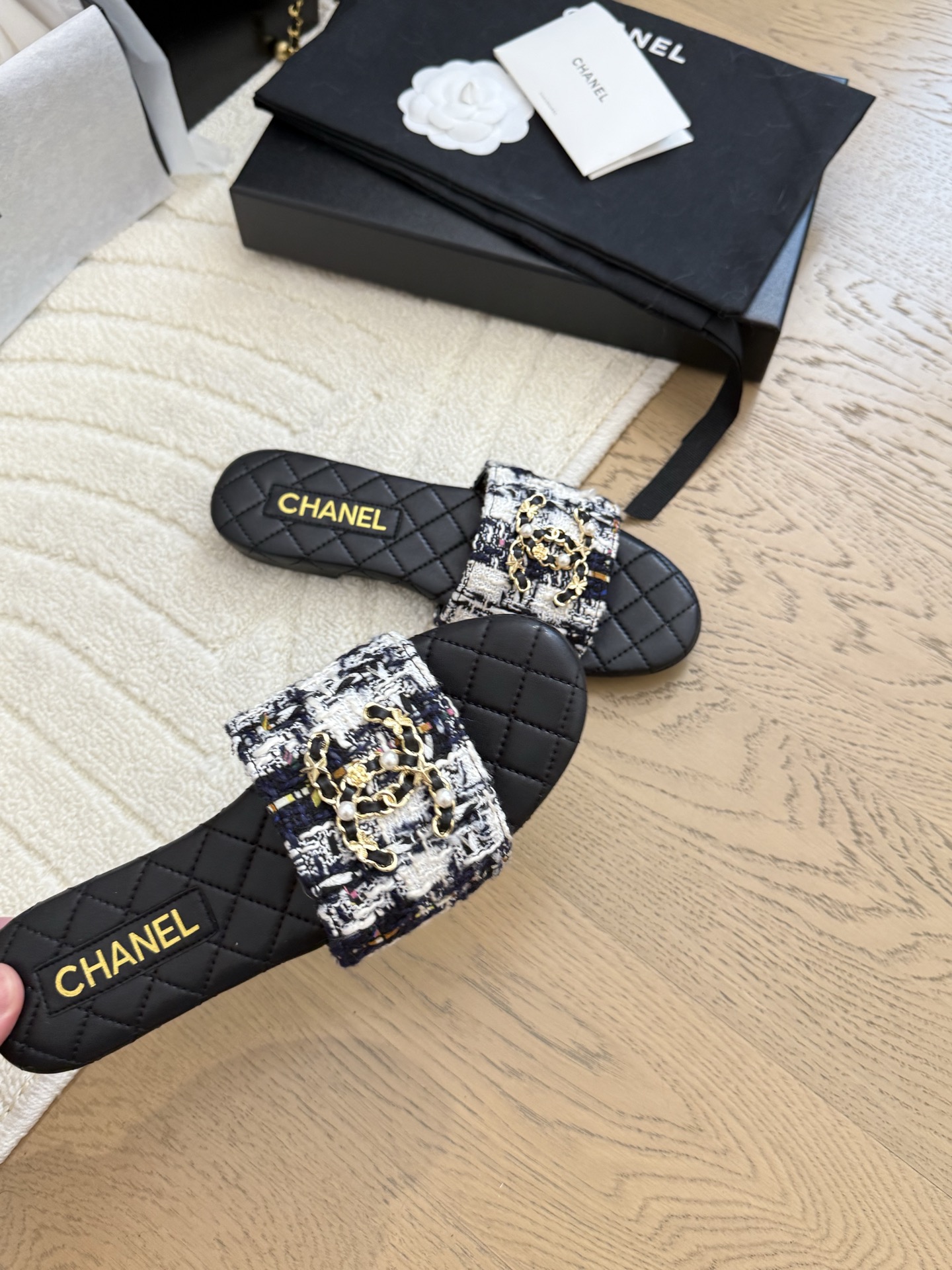 这款鞋子是AAAAA 1:1 质量 (非常棒). 使用了和原版一模一样的材料. 商标部分也保持了和香奈儿/Chanel一样. 图片拍摄是实物鞋子拍摄, 您所收到的实物保证和我们图片一模一样.