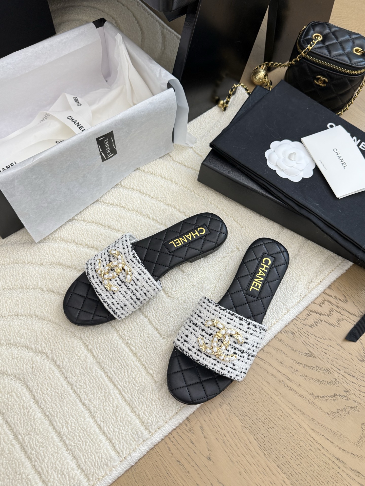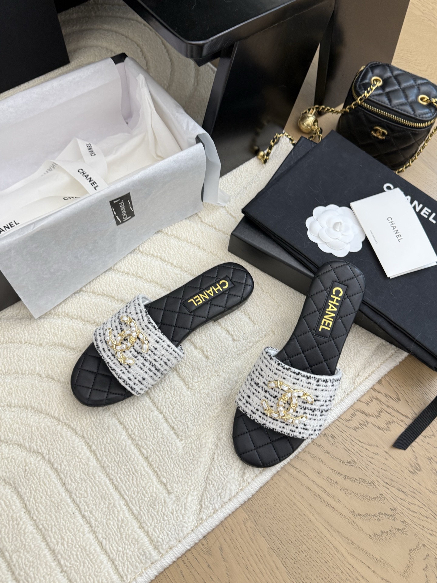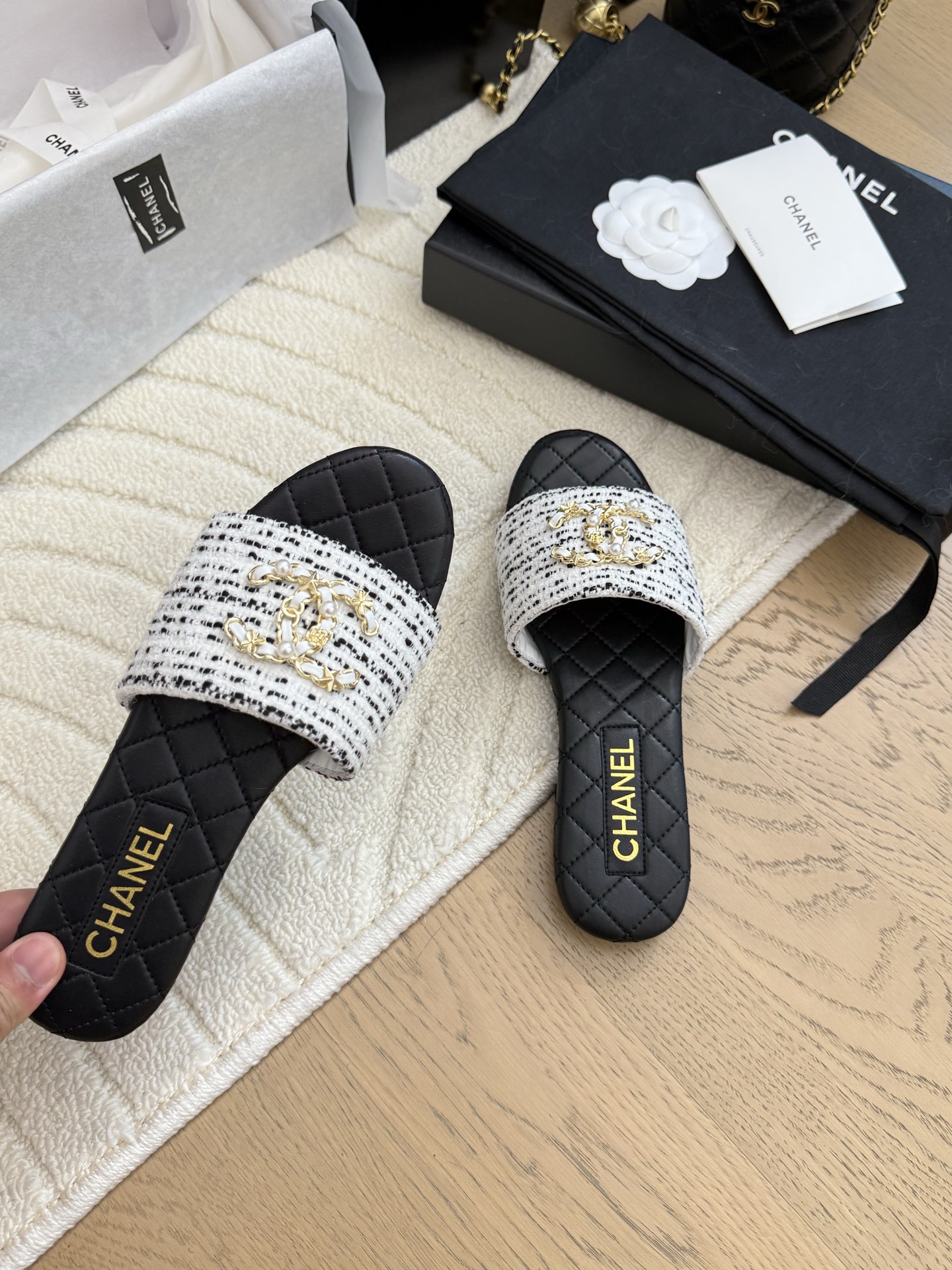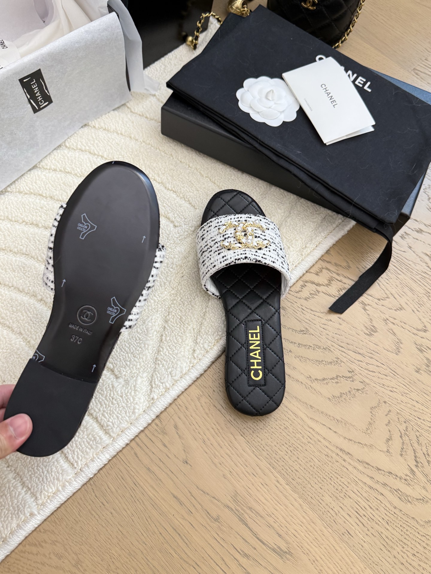 这款鞋子是AAAAA 1:1 质量 (非常棒). 使用了和原版一模一样的材料. 商标部分也保持了和香奈儿/Chanel一样. 图片拍摄是实物鞋子拍摄, 您所收到的实物保证和我们图片一模一样.