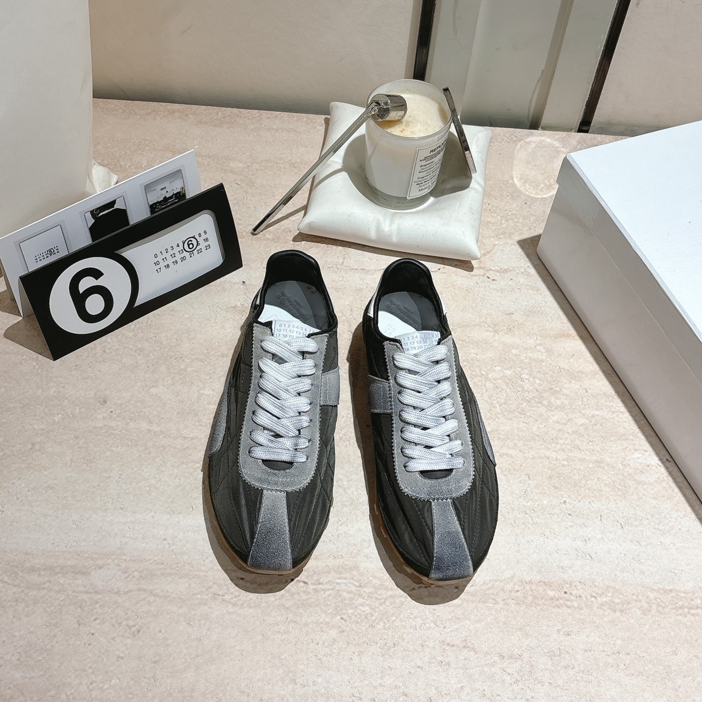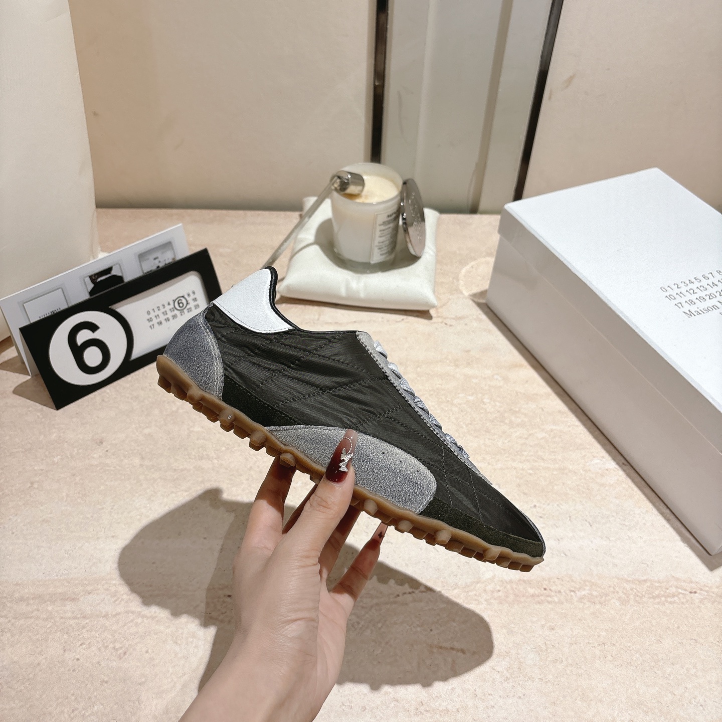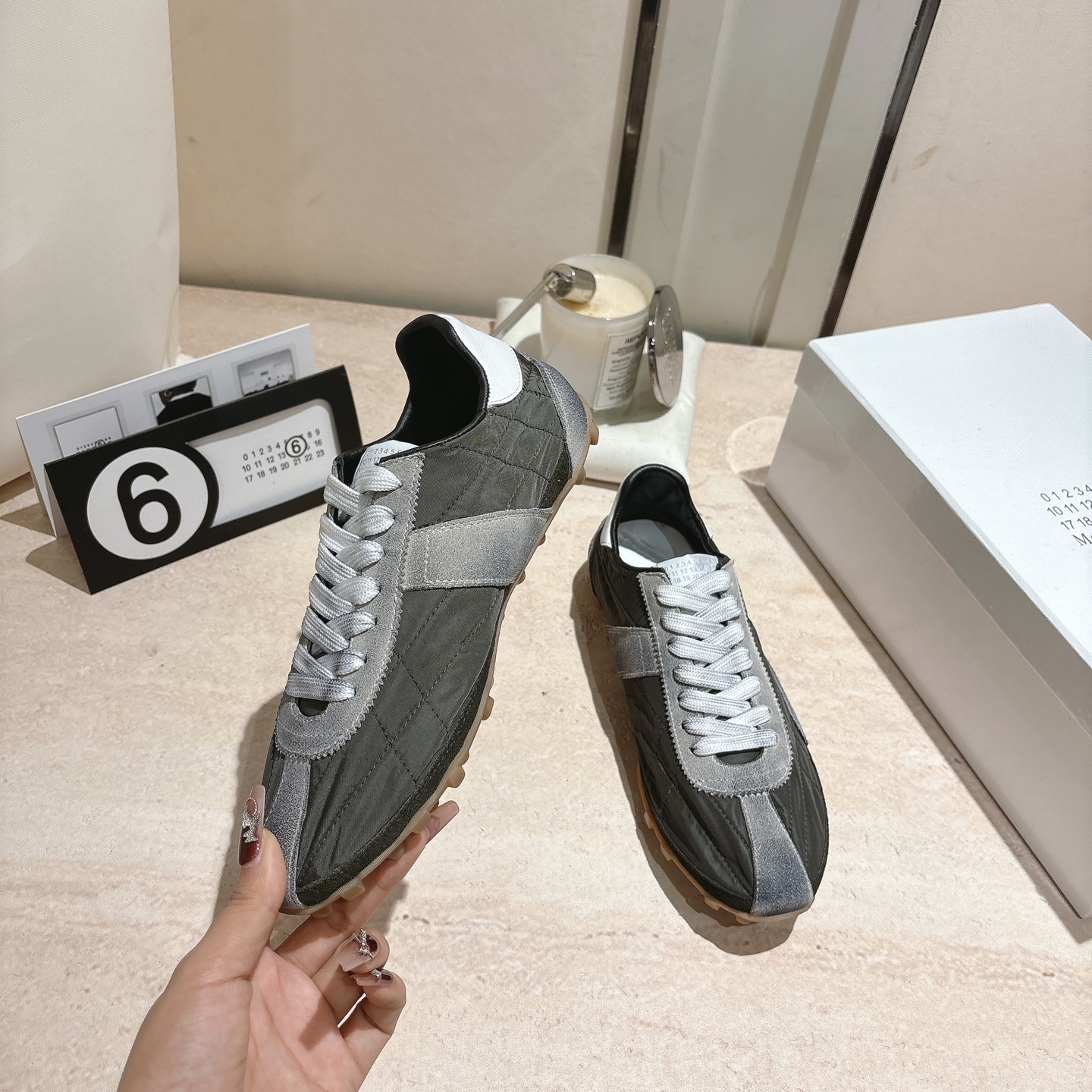 这款鞋子是AAAAA 1:1 质量 (非常棒). 使用了和原版一模一样的材料. 商标部分也保持了和Maison Margiela一样. 图片拍摄是实物鞋子拍摄, 您所收到的实物保证和我们图片一模一样.