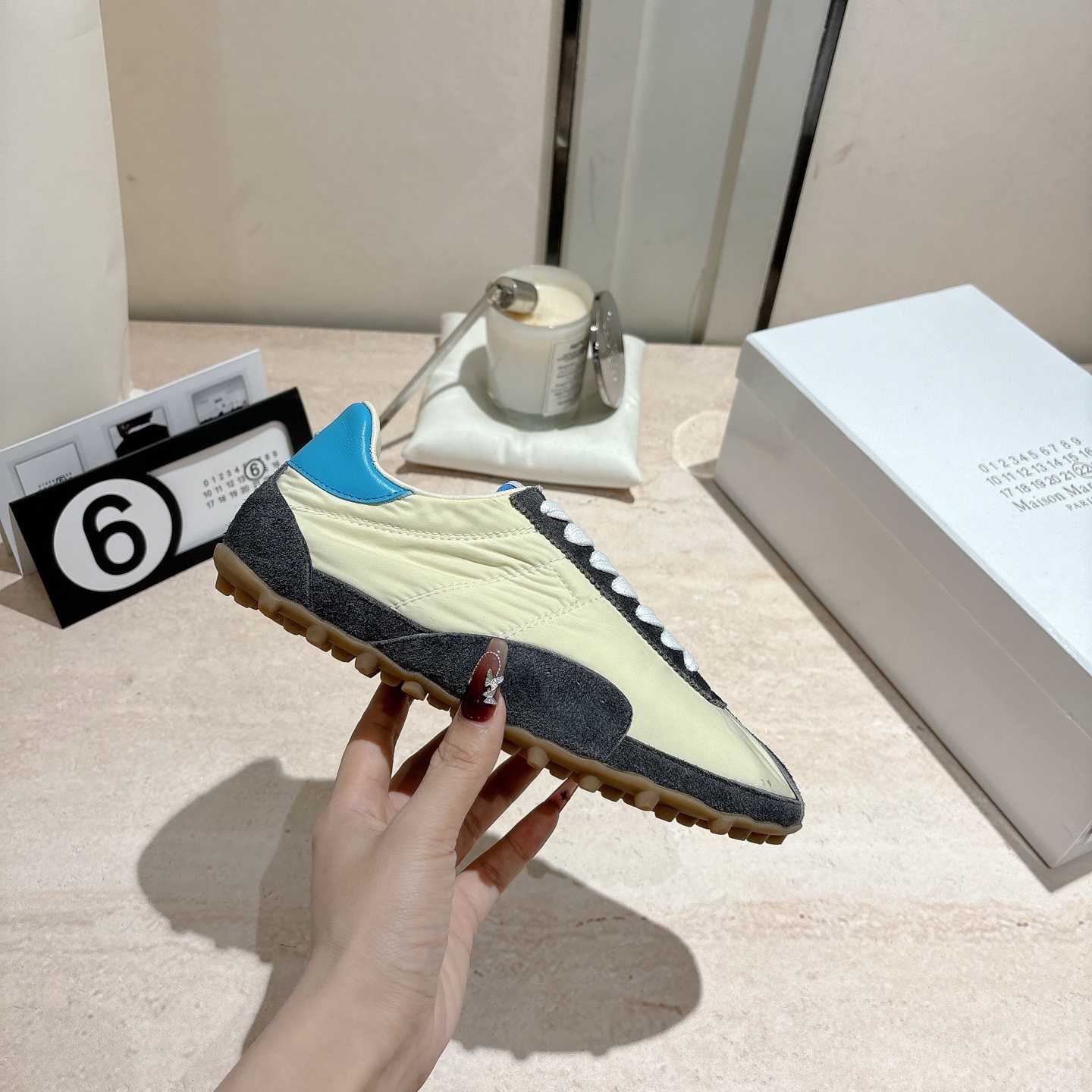 这款鞋子是AAAAA 1:1 质量 (非常棒). 使用了和原版一模一样的材料. 商标部分也保持了和Maison Margiela一样. 图片拍摄是实物鞋子拍摄, 您所收到的实物保证和我们图片一模一样.