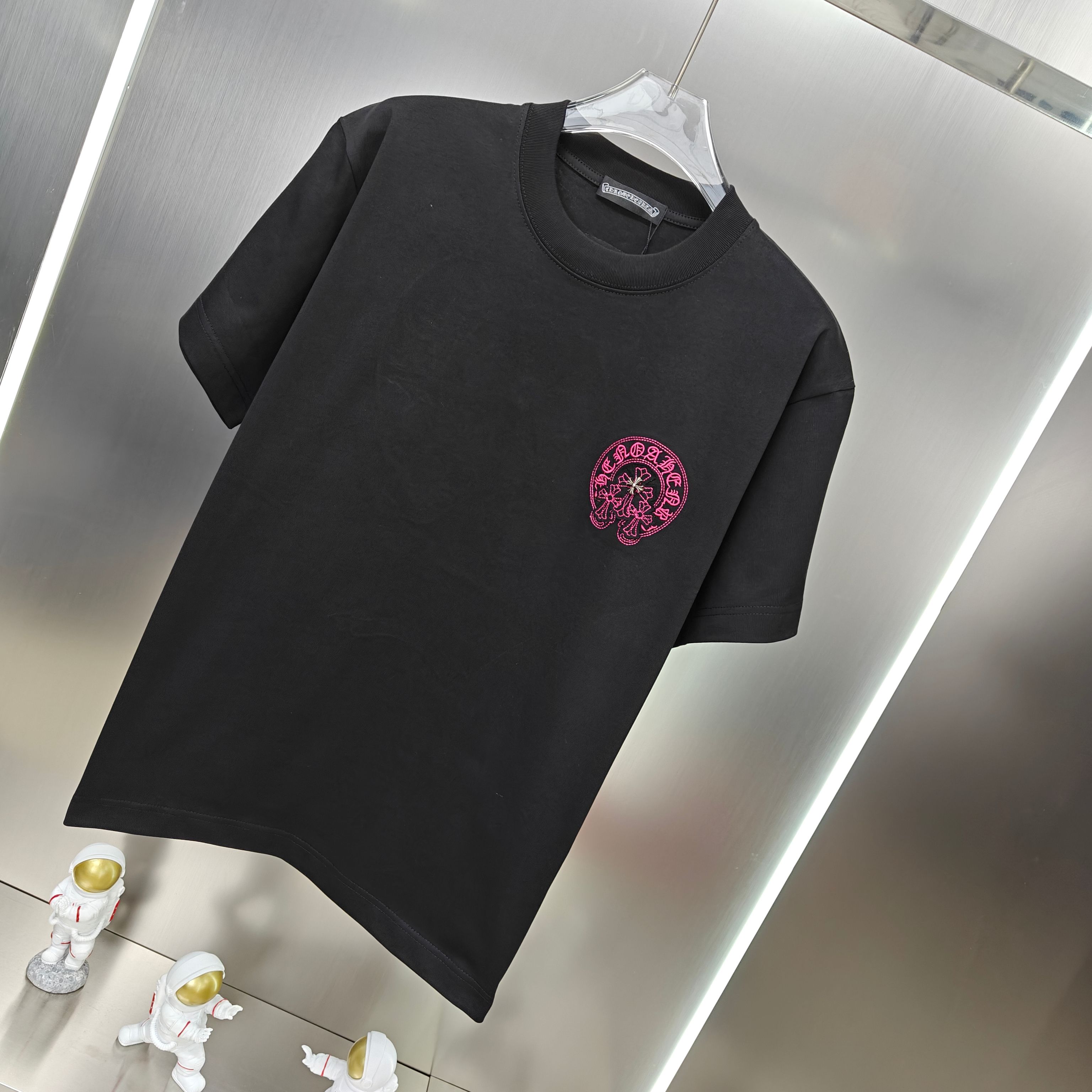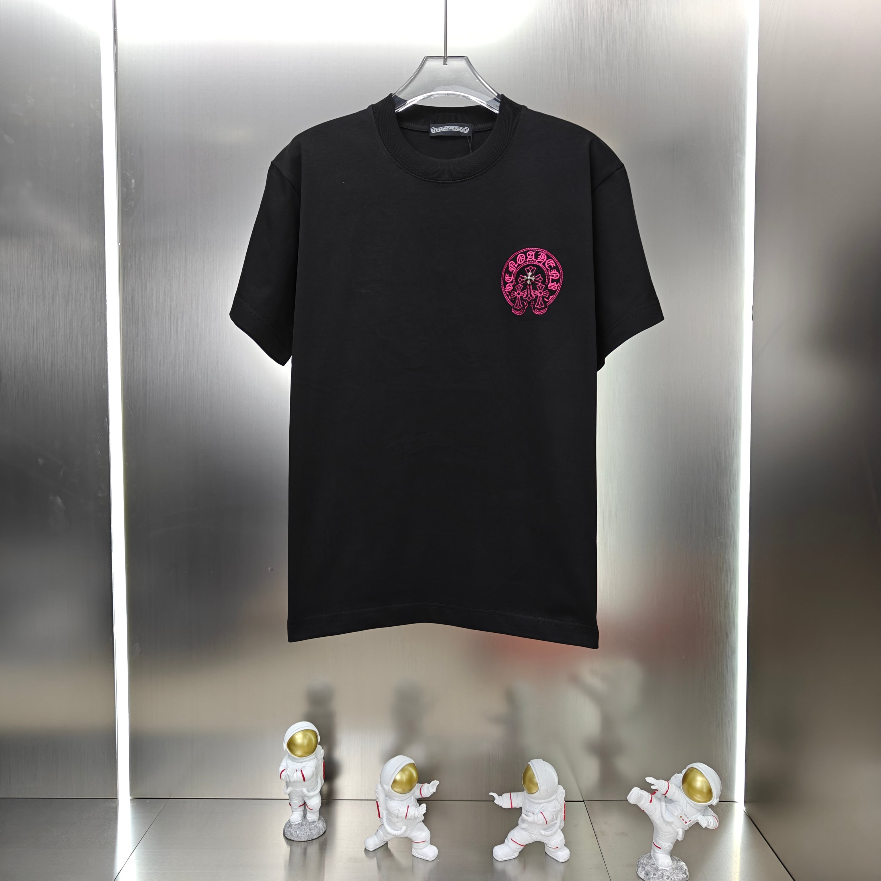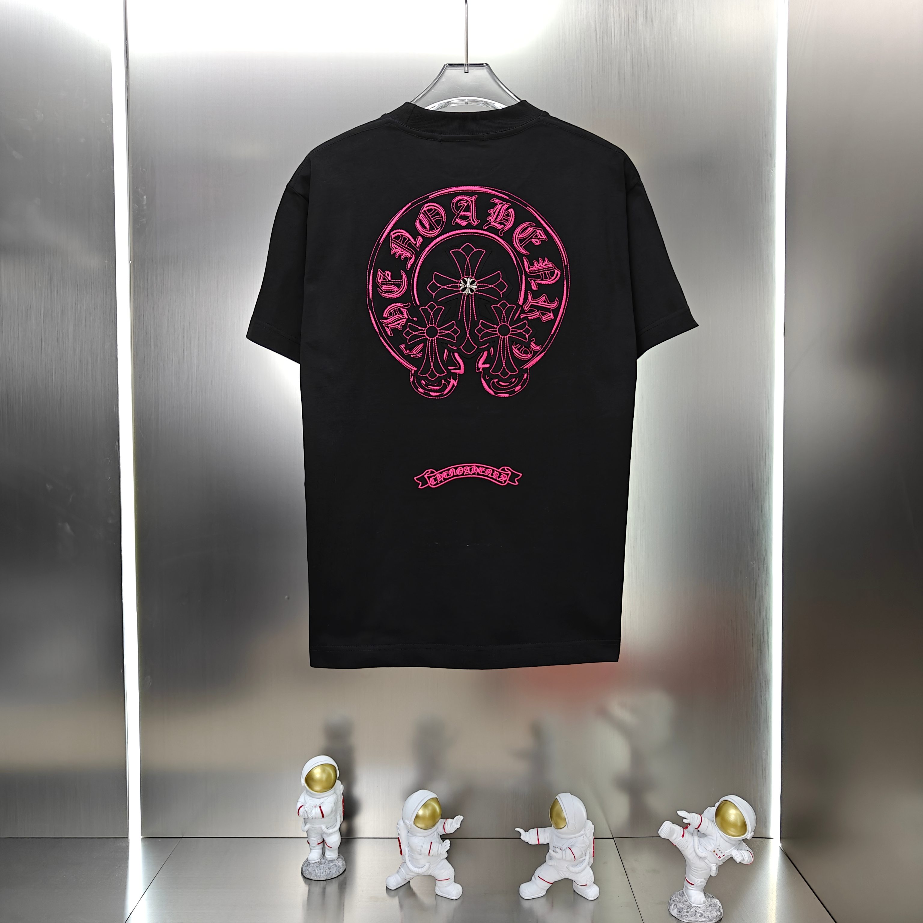 这款衣服是AAAAA 1:1 质量 (非常棒). 使用了和原版一模一样的材料. 商标部分也保持了和克罗心/Chrome Hearts一样. 图片拍摄是实物衣服拍摄, 您所收到的实物保证和我们图片一模一样.