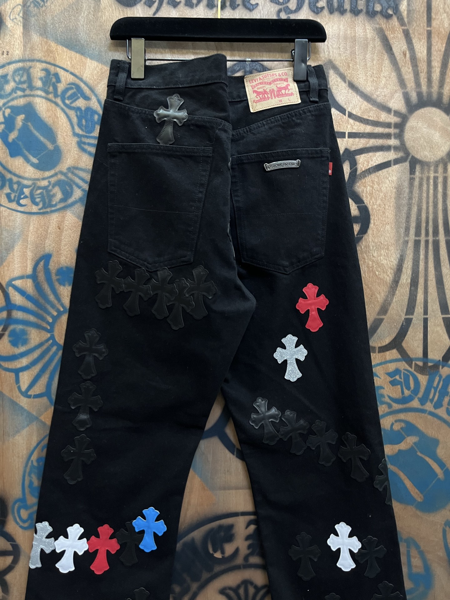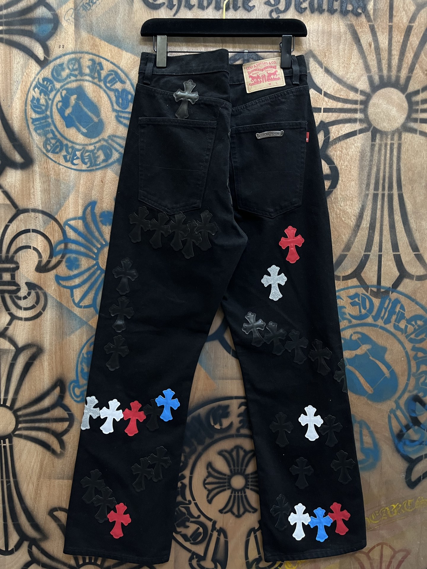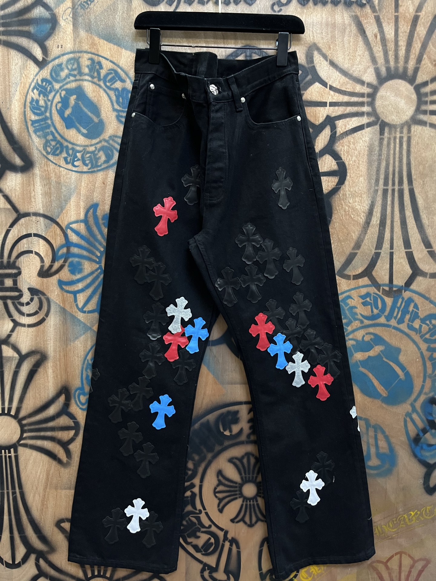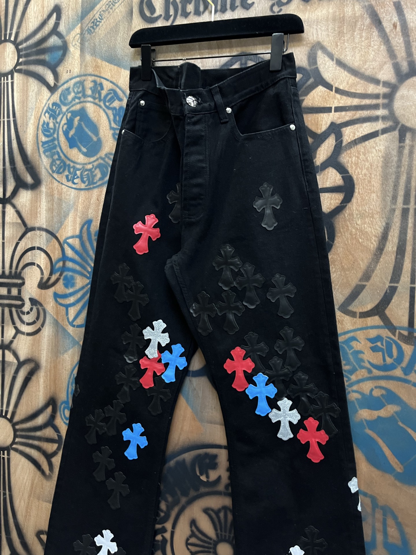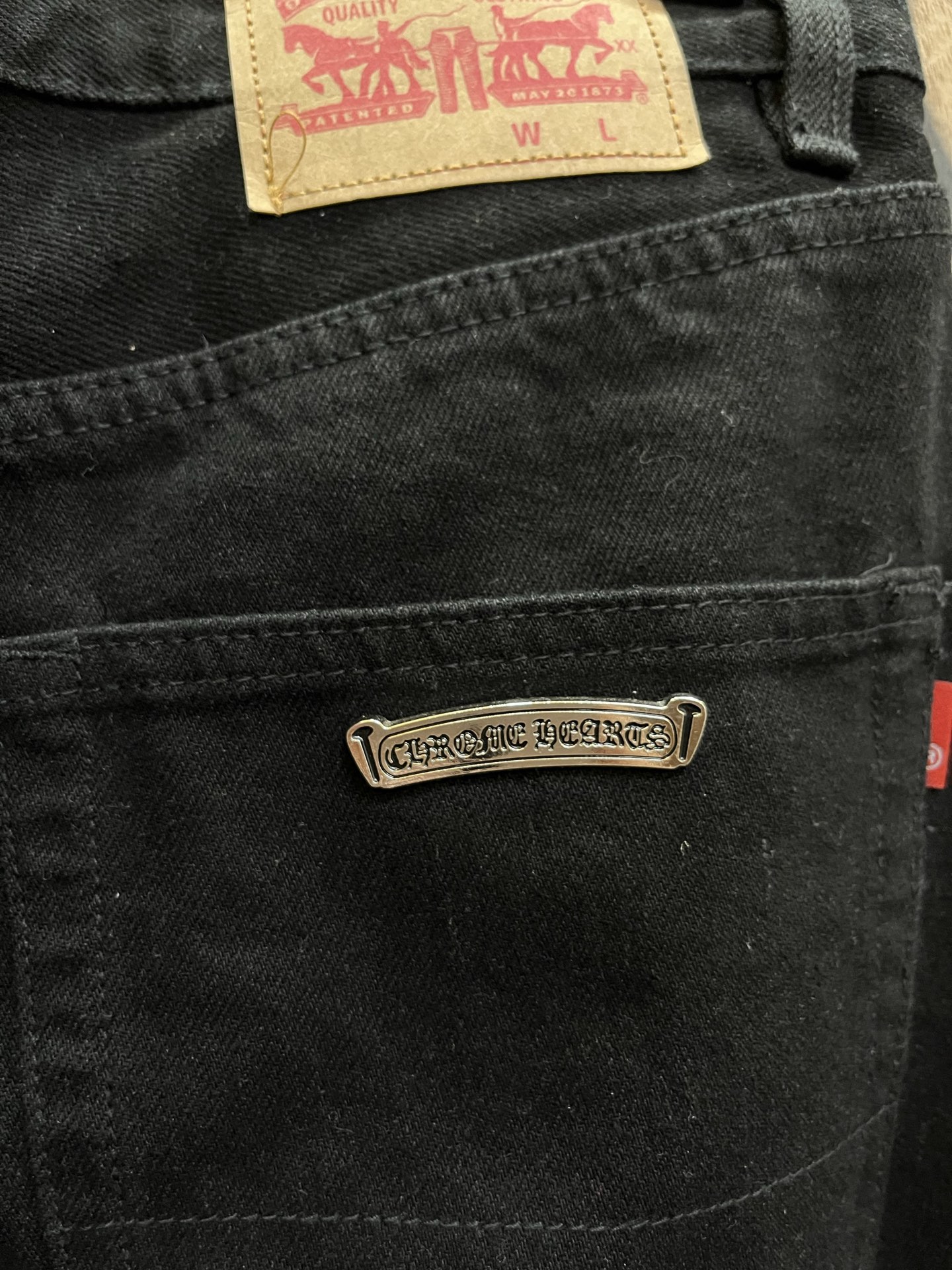 这款衣服是AAAAA 1:1 质量 (非常棒). 使用了和原版一模一样的材料. 商标部分也保持了和克罗心/Chrome Hearts一样. 图片拍摄是实物衣服拍摄, 您所收到的实物保证和我们图片一模一样.