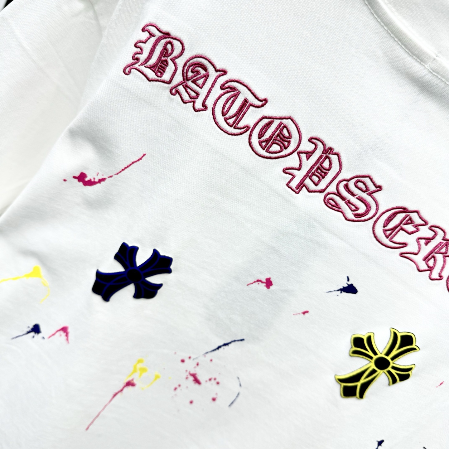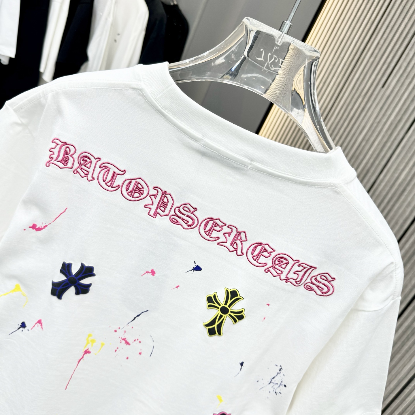 这款衣服是AAAAA 1:1 质量 (非常棒). 使用了和原版一模一样的材料. 商标部分也保持了和克罗心/Chrome Hearts一样. 图片拍摄是实物衣服拍摄, 您所收到的实物保证和我们图片一模一样.