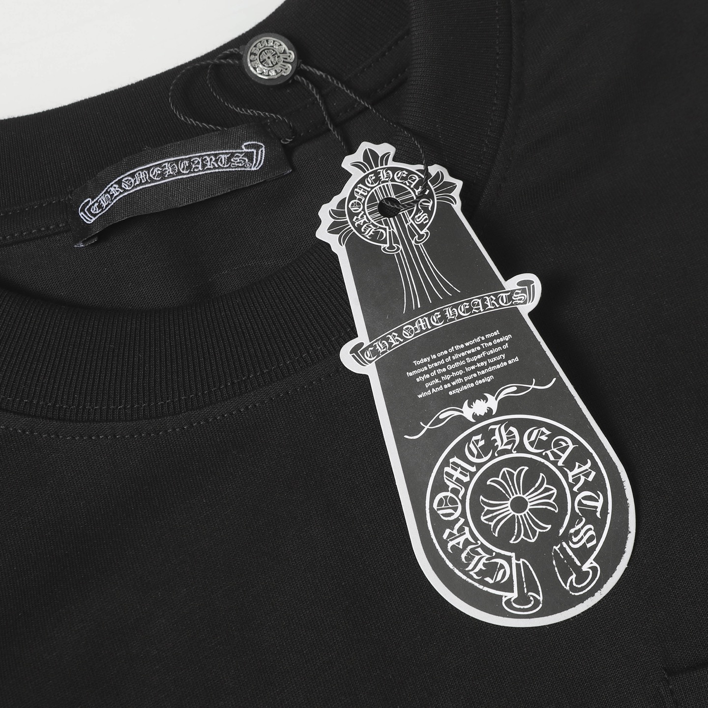 这款衣服是AAAAA 1:1 质量 (非常棒). 使用了和原版一模一样的材料. 商标部分也保持了和克罗心/Chrome Hearts一样. 图片拍摄是实物衣服拍摄, 您所收到的实物保证和我们图片一模一样.