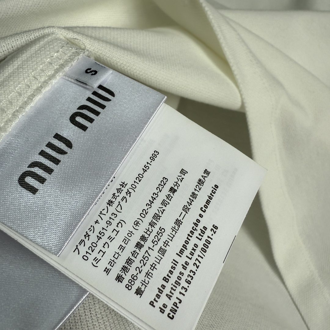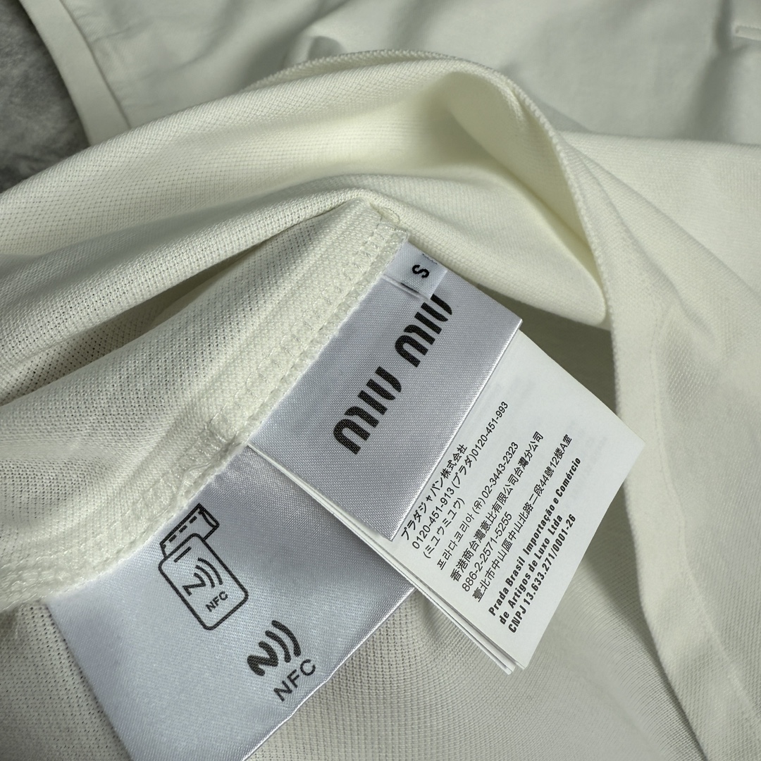 这款衣服是AAAAA 1:1 质量 (非常棒). 使用了和原版一模一样的材料. 商标部分也保持了和缪缪/Miu Miu一样. 图片拍摄是实物衣服拍摄, 您所收到的实物保证和我们图片一模一样.