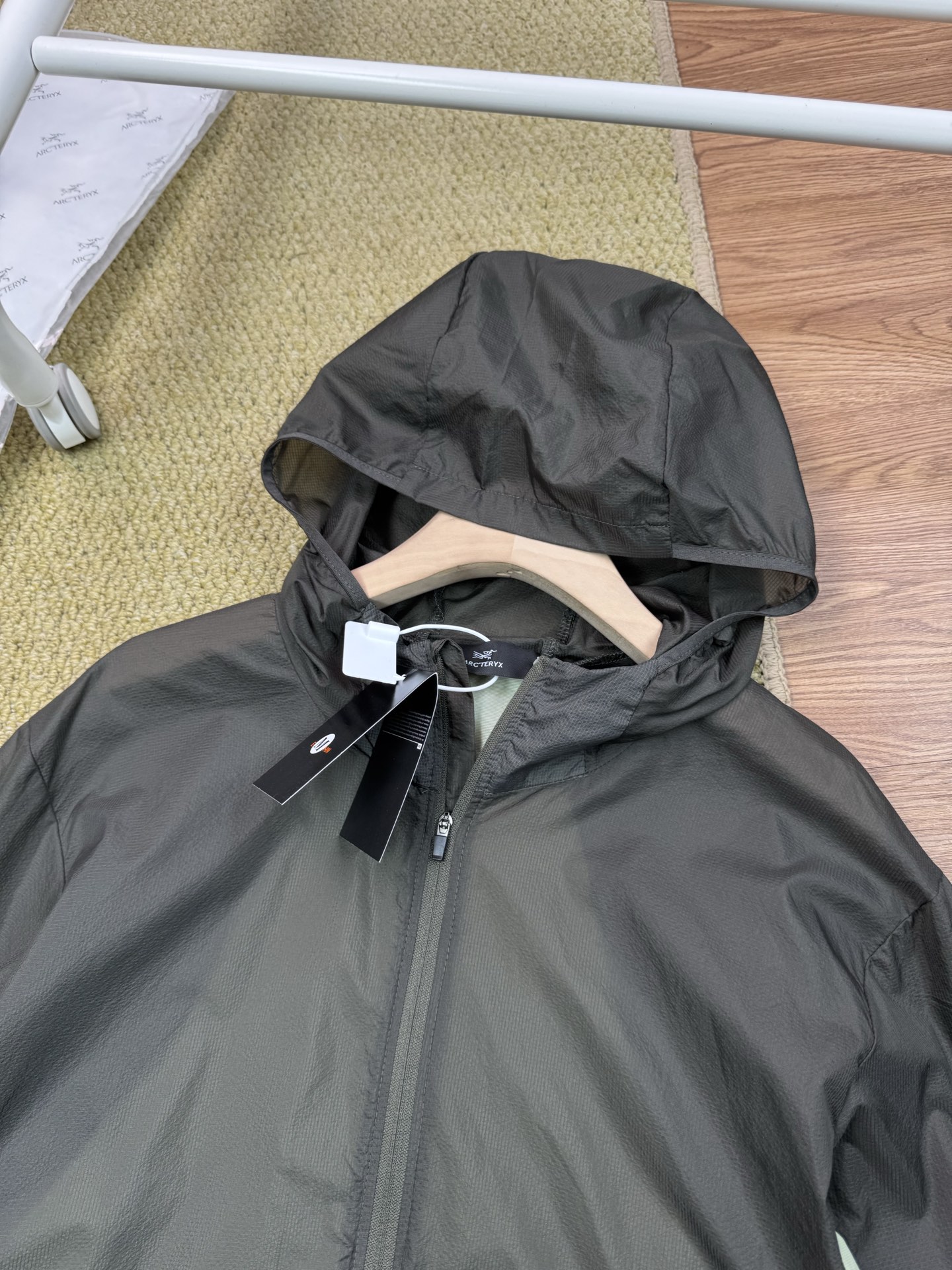 这款衣服是AAAAA 1:1 质量 (非常棒). 使用了和原版一模一样的材料. 商标部分也保持了和ARC'TERYX一样. 图片拍摄是实物衣服拍摄, 您所收到的实物保证和我们图片一模一样.